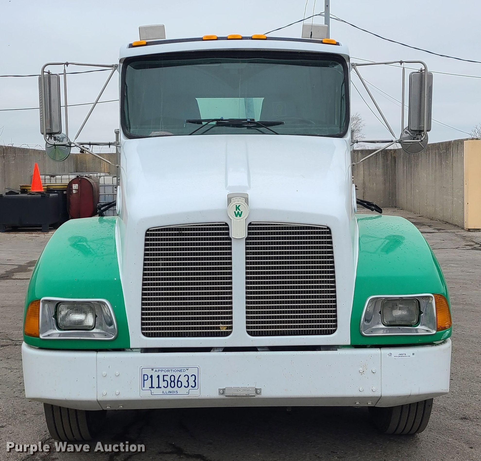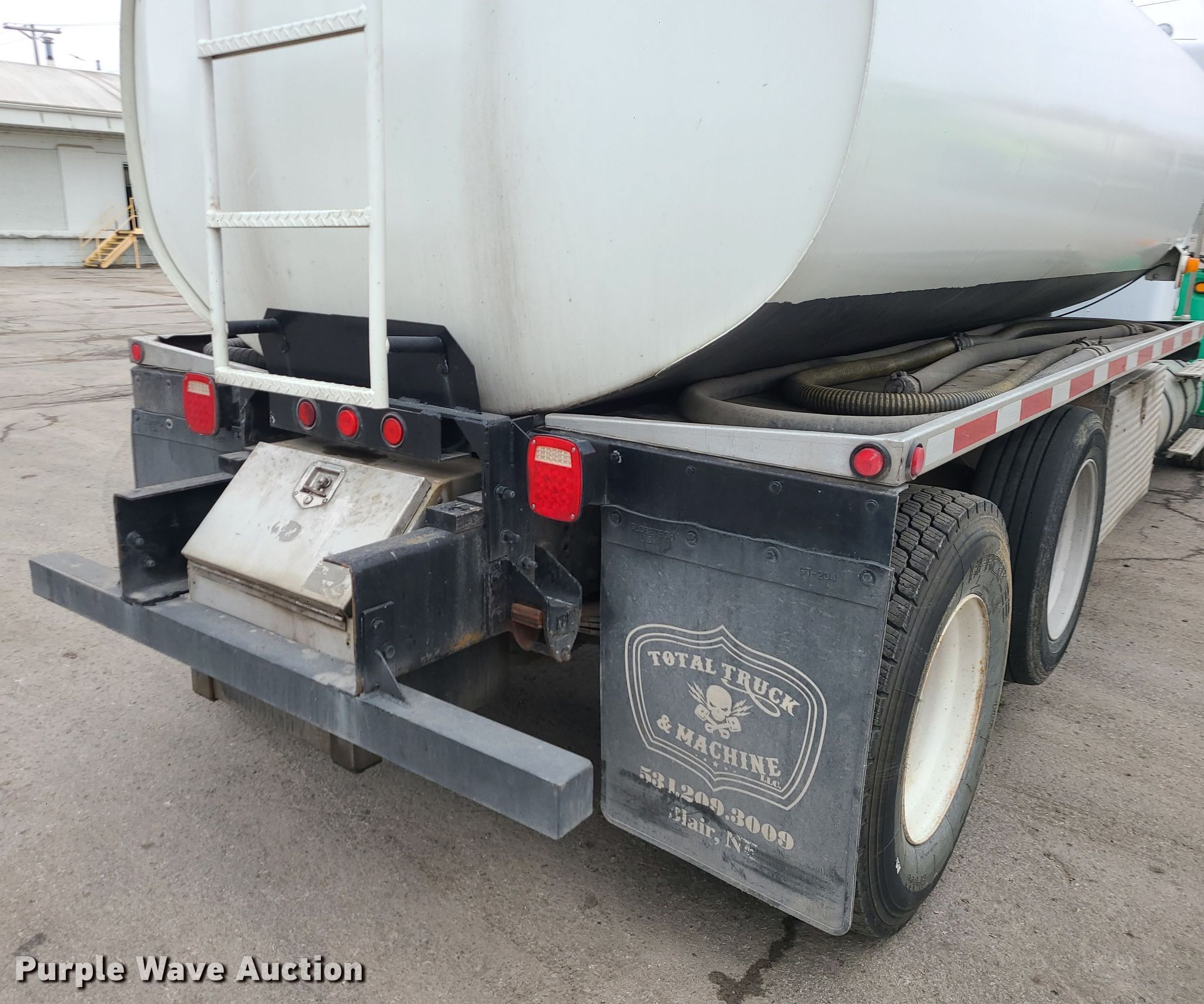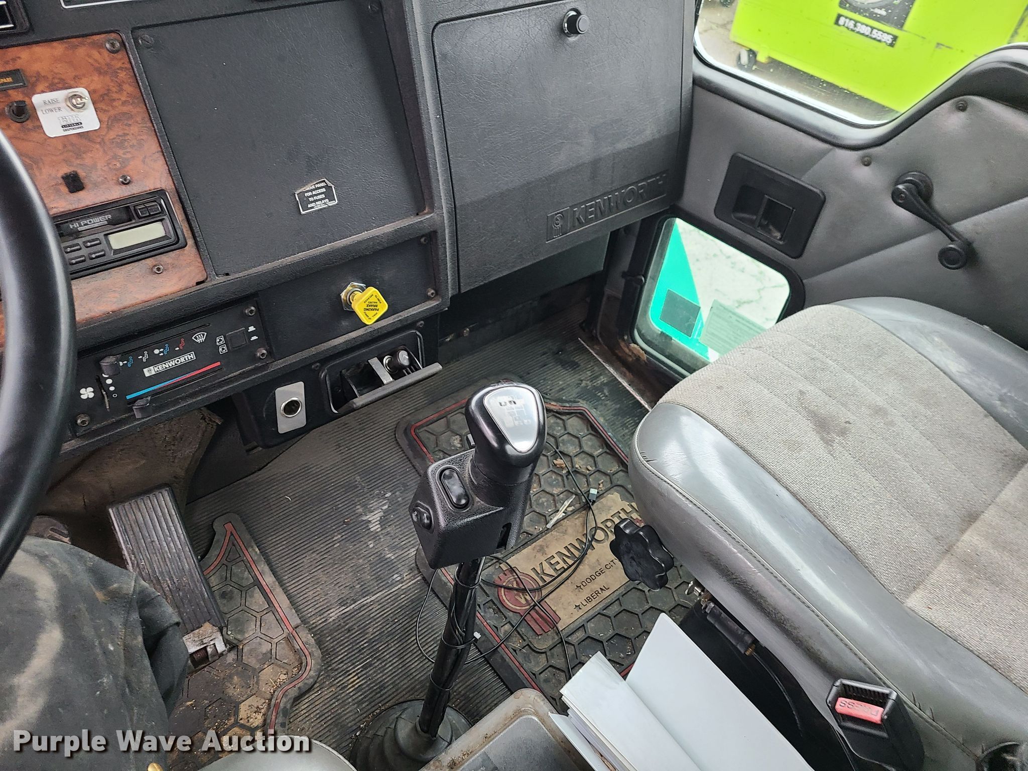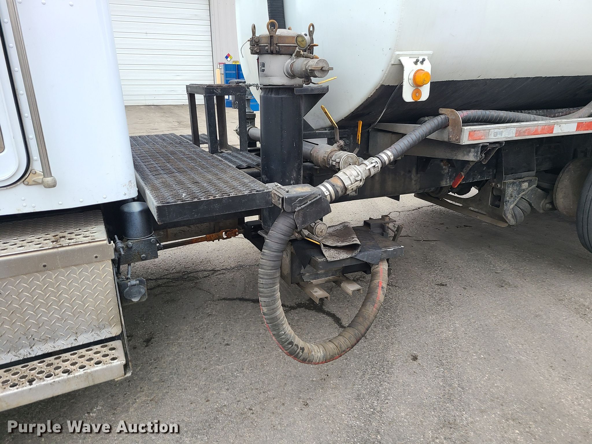 1999 Kenworth T300 tank truck. Miles: 278,261 on odometer, VIN: 1NKMHD6X0XS799734. Engine Caterpillar 3126, Displacement: 7.2L, Cylinders: 6, Fuel type: Diesel. Transmission Manual. Chassis Axles: Tandem, Pusher axle, Suspension: Spring, Brakes: Air, PTO. Interior AC, Heat. Features Bed / tank Capacity: 2,800 gallons, 13' L x 96" W, Top fill. Tires Front: 295/75R22.5, Rear: 11R22.5, Lift axle: 255/70R22.5. Illinois title. GFL Liquid Waste. 1420 Woodswether Road. Kansas City, MO 64105