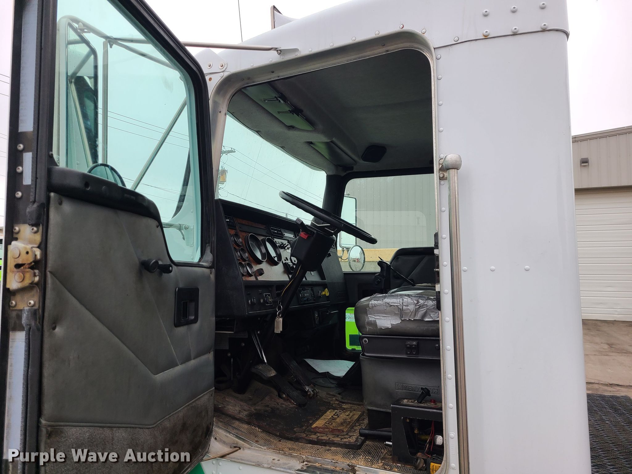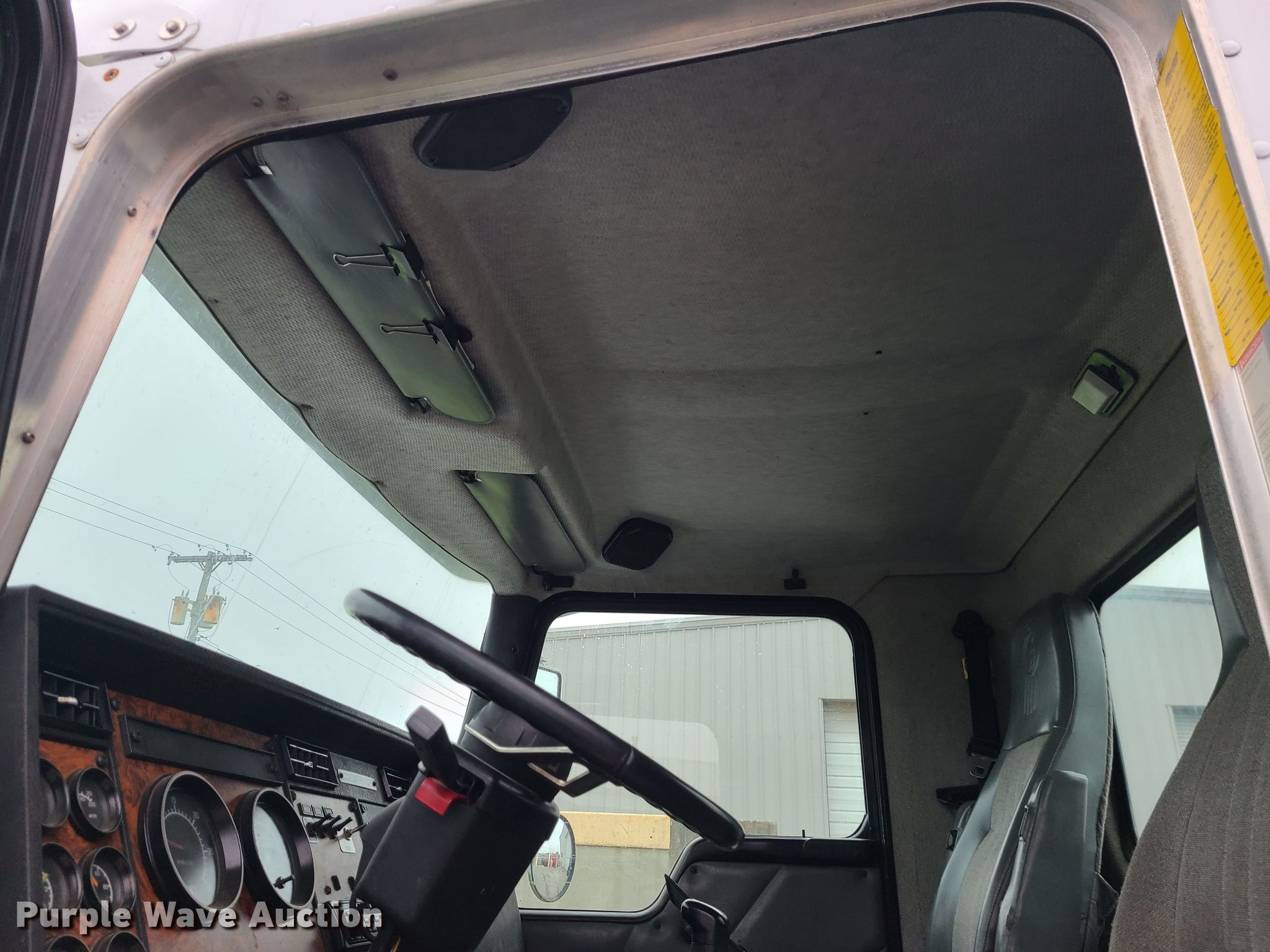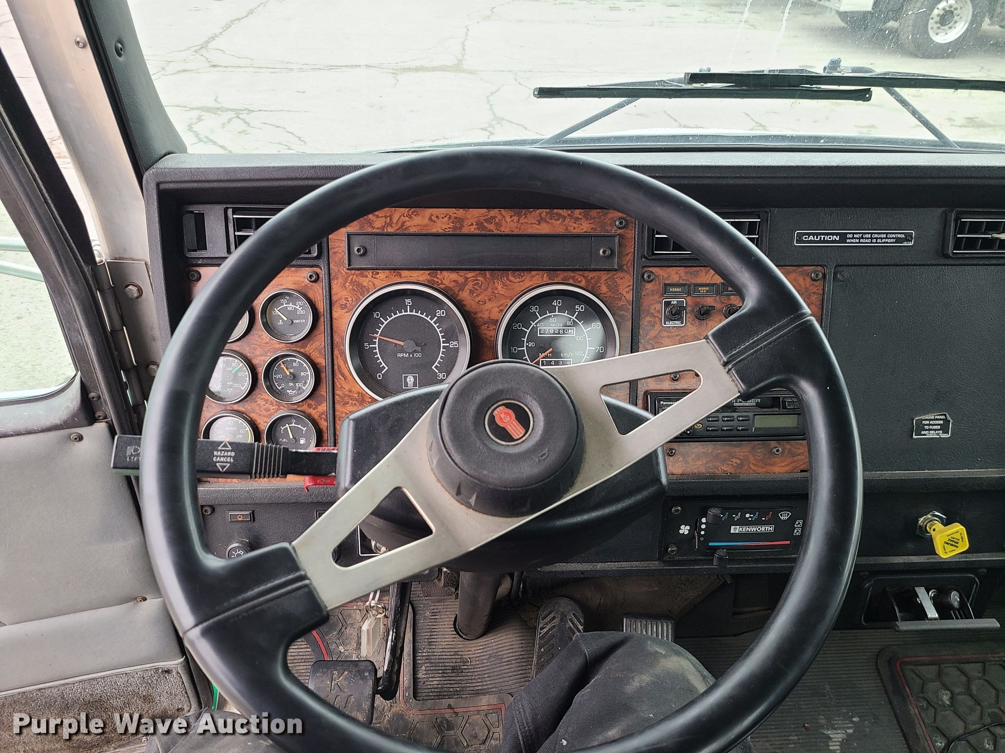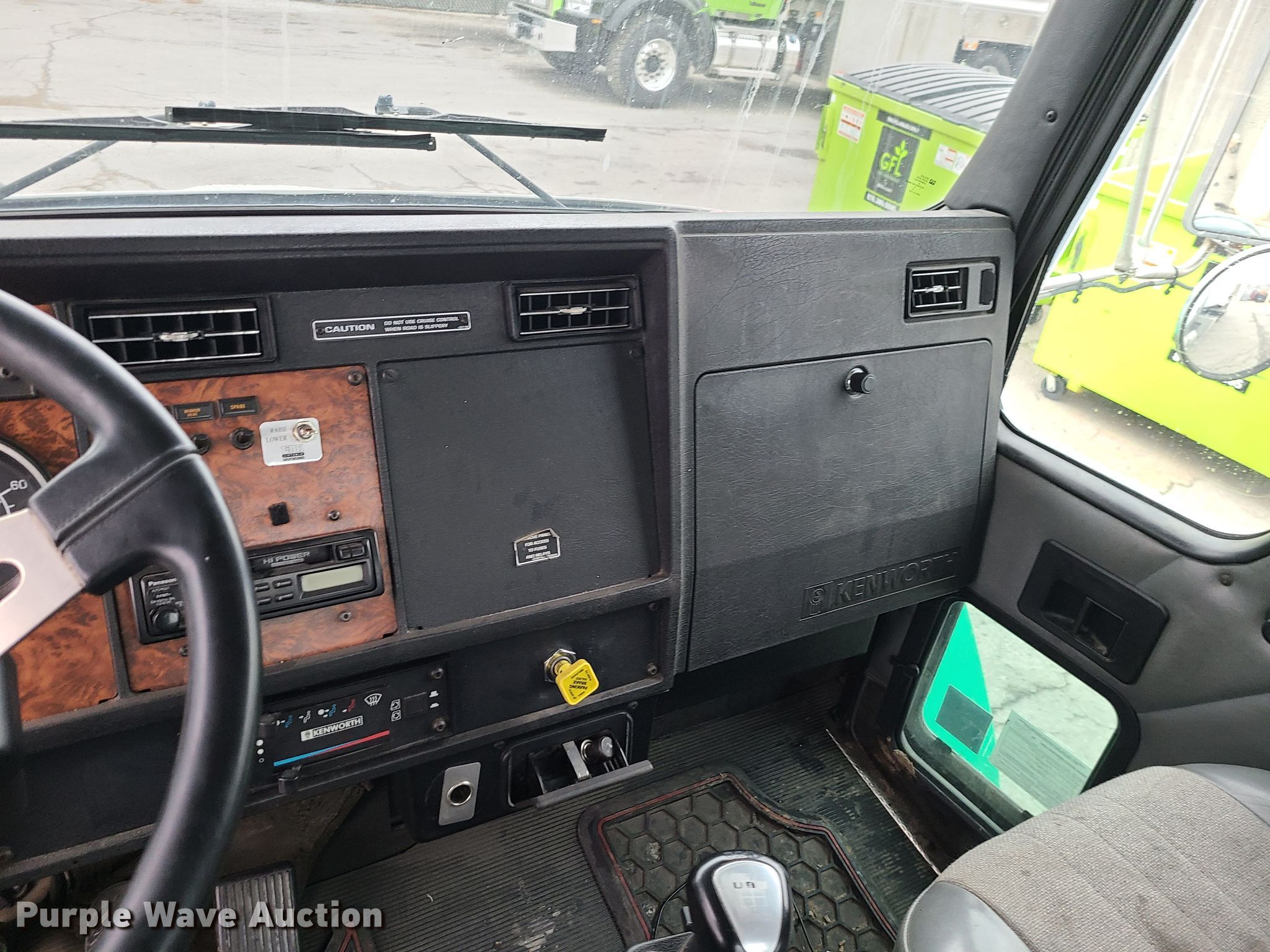 1999 Kenworth T300 tank truck. Miles: 278,261 on odometer, VIN: 1NKMHD6X0XS799734. Engine Caterpillar 3126, Displacement: 7.2L, Cylinders: 6, Fuel type: Diesel. Transmission Manual. Chassis Axles: Tandem, Pusher axle, Suspension: Spring, Brakes: Air, PTO. Interior AC, Heat. Features Bed / tank Capacity: 2,800 gallons, 13' L x 96" W, Top fill. Tires Front: 295/75R22.5, Rear: 11R22.5, Lift axle: 255/70R22.5. Illinois title. GFL Liquid Waste. 1420 Woodswether Road. Kansas City, MO 64105
