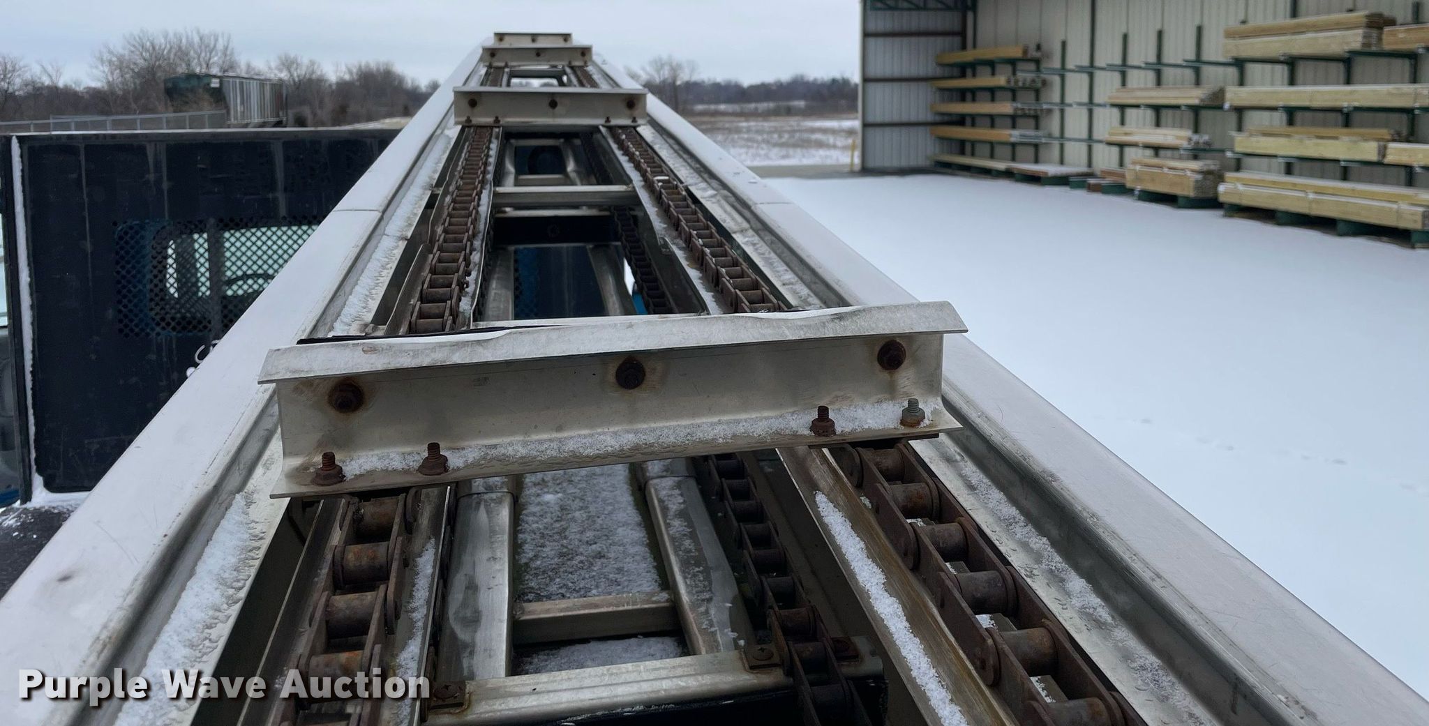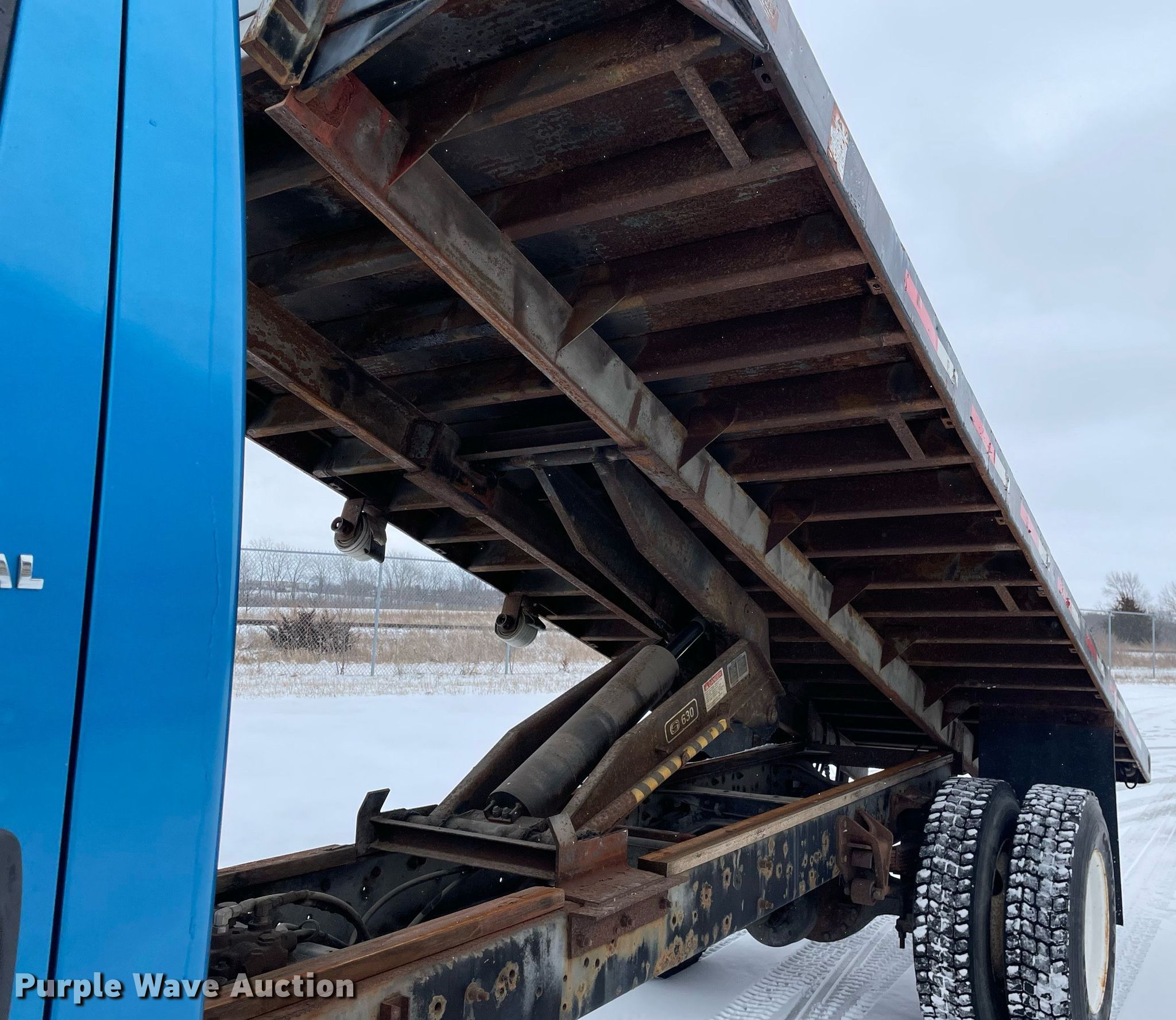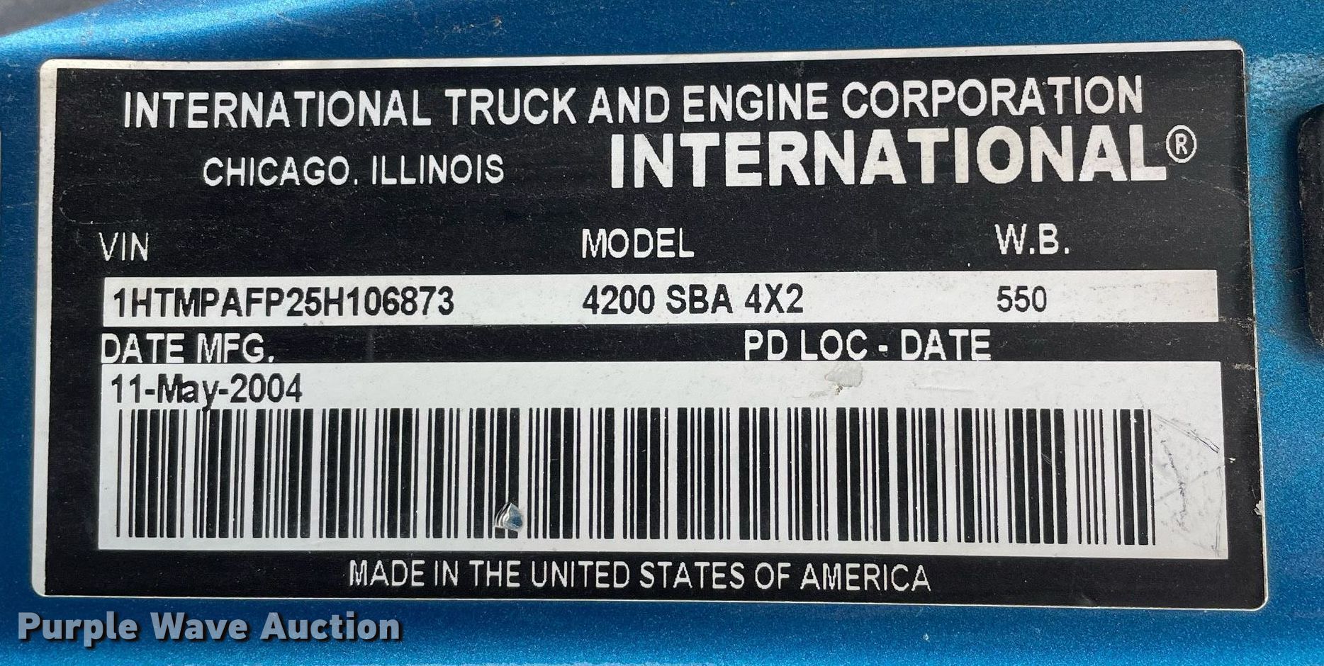 2005 International 4200 flatbed truck. Miles: 60,166 on odometer, Hours: 3,134 on meter, VIN: 1HTMPAFP25H106873, Unit #: 2006. Engine International VT365, Displacement: 6.0L, Cylinders: 8, Fuel type: Diesel. Transmission Eaton Fuller, Manual, Speed: 6. Chassis Axles: Single, Suspension: Spring, Brakes: Hydraulic, PTO, GVWR: 29,000 lbs. Interior Heat, Cruise control. Features Dump flatbed Omaha Standard, Serial: 186993, 18' 3" L x 96" W, Ram: Single, Laddervator Conveyer length: 26'. Tires Size: 11R22.5. Notes Dash warning indicator: ABS. Illinois title. Title distribution may be delayed up to 14 days from verification of funds. R.P. Lumber Co., Inc.. Beecher, IL 60401
