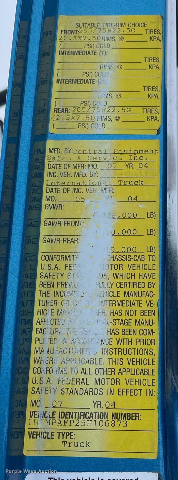 Purple Wave is selling a used Flat Bed Truck in Illinois. This item is a 2005 International 4200 flatbed truck with the following: Miles: 60,166 on odometer, Hours: 3,134 on meter, VIN: 1HTMPAFP25H106873, Unit #: 2006