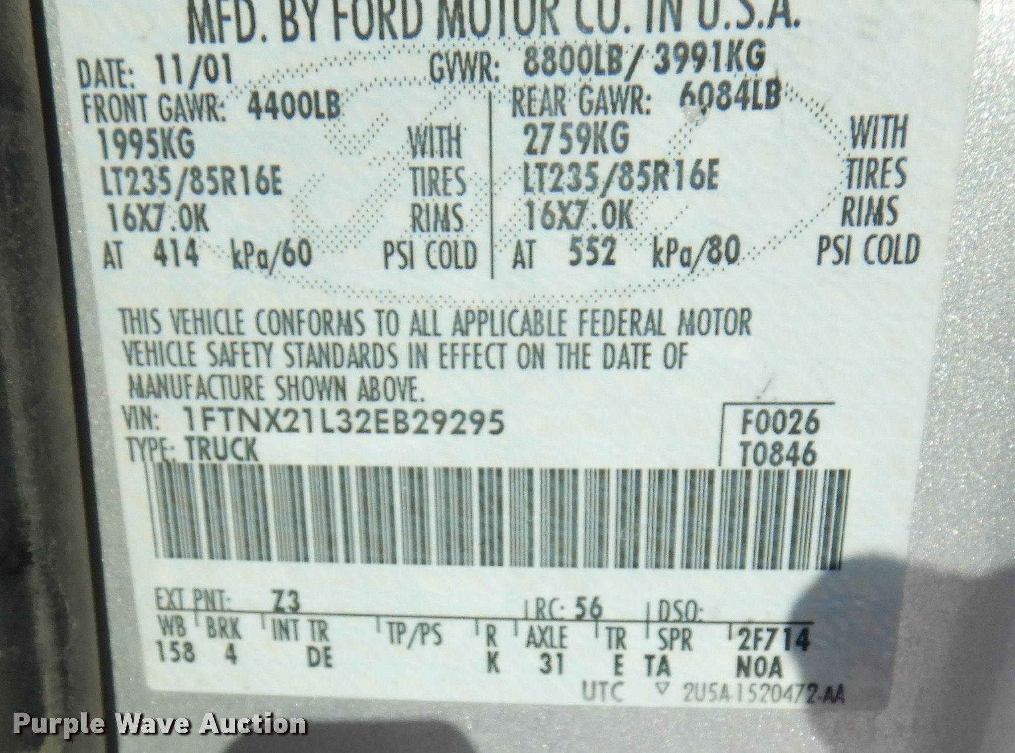 Purple Wave is selling a used 3/4 or 1 Ton Pickup or Van in Nebraska. This item is a 2002 Ford F250 Super Duty XLT SuperCab pickup truck with the following: Miles: 99,206 on odometer, VIN: 1FTNX21L32EB29295