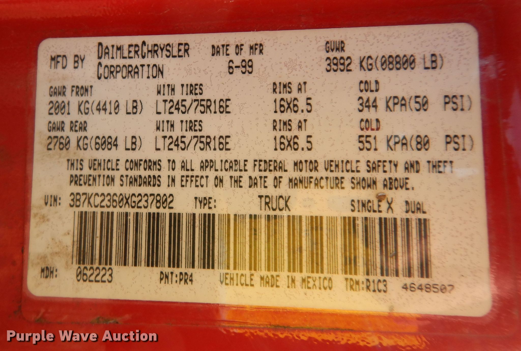 - VIN: 3B7KC2360XG237802