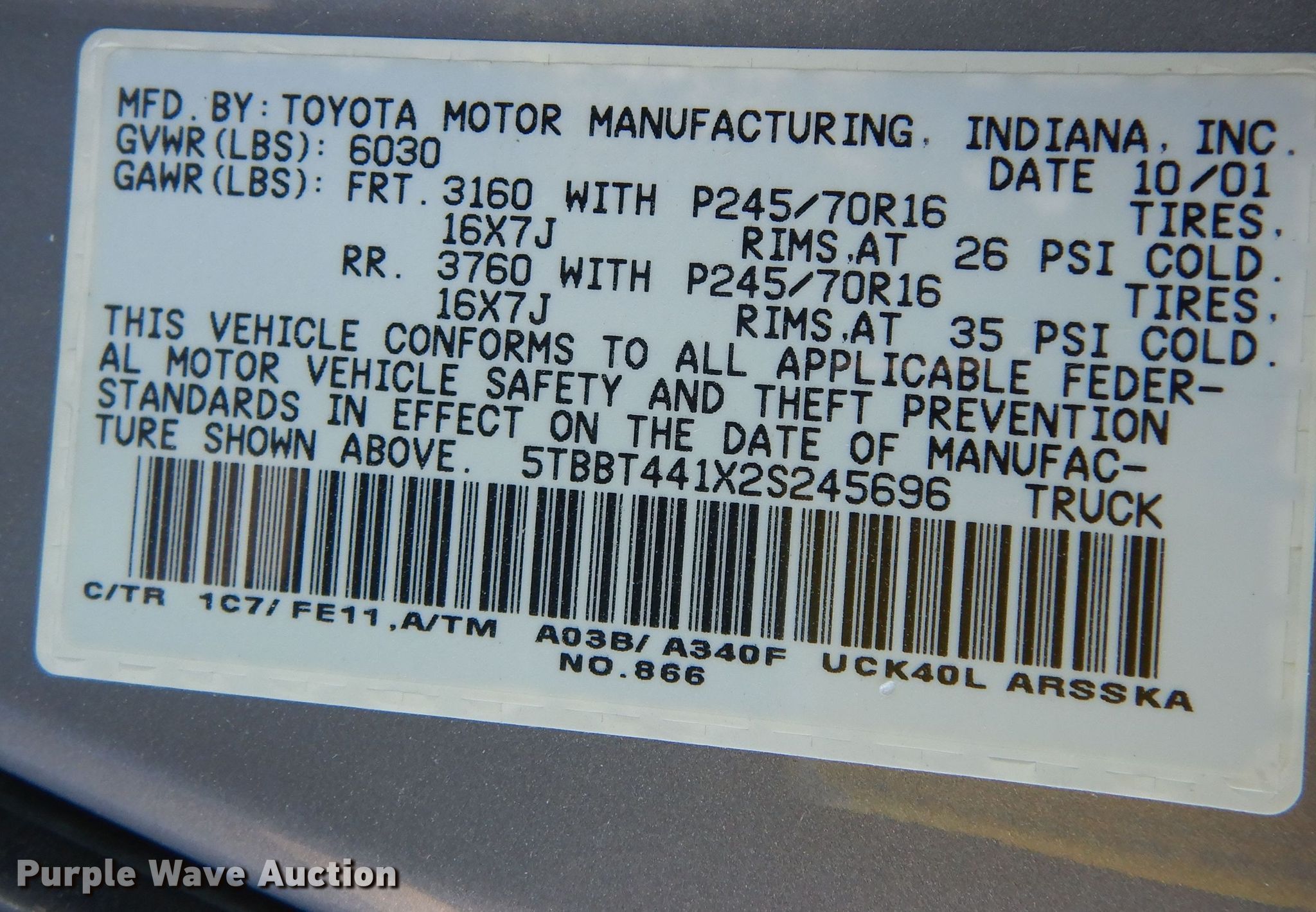 Take a look at this used 2002 Toyota Tundra SR5 Access Cab pickup truck being sold on March 1st, 2023 in the SOLD! March 01 Vehicles and Equipment Auction made by Toyota. Take a look at all of the item information below or take a look at similar auctions for Pickups and Vans.