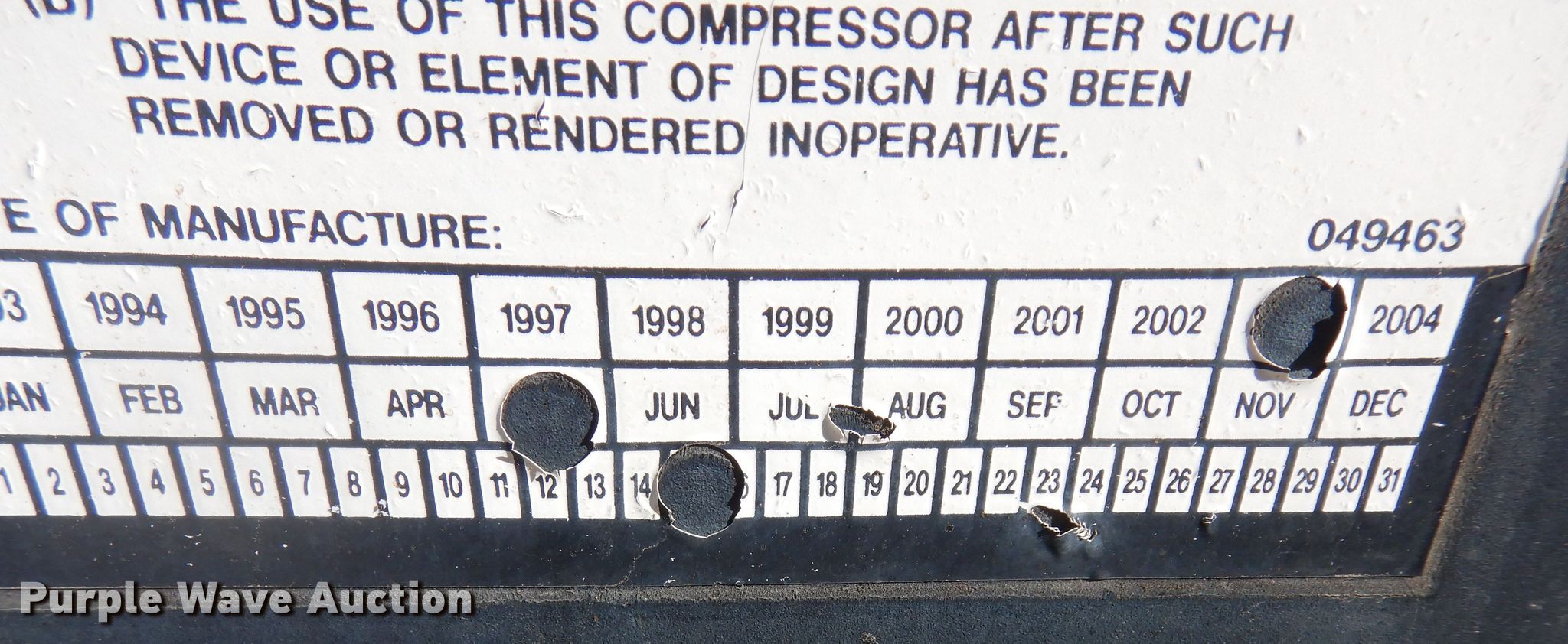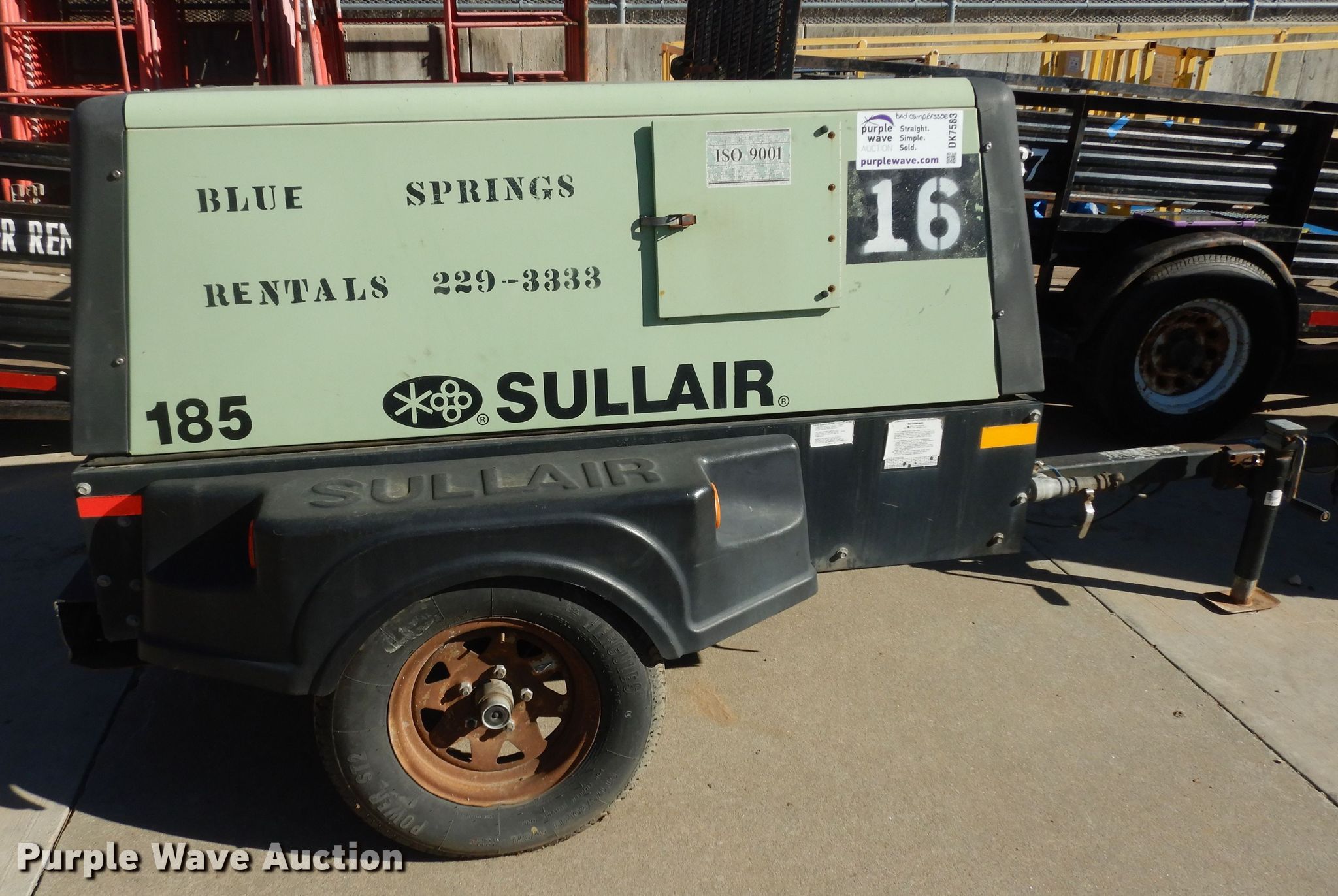 Purple Wave is selling a used Air Compressor in Kansas. This item is a 2003 Sullair 185 air compressor with the following: Hours: 2,799 on meter, Serial: 004140905, Unit #: 16