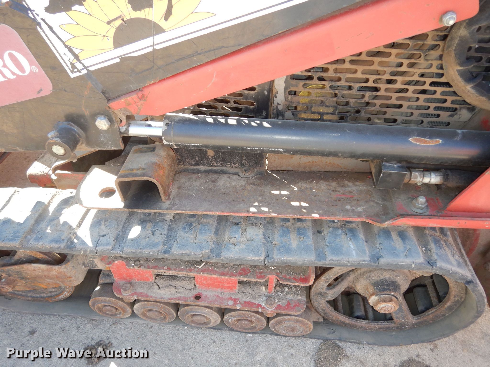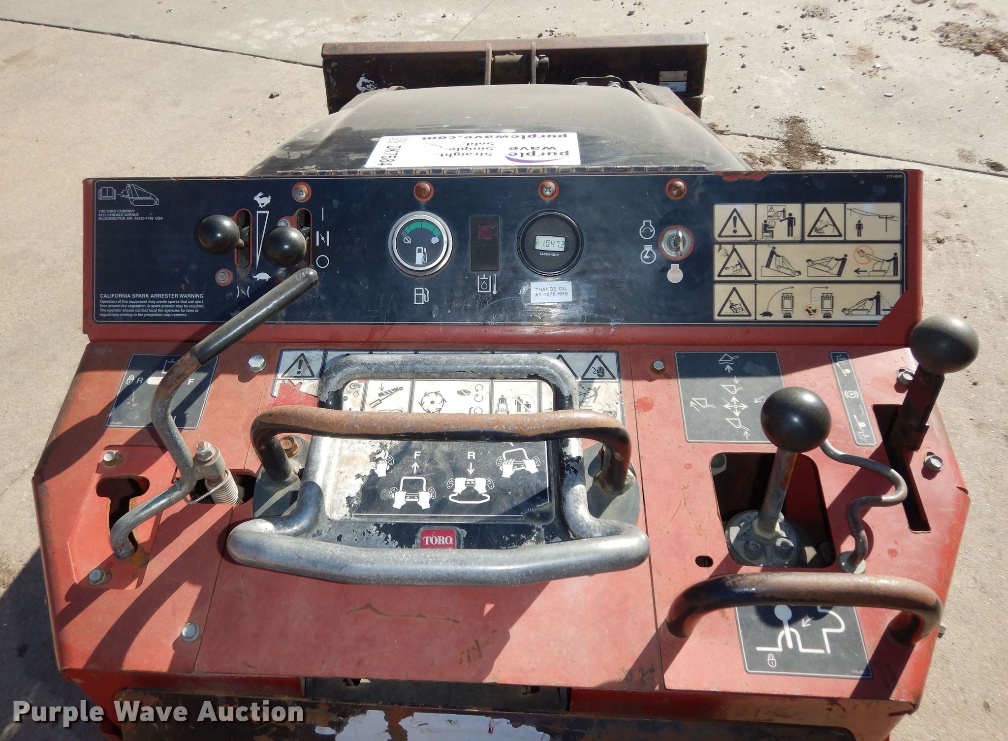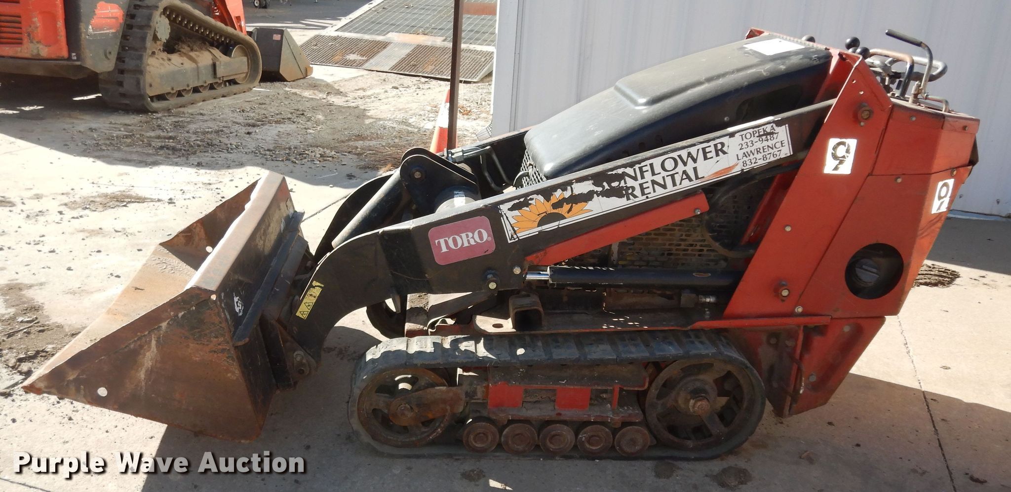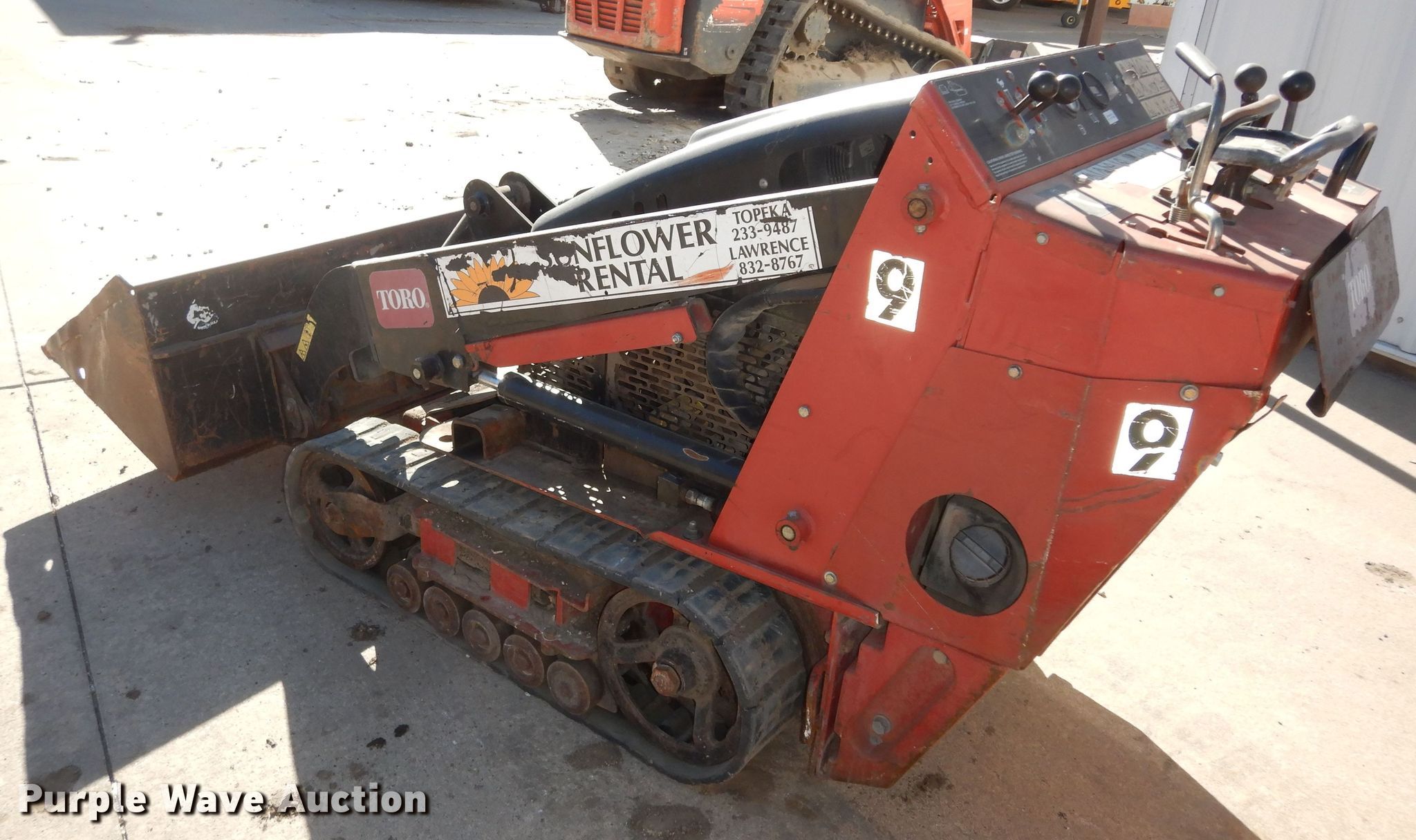 2011 Toro TX427 compact utility loader. Hours: 1,047 on meter, Serial: 311000123, Unit #: 9. Engine Kohler, Fuel type: Gas. Operators station Bucket control: Hand. Features Auxiliary hydraulics, Bucket Toro 22409, Width: 41", Cutting edge: Weld-on. Tracks Width: 6". Sunflower Rental. 2010 SW Topeka Blvd. Topeka, KS 66612