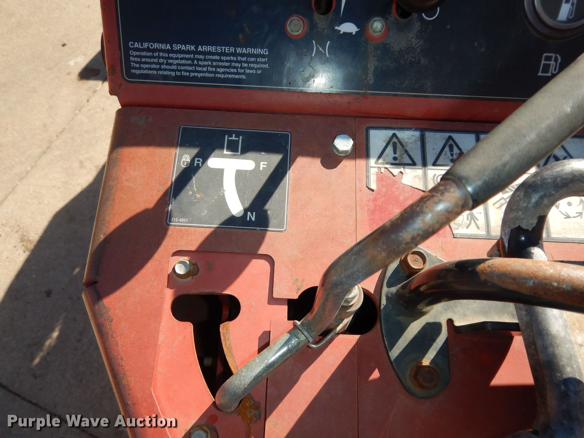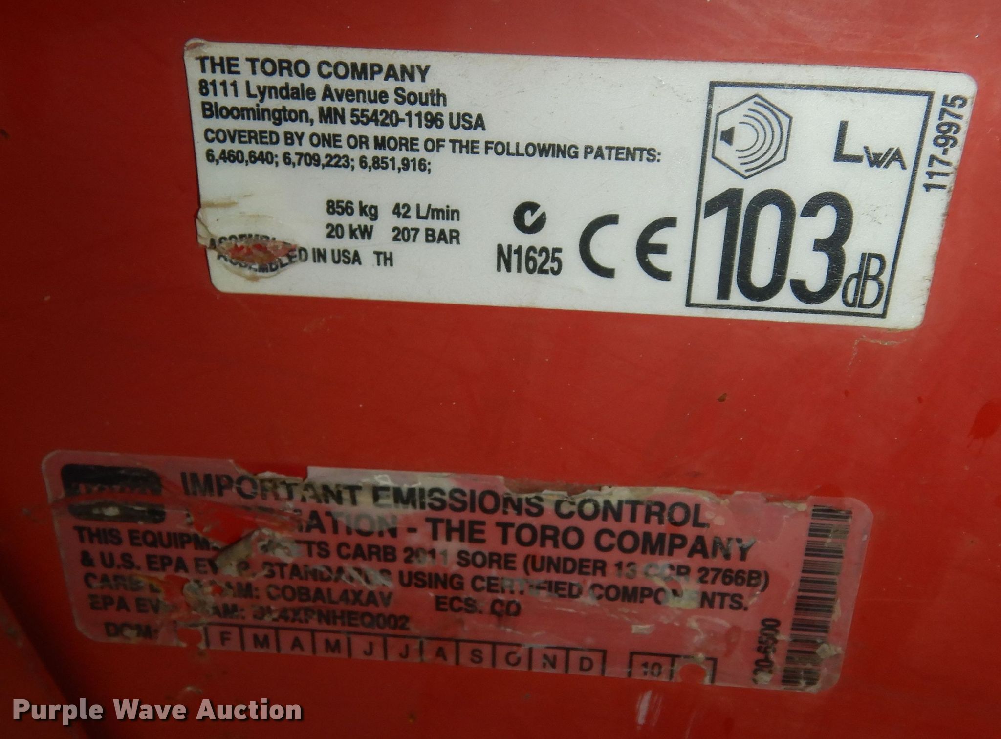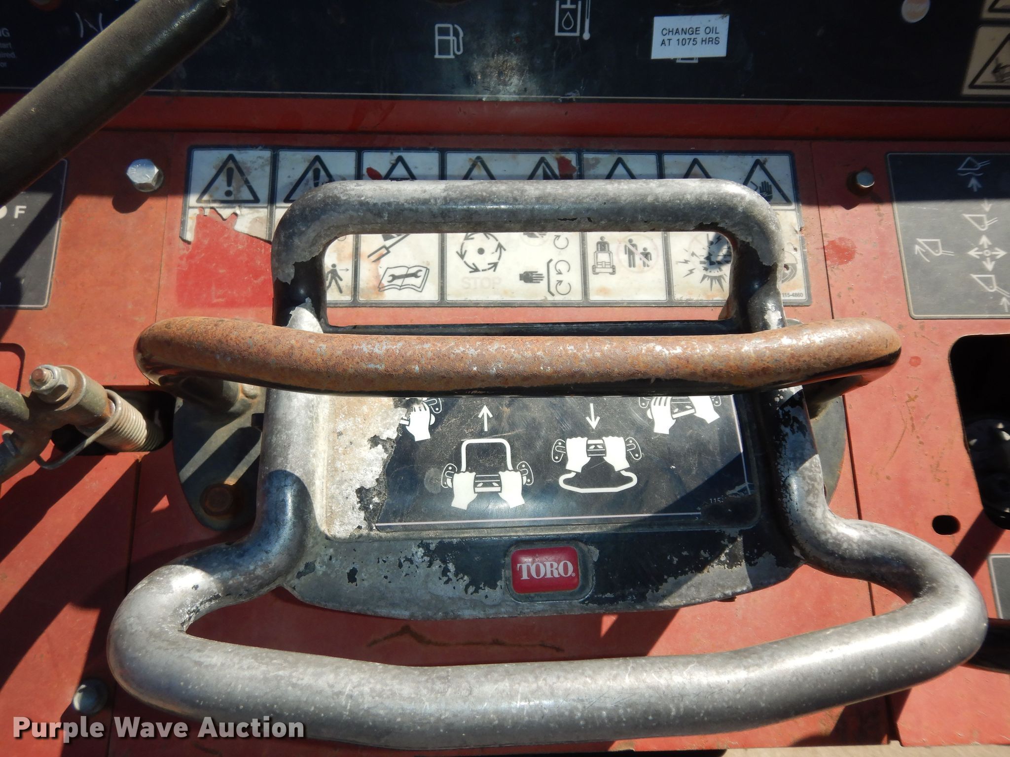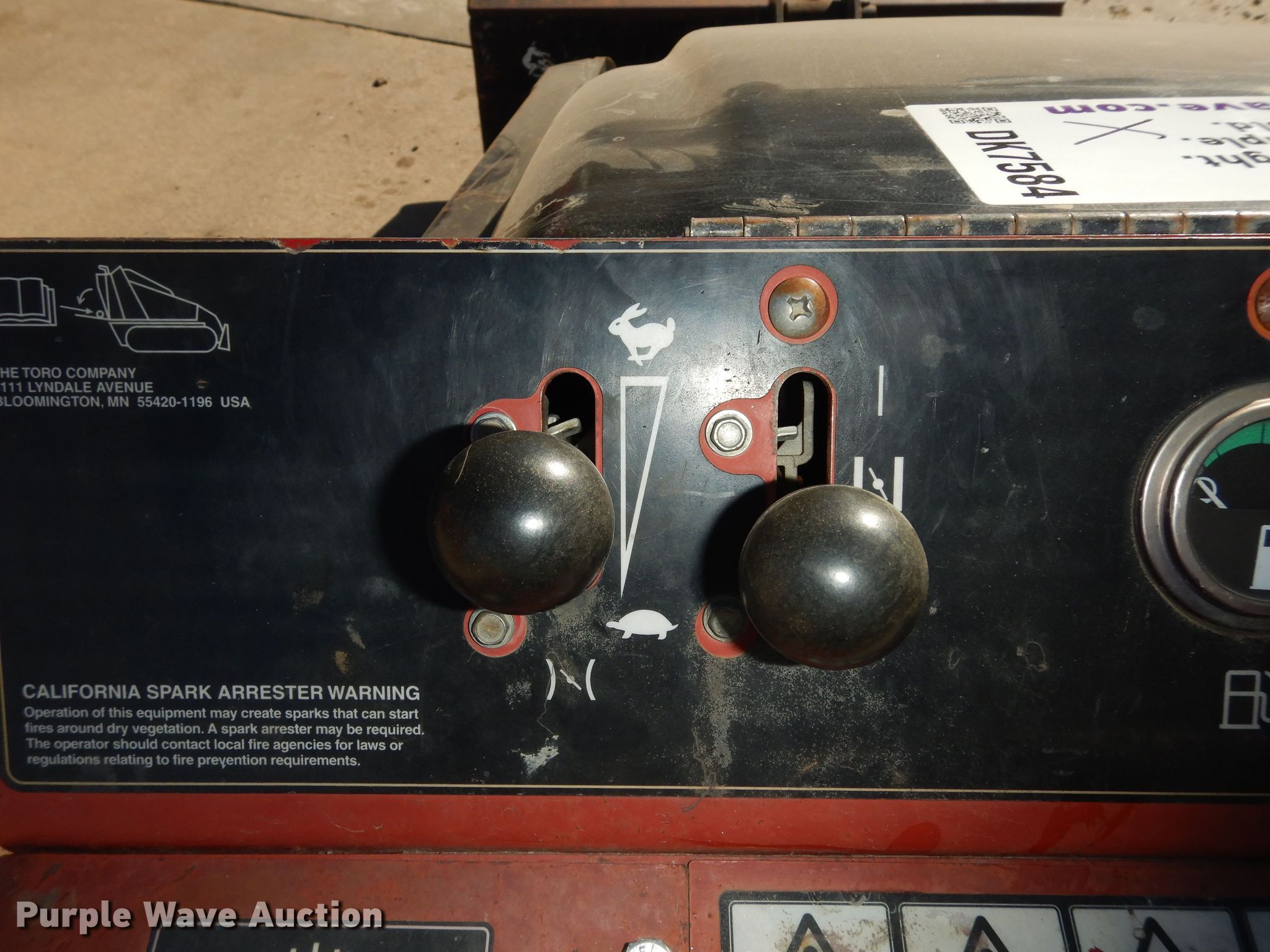 2011 Toro TX427 compact utility loader. Hours: 1,047 on meter, Serial: 311000123, Unit #: 9. Engine Kohler, Fuel type: Gas. Operators station Bucket control: Hand. Features Auxiliary hydraulics, Bucket Toro 22409, Width: 41", Cutting edge: Weld-on. Tracks Width: 6". Sunflower Rental. 2010 SW Topeka Blvd. Topeka, KS 66612