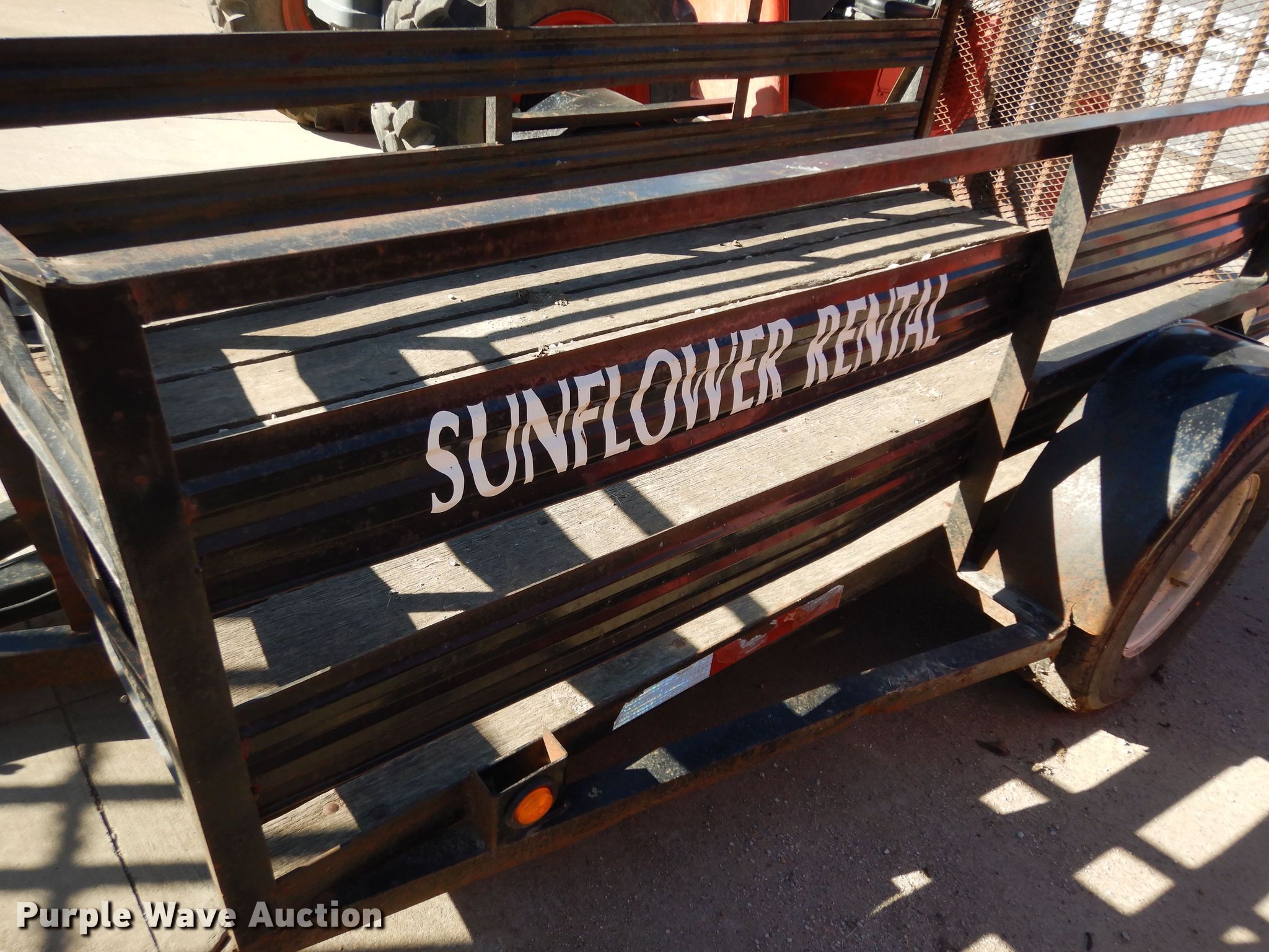 2011 Shop built utility trailer. VIN: KS131032, Unit #: 11. Dimensions Overall: 13' 10" L x 6' 8" W, Deck: 10' 6" L x 5' 4" W, Side height: 28", Ramps: Manual Length: 51". Features Deck type: Wood. Chassis Ball hitch: 2", Suspension: Spring. Tires Steel wheels, Size: 225/75R15. Kansas title. Title distribution may be delayed up to 14 days from verification of funds. Sunflower Rental. 2010 SW Topeka Blvd. Topeka, KS 66612