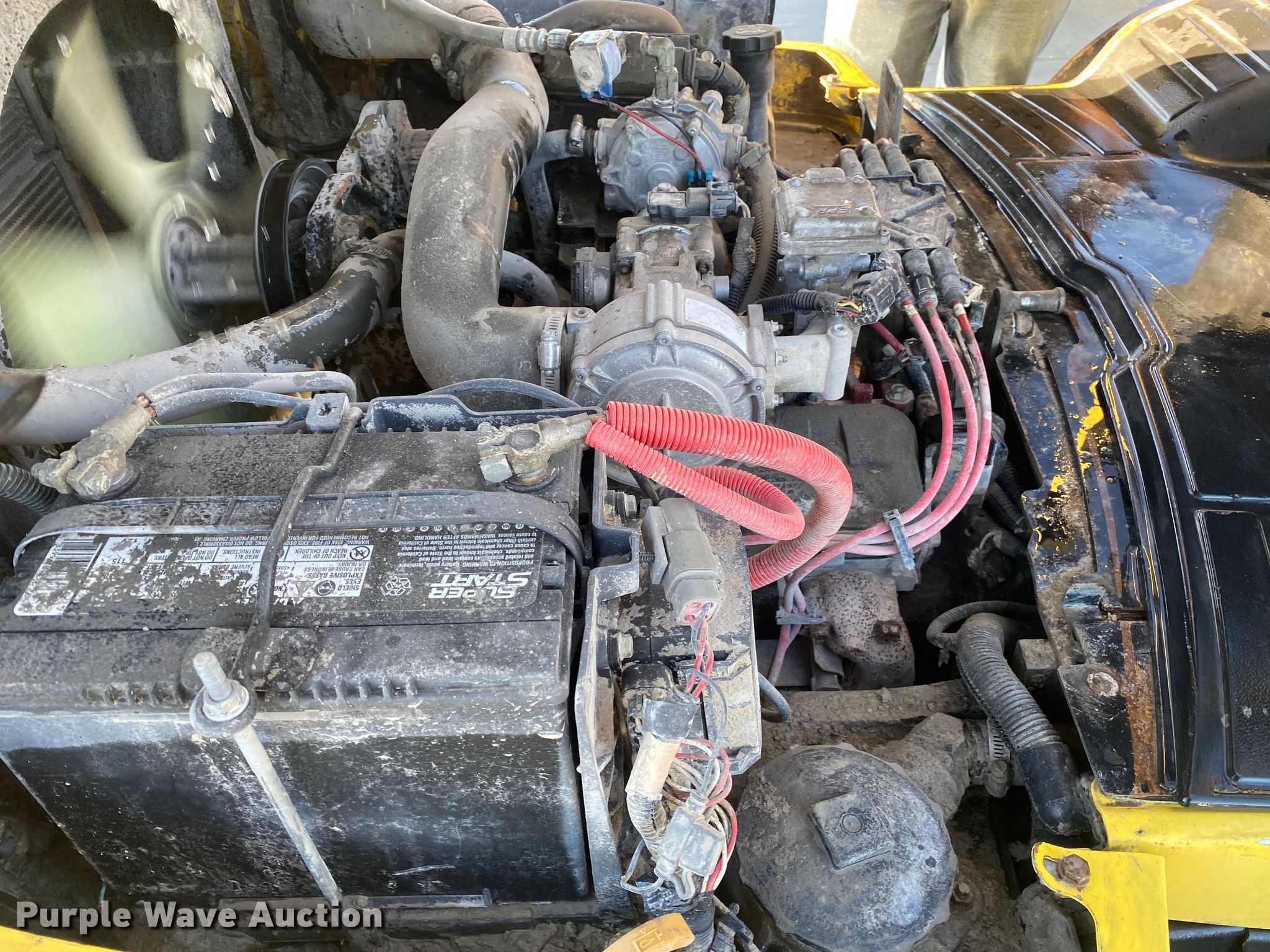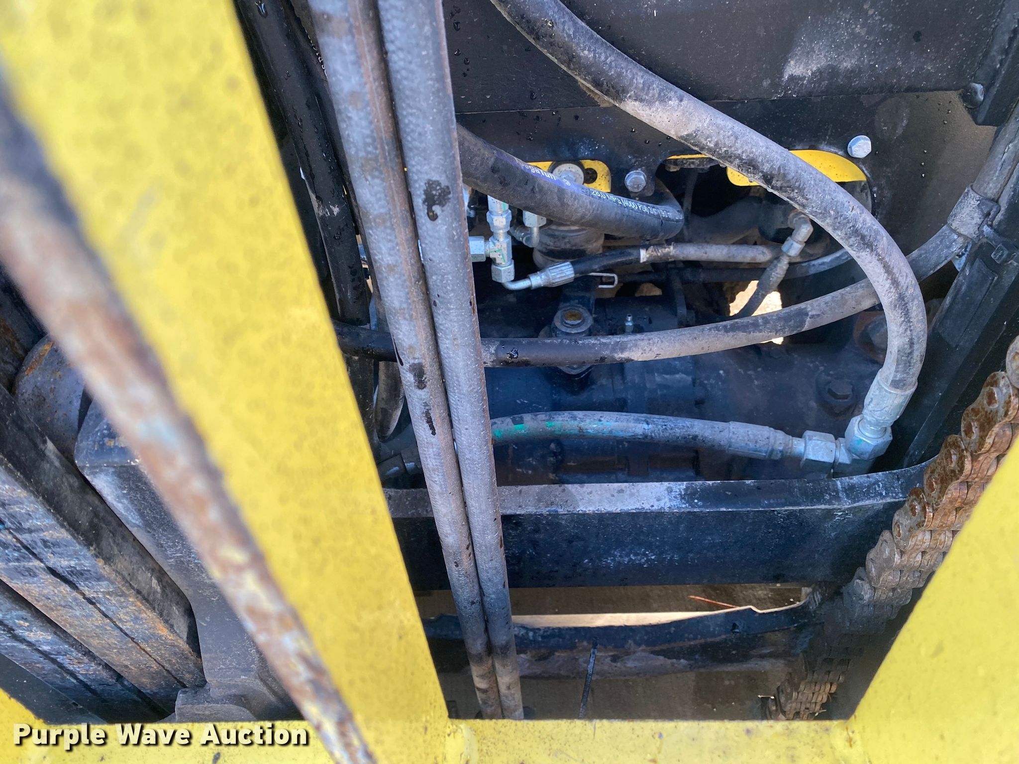 1995 Hyster forklift. Hours: Unknown, Serial: S005V4908N. Engine Cylinders: 6, Fuel type: LPG LP bottle: Not included. Transmission Powershift. Operators station Canopy. Features Maximum lift capacity: 8,000 lbs, Maximum lift height: 167.3", Mast stages: 2, Side shift, Mast tilt, Fork length: 48". Tires Front: 7.00-15, Rear: 7.00-12, Solid. Mill Creek Lumber & Supply. 6201 South 129th East Avenue. Broken Arrow, OK 74012