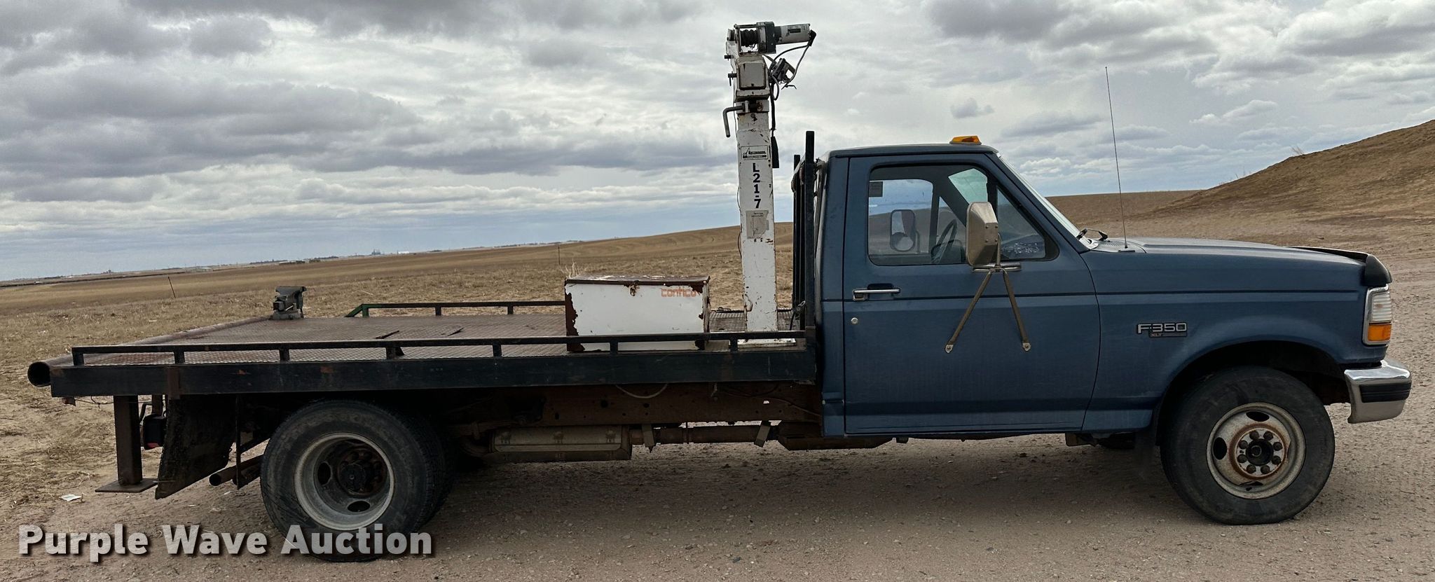 This 1995 Ford F350 flatbed truck will sell to the highest bidder regardless of price.