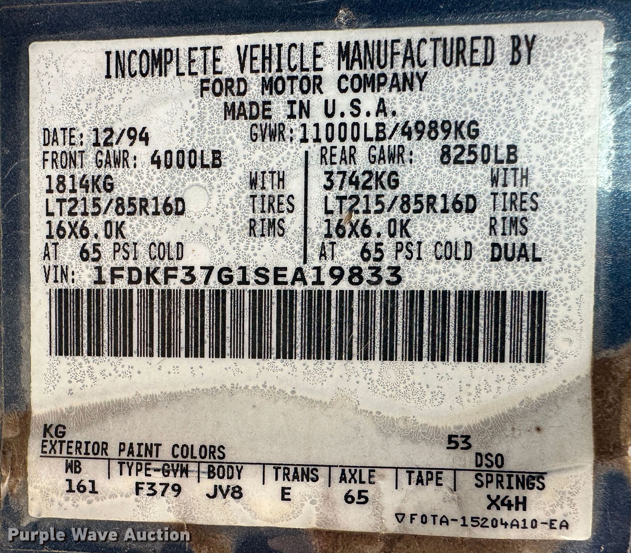 - VIN: 1FDKF37G1SEA19833