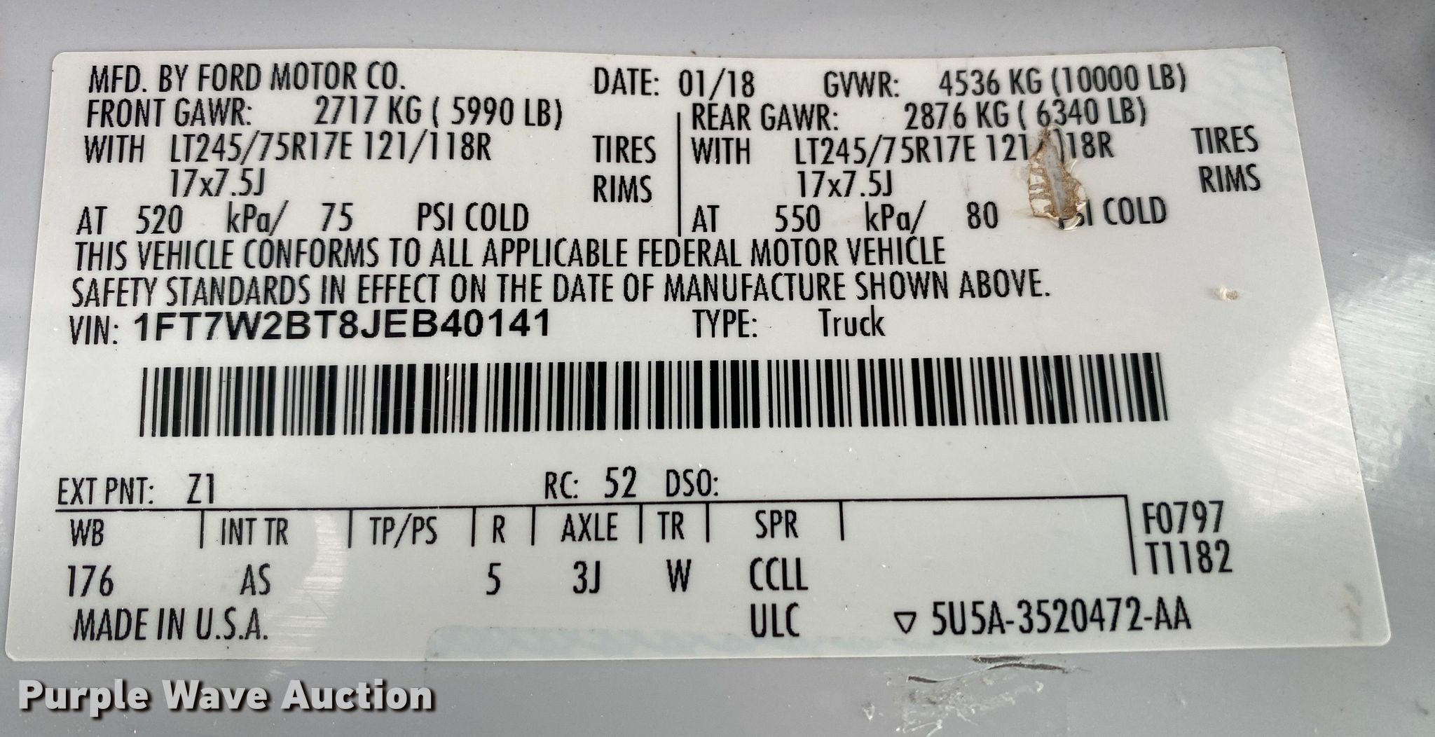 Purple Wave is selling a used 3/4 or 1 Ton Pickup or Van in Oklahoma. This item is a 2018 Ford F250 Super Duty Crew Cab flatbed pickup truck with the following: Miles: 145,449 on odometer, VIN: 1FT7W2BT8JEB40141