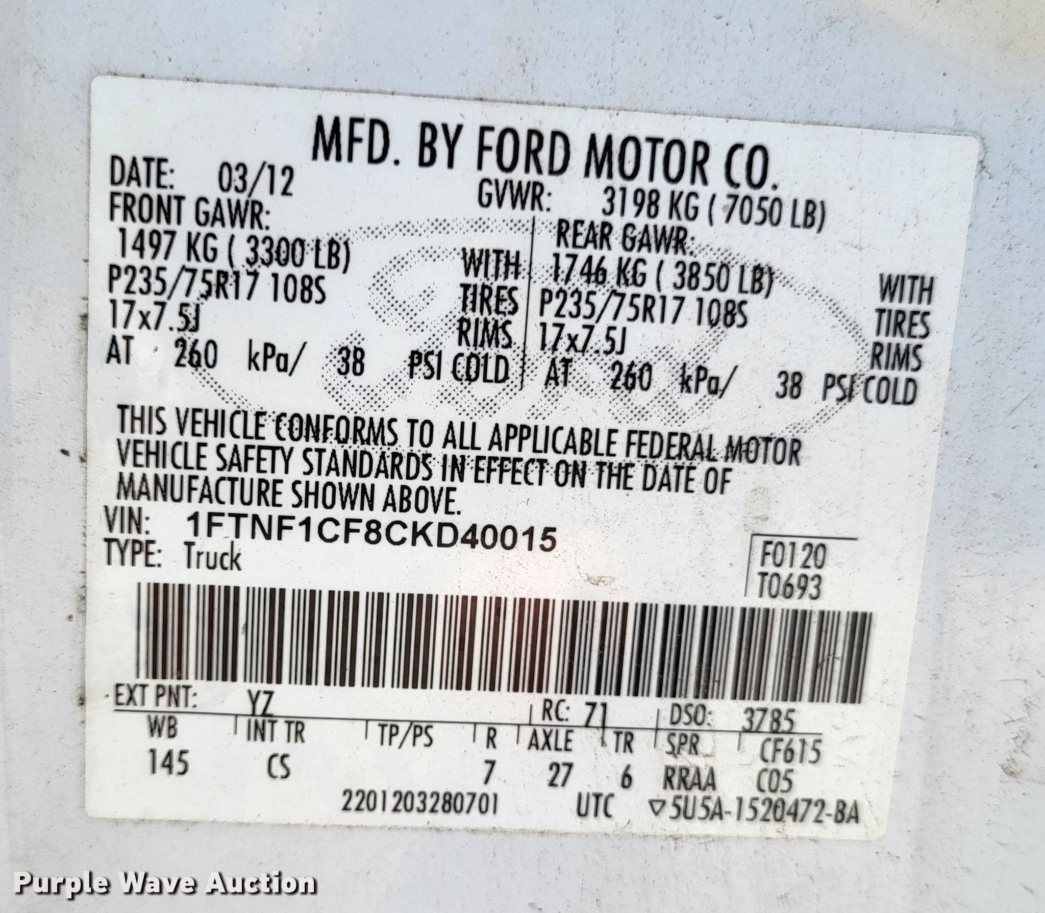 Purple Wave is selling a used 1/2 Ton Pickup or Van in Arkansas. This item is a 2012 Ford F150 XL pickup truck with the following: Miles: 156,052 on odometer, VIN: 1FTNF1CF8CKD40015