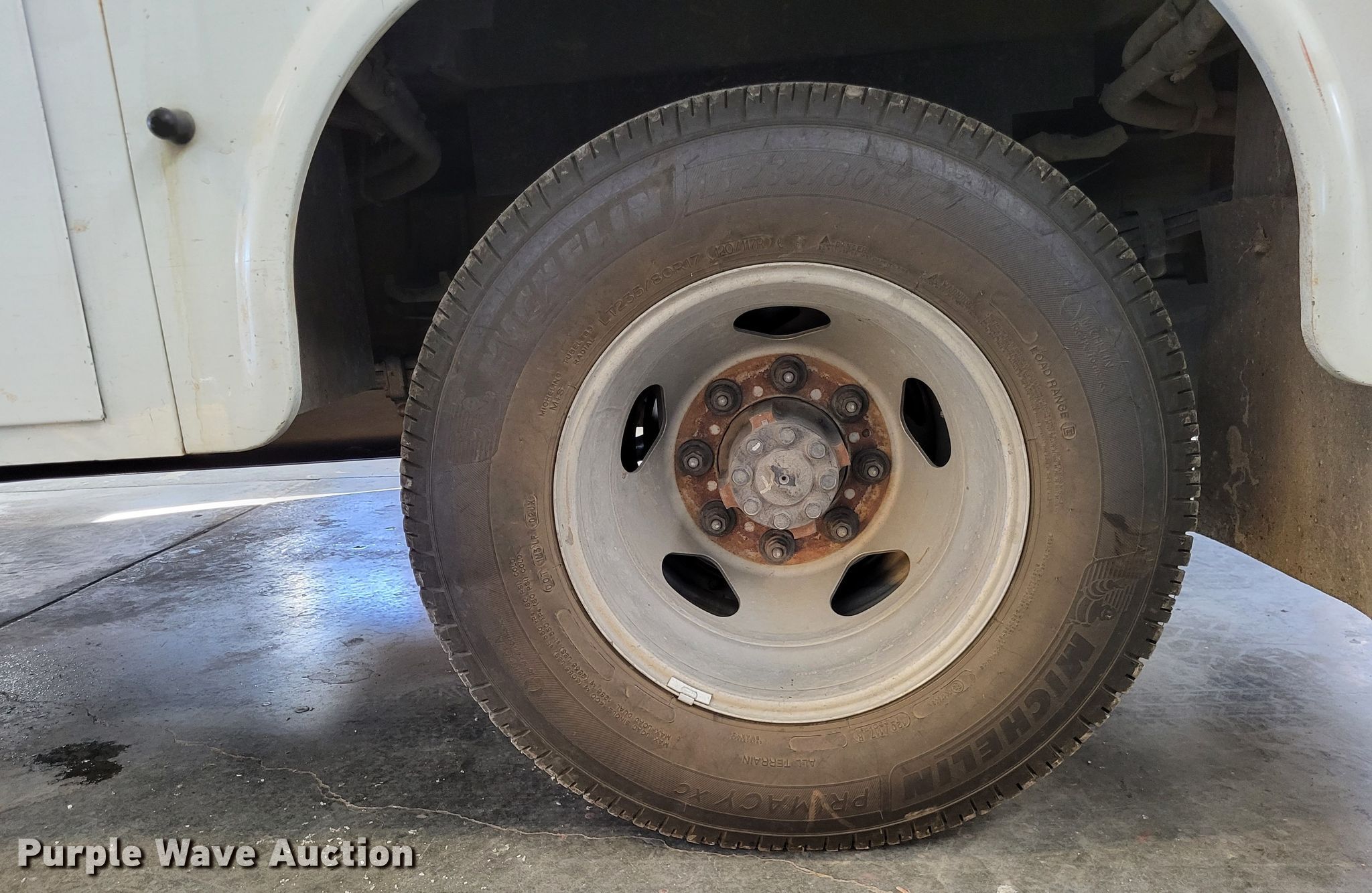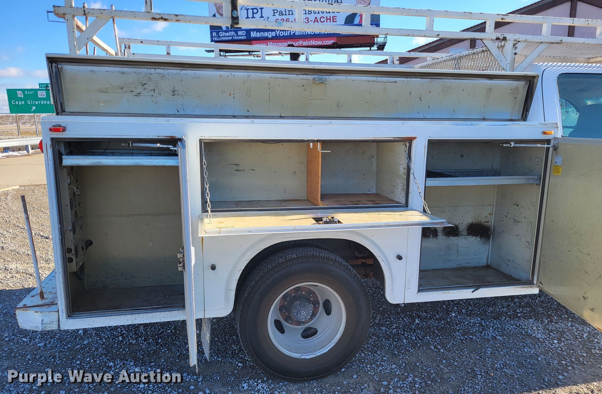 2015 Chevrolet Silverado 3500HD Crew Cab utility bed pickup truck. Miles: 202,459 on odometer, VIN: 1GB4KYCG2FF118967, Unit #: DSW514. Engine Displacement: 6.0L V8 OHV, Cylinders: 8, Fuel type: Gas. Transmission Automatic, Four wheel drive. Interior AC, Heat, Power windows, Power locks, Cruise control. Features Utility bed Knapheide, 9' L x 7' 10" W. Tires Size: LT235/80R17. Missouri title. Title distribution may be delayed up to 14 days from verification of funds. Drury Southwest inc.. 826 Fox Ln. Cape Girardeau, MO 63701