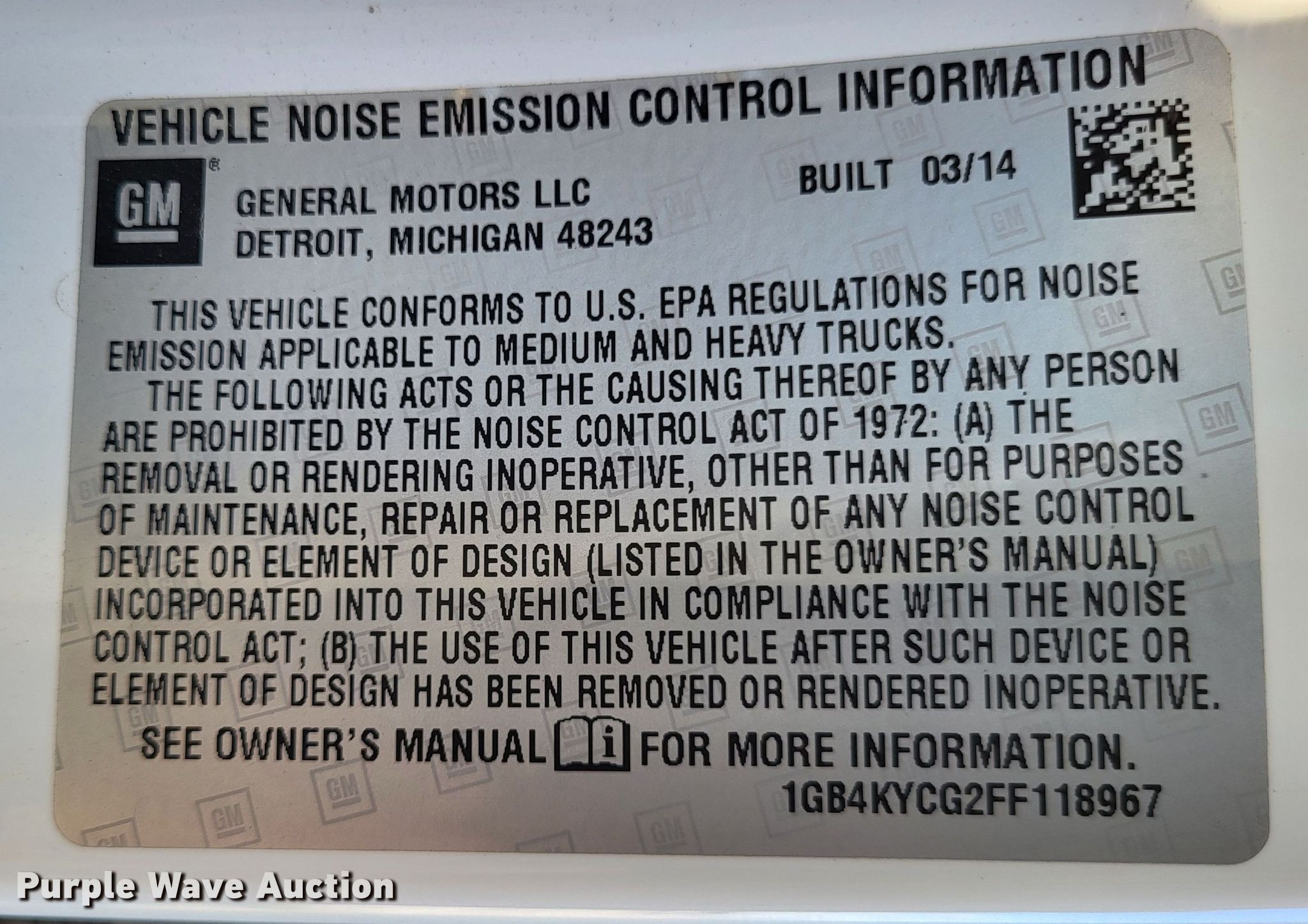 Purple Wave is selling a used 3/4 or 1 Ton Pickup or Van in Missouri. This item is a 2015 Chevrolet Silverado 3500HD Crew Cab utility bed pickup truck with the following: Miles: 202,459 on odometer, VIN: 1GB4KYCG2FF118967, Unit #: DSW514