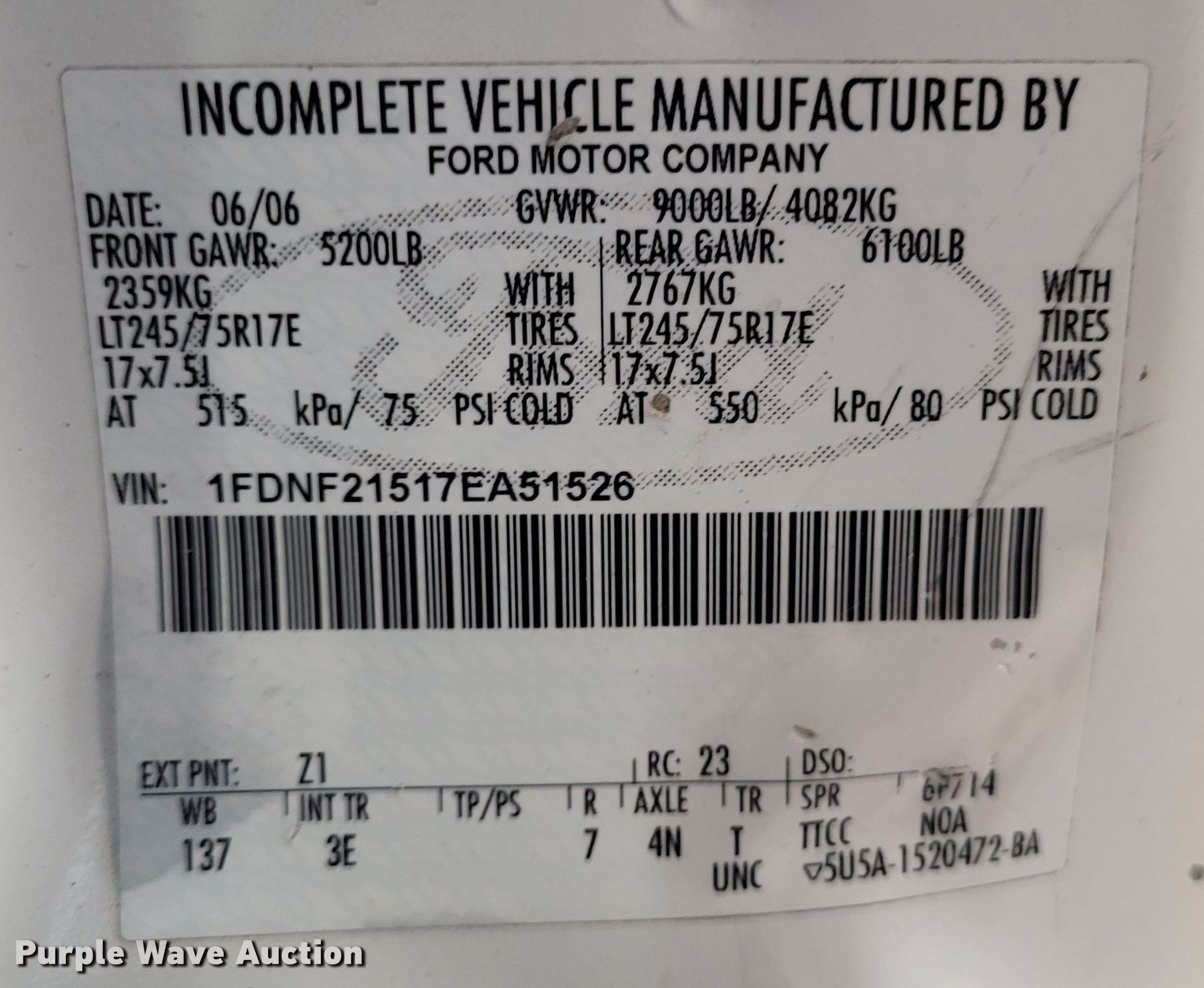- VIN: 1FDNF21517EA51526