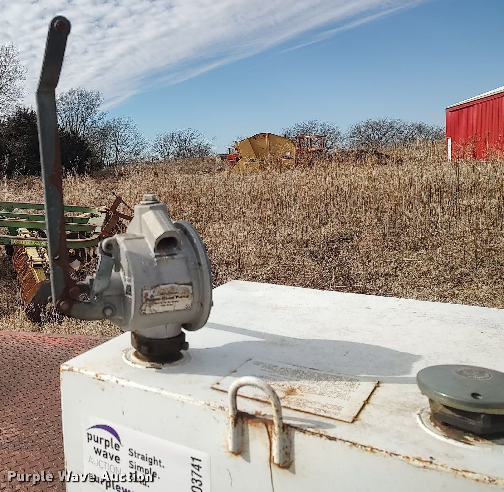 Purple Wave is selling a used Fuel and Lube in Kansas. This item is a Delta Consolidated Industries 485000 fuel tank with the following: Serial: 030214, Capacity: 50 gallons, Tuthill Piston hand pump, GPM: 20