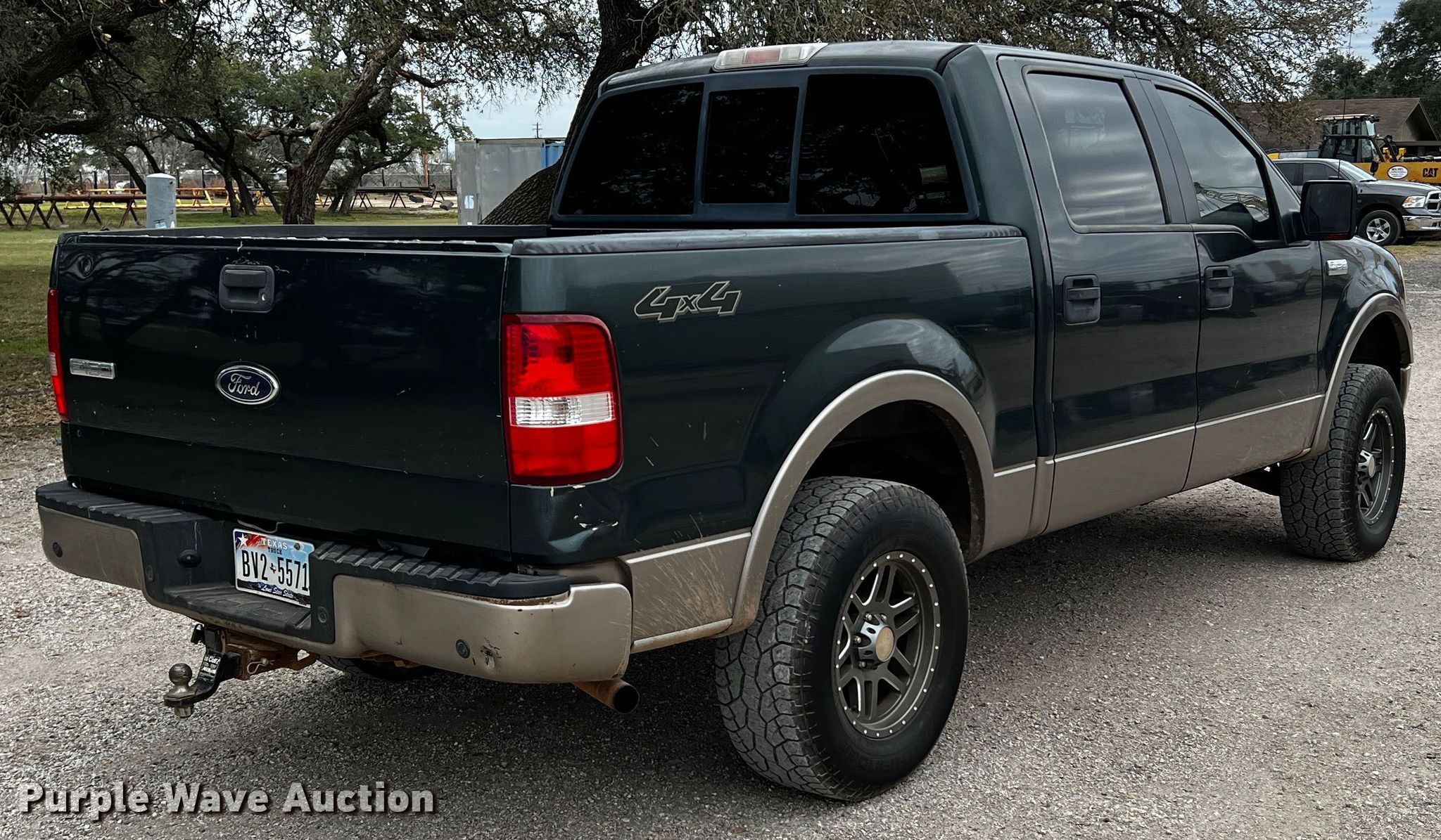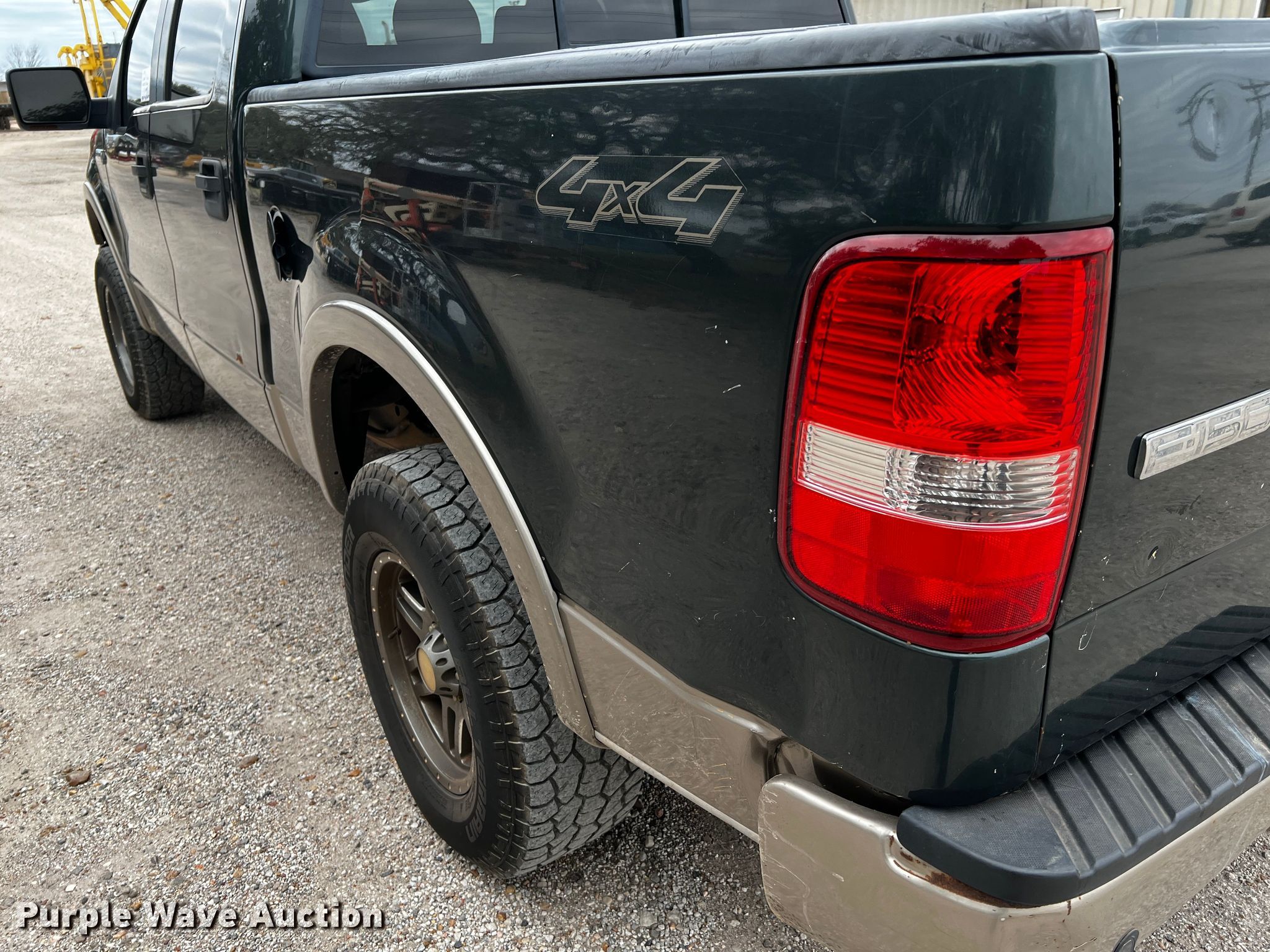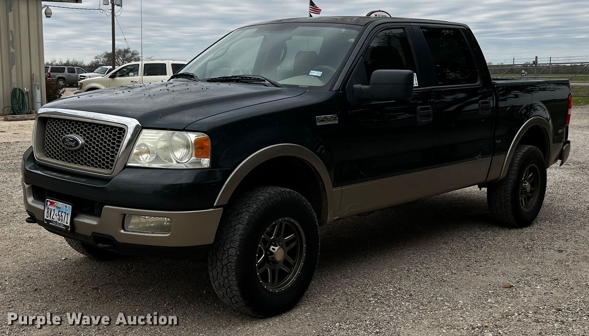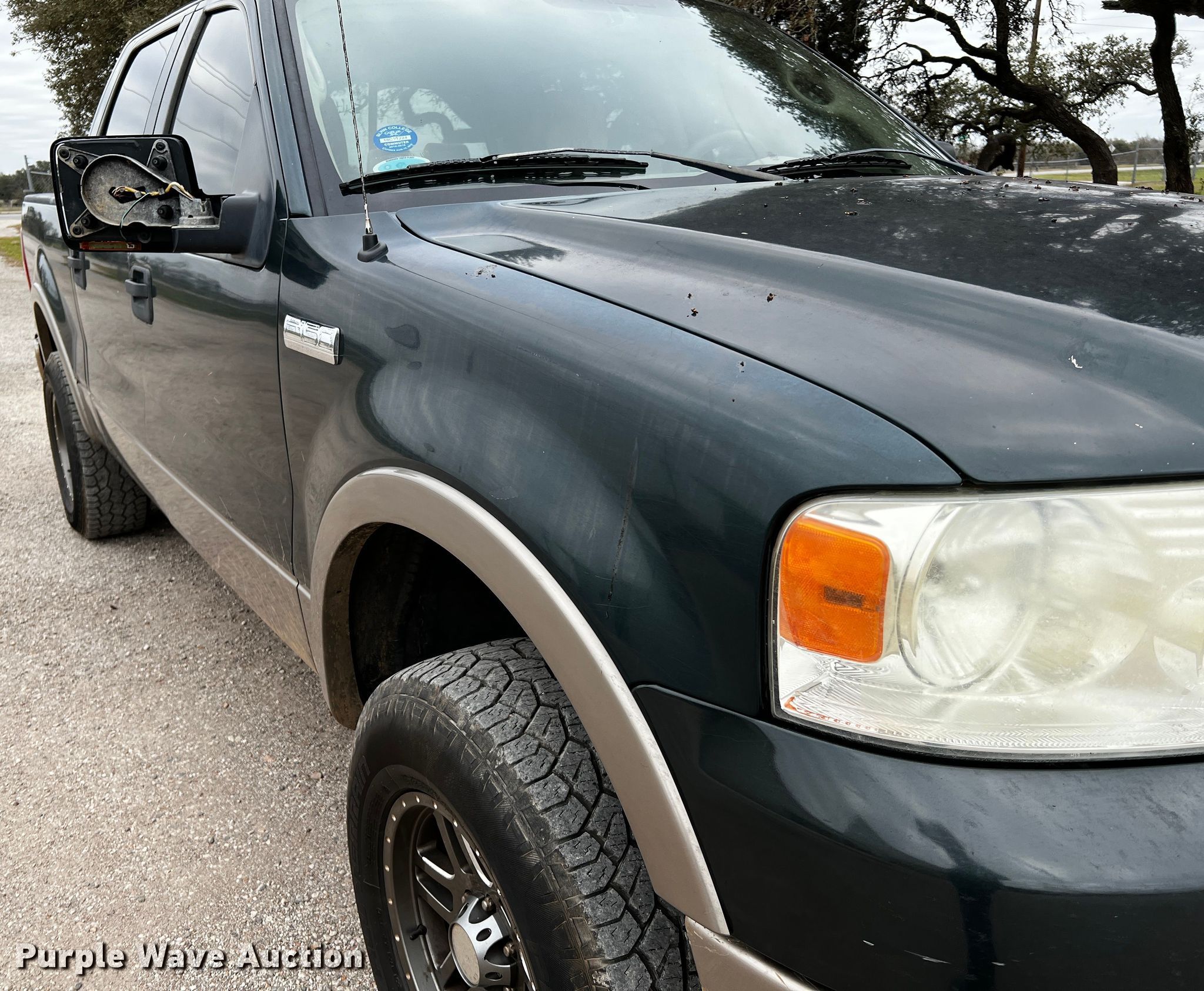 2005 Ford F150 SuperCrew pickup truck. Miles: 171,619 on odometer, VIN: 1FTPW14515FB24243. Engine Displacement: 5.4L V8 SOHC, Cylinders: 8, Fuel type: Gas. Transmission Automatic, Four wheel drive. Interior AC, Heat, Seat: Power driver, Power windows, Power locks, Cruise control. Tires Size: 285/70R17. Notes Dash warning indicator: Check engine, Windshield chipped or cracked. Texas title. Title distribution may be delayed up to 14 days from verification of funds. Bobby Lehmann Equipment. 5468 HWY 290E. Giddings, TX 78942