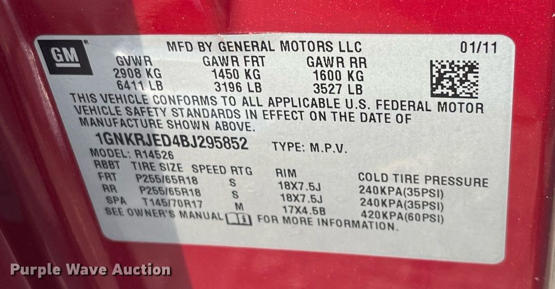 - VIN: 1GNKRJED4BJ295852