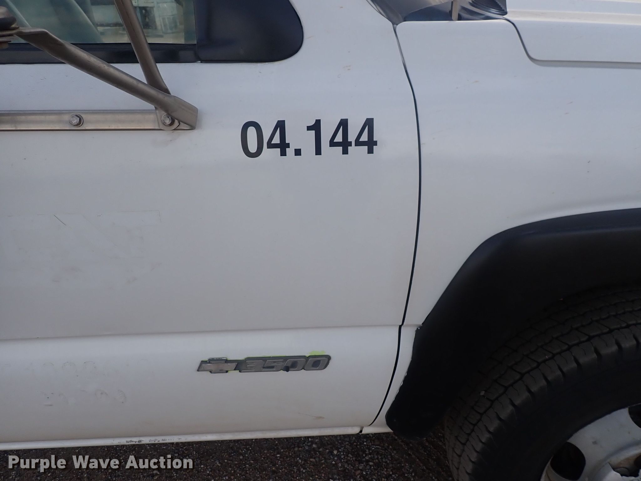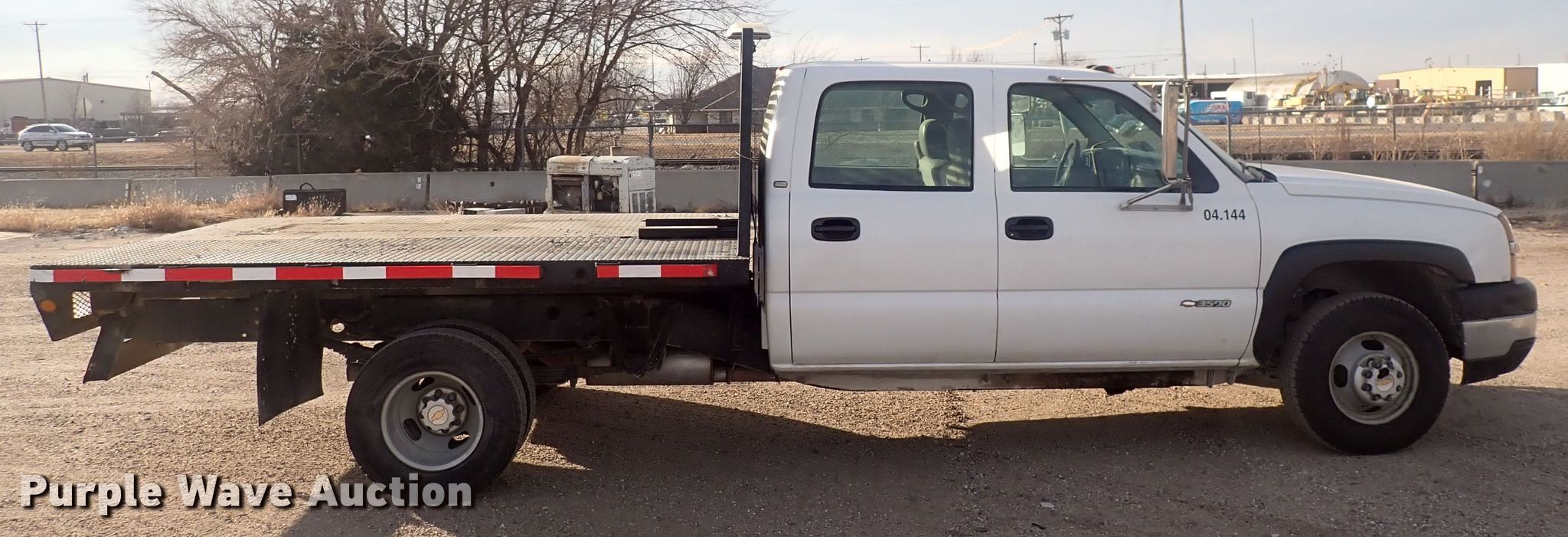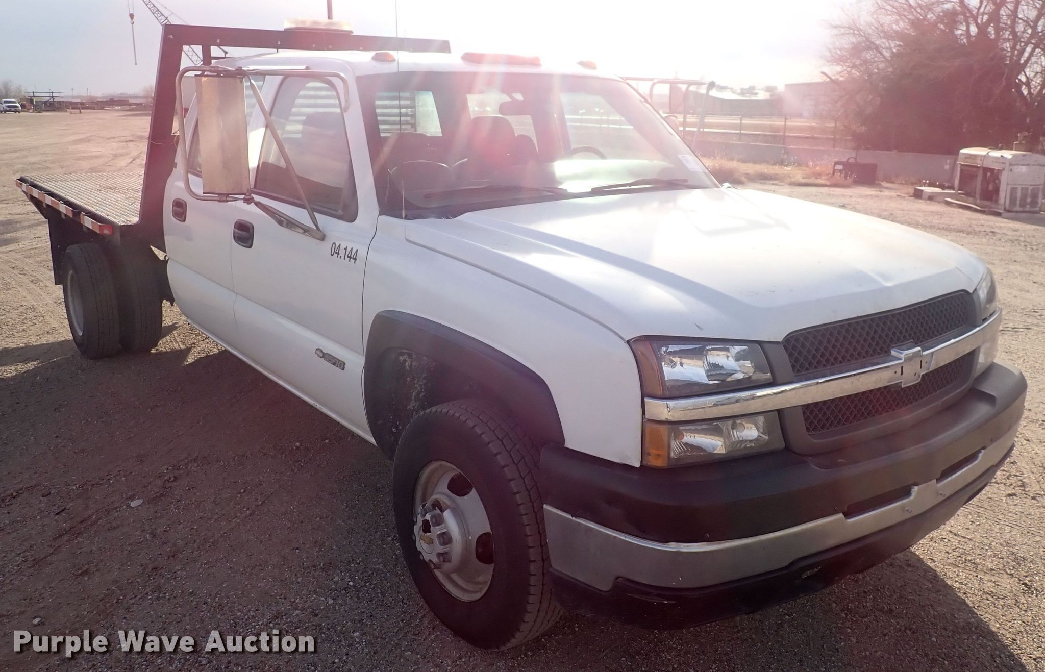 Purple Wave is selling a used 3/4 or 1 Ton Pickup or Van in Kansas. This item is a 2003 Chevrolet Silverado 3500 Crew Cab flatbed pickup truck with the following: Miles: 189,728 on odometer, VIN: 1GBJC33G33F194678, Unit #: 04.144