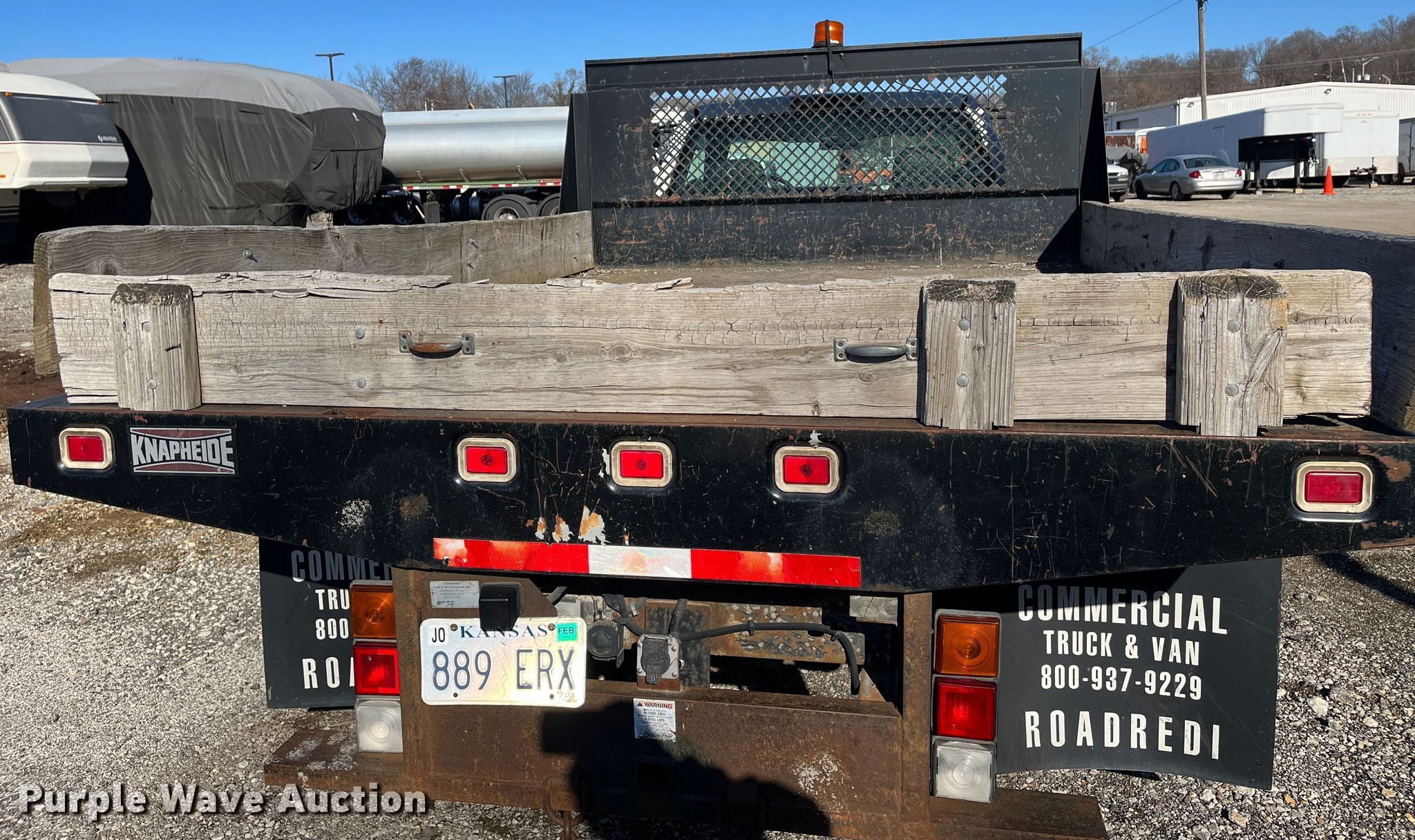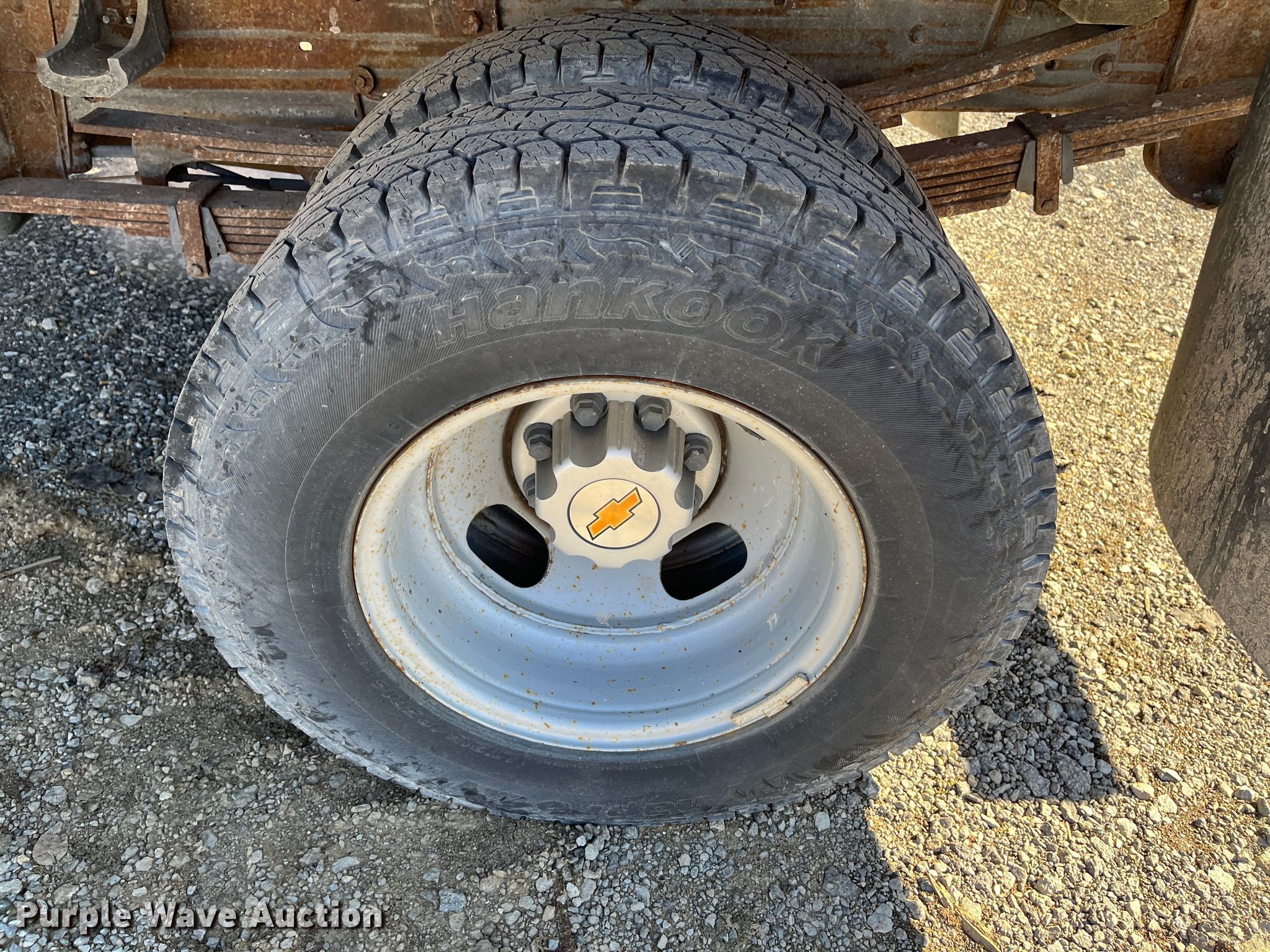 2001 Chevrolet Silverado 3500 flatbed pickup truck. Miles: 187,993 on odometer, VIN: 1GBJC34G21F193811. Engine Displacement: 8.1L V8 OHV, Cylinders: 8, Fuel type: Gas. Transmission Manual, Speed: 6. Interior AC, Heat, Cruise control. Features Flatbed 11' L x 96" W, Hitch: Gooseneck. Tires Size: 215/85R16. Kansas title. Mill Valley Construction, Inc.. 3311 Merriam Ln. Kansas City, KS 66106