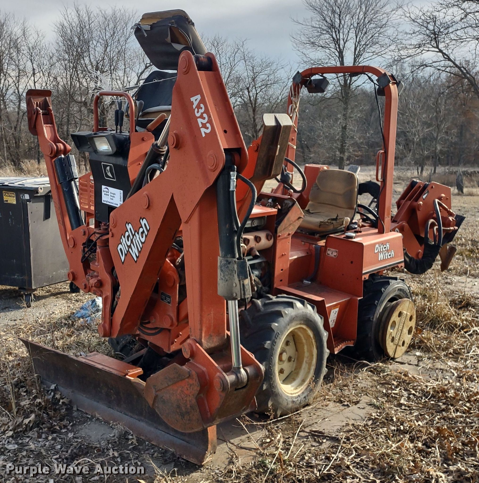 2001 Ditch Witch 3700 trencher. Hours: 2,419 on meter, Serial: 3V0108. Engine Deutz, Cylinders: 3, Fuel type: Diesel. Transmission Hydrostatic, Four wheel drive. Features Combination unit Model: H350, Serial: 8V0057, Trencher Estimated dig depth: 56", Backhoe Model: A322, Serial: 1V0604, Bucket width: 12", Backfill blade Width: 64". Tires Size: 29x12.50-15, Rear wheel weights. Notes Turns over, but will not start, Unknown operating condition. Acentric, LLC. 26909 South Rodier Road. Freeman, MO 64746