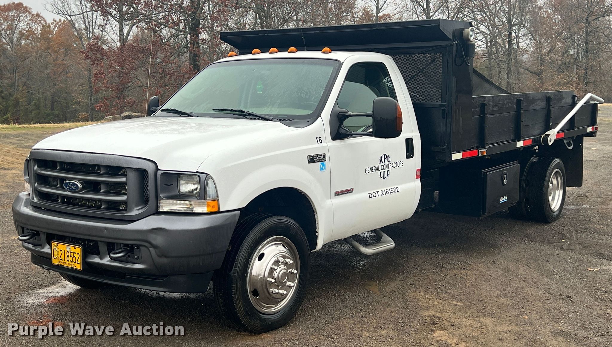 This 2004 Ford F550 Super Duty dump flatbed truck will sell to the highest bidder regardless of price.