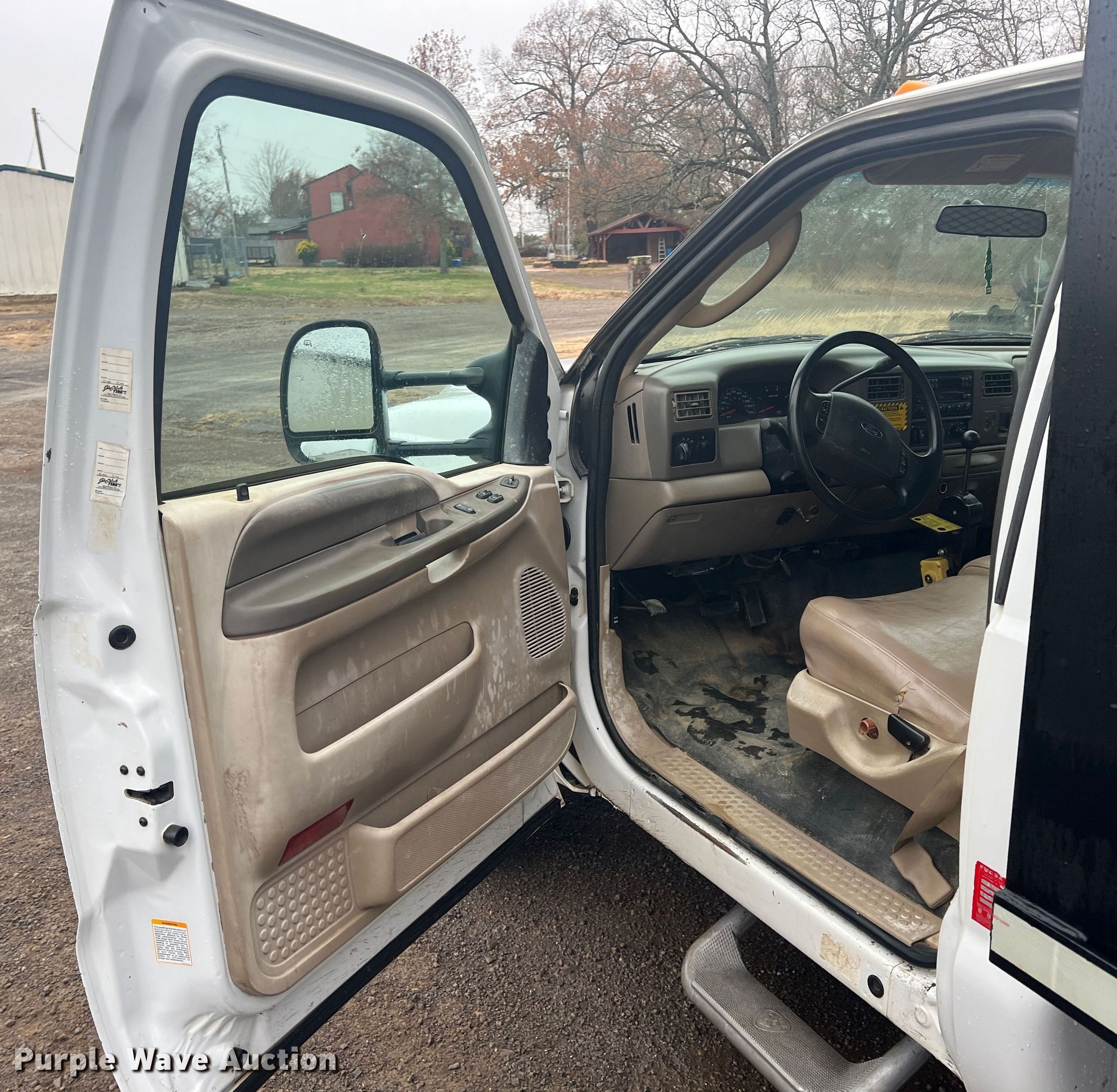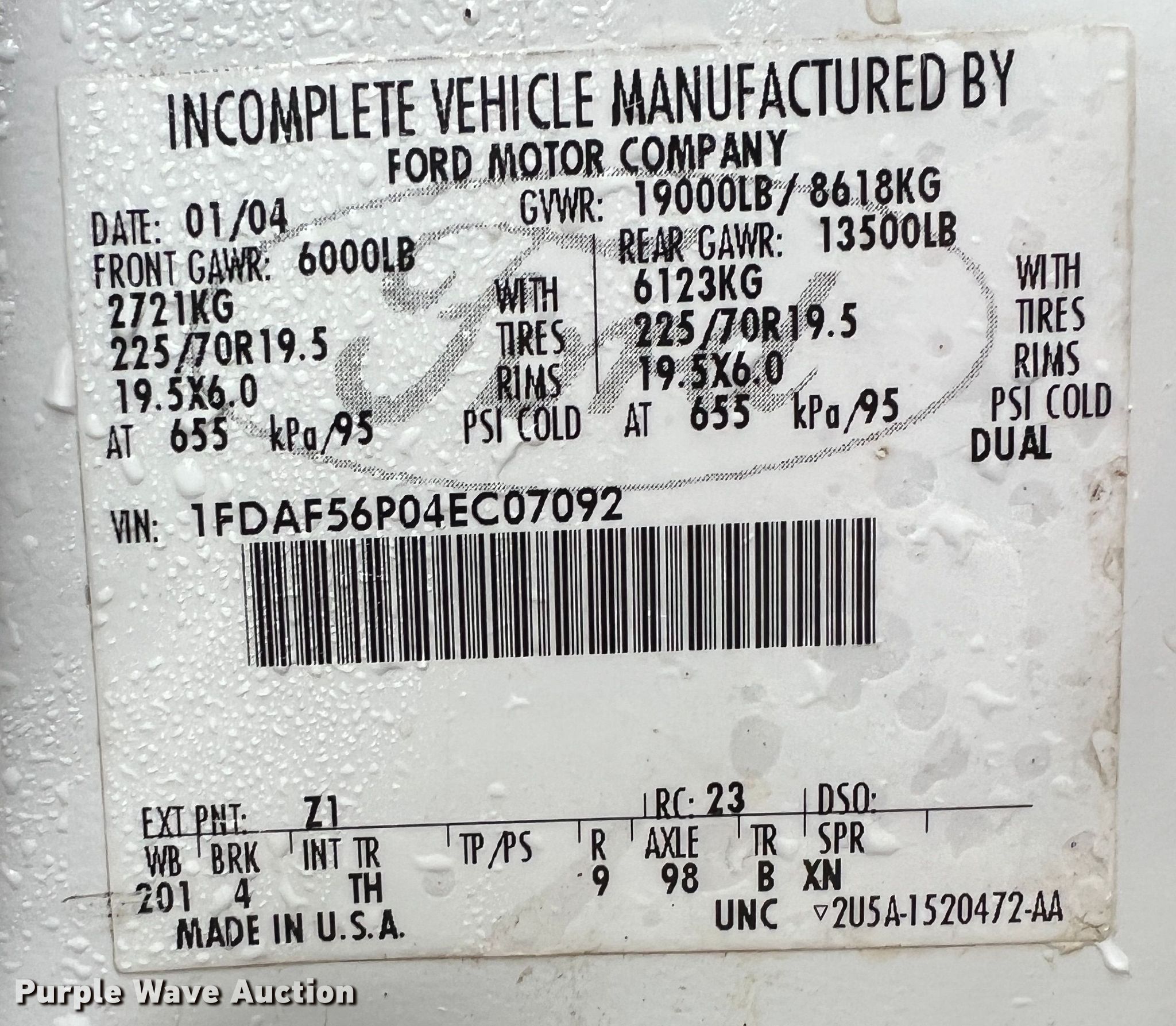2004 Ford F550 Super Duty dump flatbed truck. Miles: 88,530 on odometer, VIN: 1FDAF56P04EC07092. Engine Displacement: 6.0L, Cylinders: 8, Fuel type: Diesel. Transmission Automatic. Chassis Axles: Single, Suspension: Spring, Brakes: Hydraulic, PTO, Wet kit, GVWR: 19,000 lbs, Wheelbase: 201". Interior AC, Heat, Power windows, Power locks, Cruise control. Features Dump flatbed 14' L x 8' 2" W, Roll tarp, Ram: Double, End gate: Hydraulic. Tires Size: 225/70R19.5. Arkansas title. Title distribution may be delayed up to 14 days from verification of funds. KPC, LLC Retirement. 3625 Carney Circle. Rudy, AR 72952