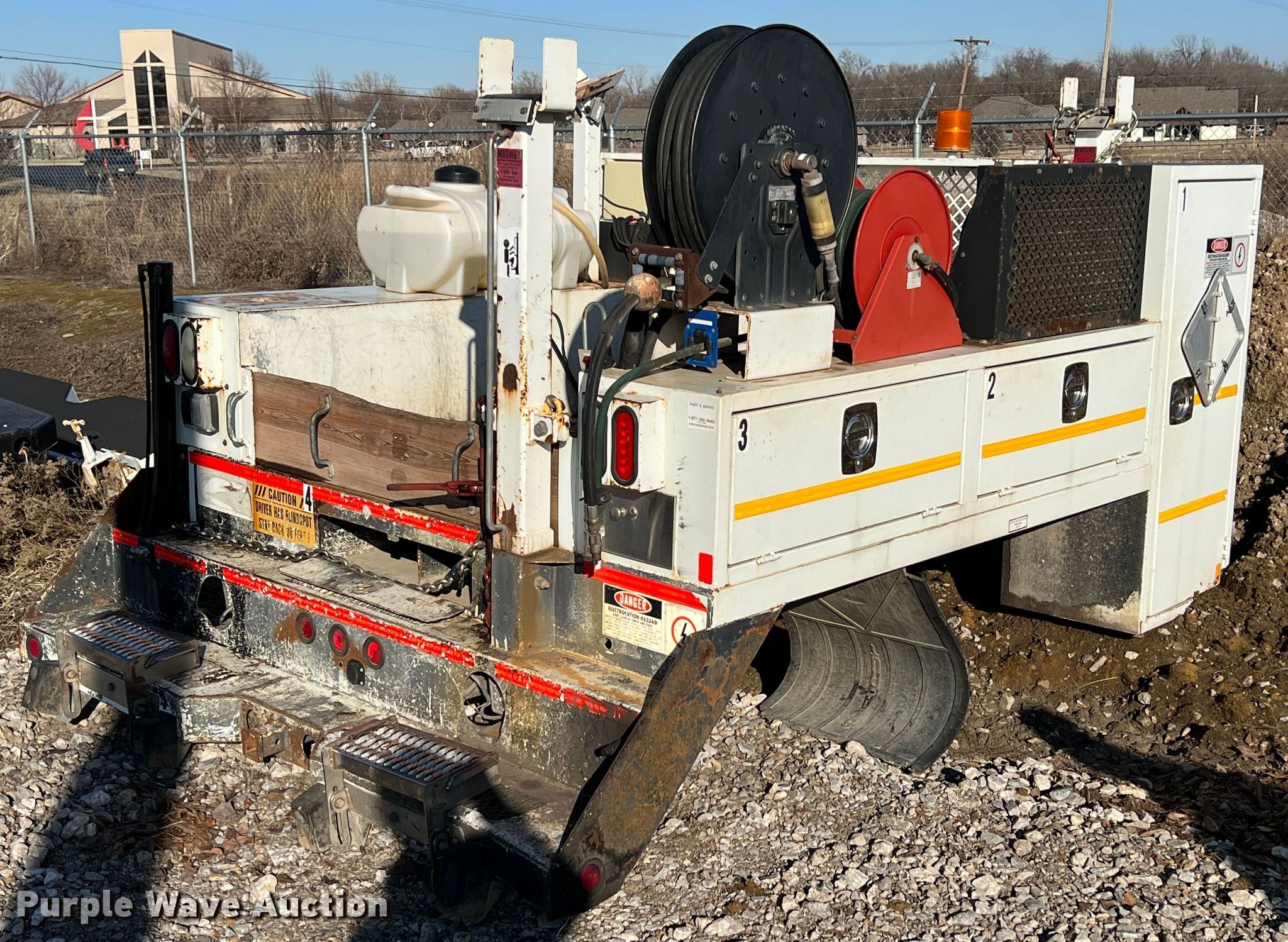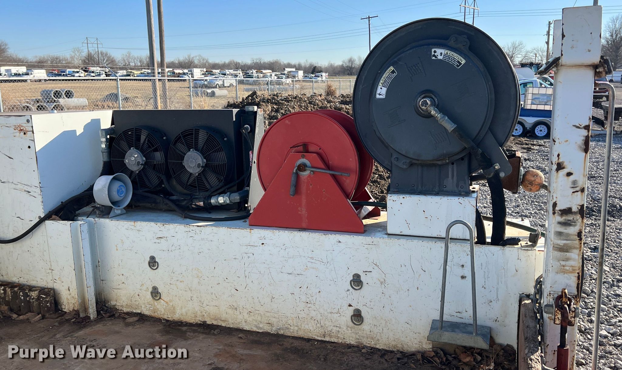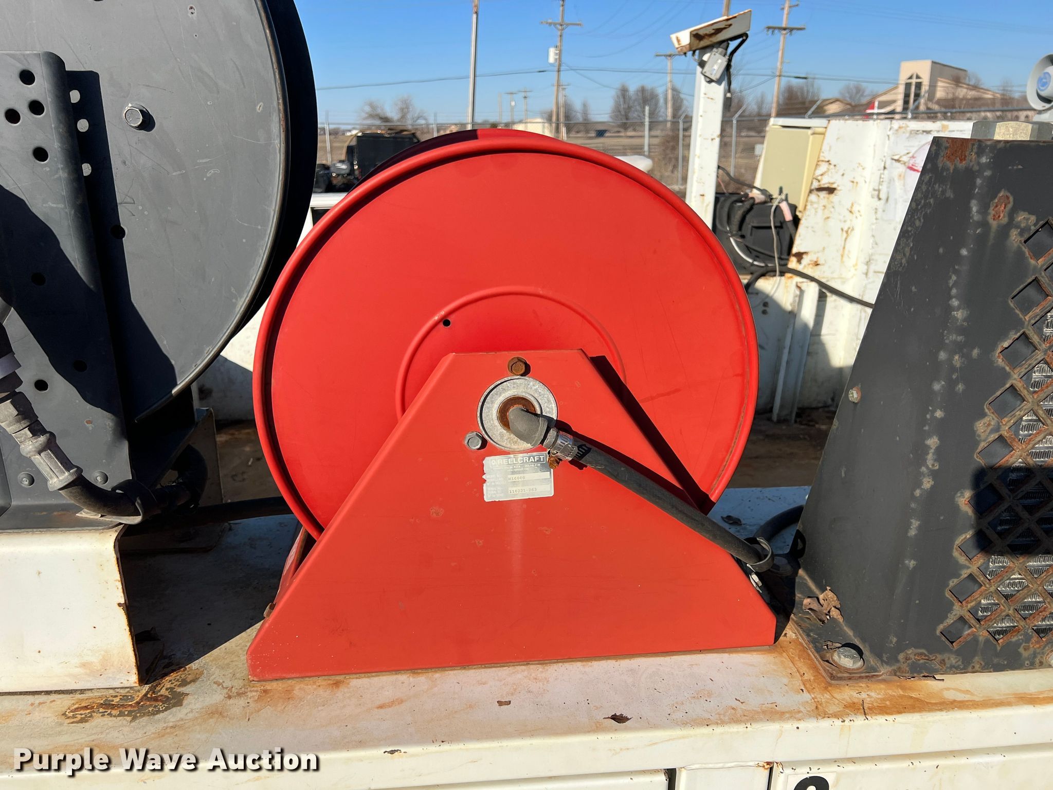 Purple Wave is selling a used Truck Part and Attach. in Oklahoma. This item is a Webbs Trucks utility bed with the following: 10' L x 7' 8" W, Wet kit, Air hose reel, Hydraulic reel, Poly tank, Capacity: 35 gallons