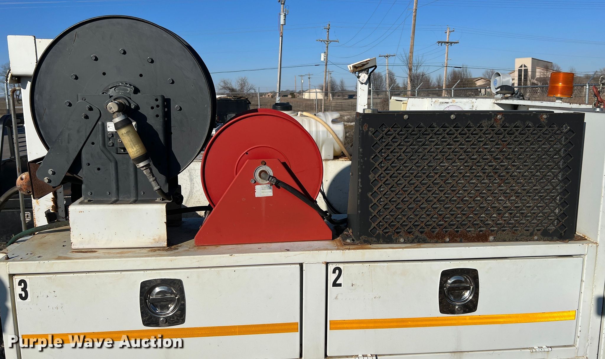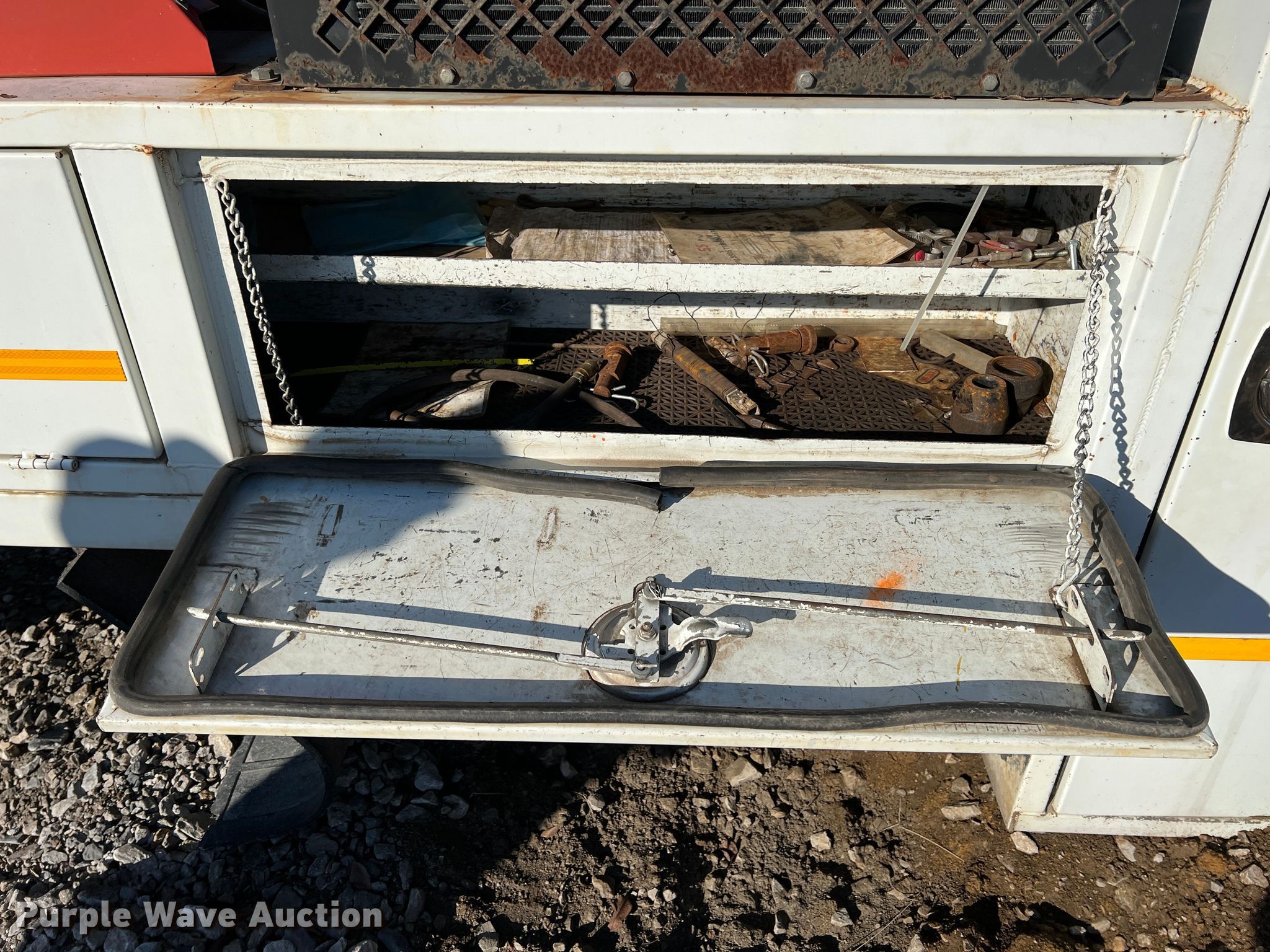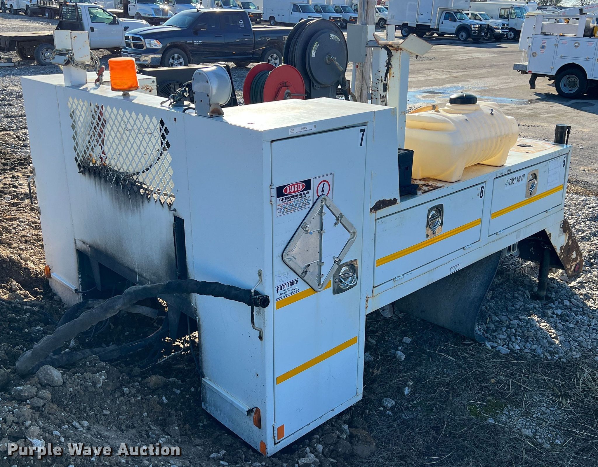 Purple Wave is selling a used Truck Part and Attach. in Oklahoma. This item is a Webbs Trucks utility bed with the following: 10' L x 7' 8" W, Wet kit, Air hose reel, Hydraulic reel, Poly tank, Capacity: 35 gallons