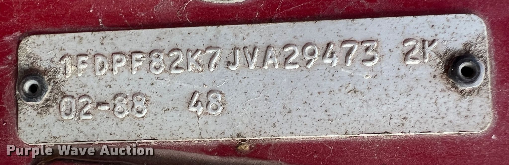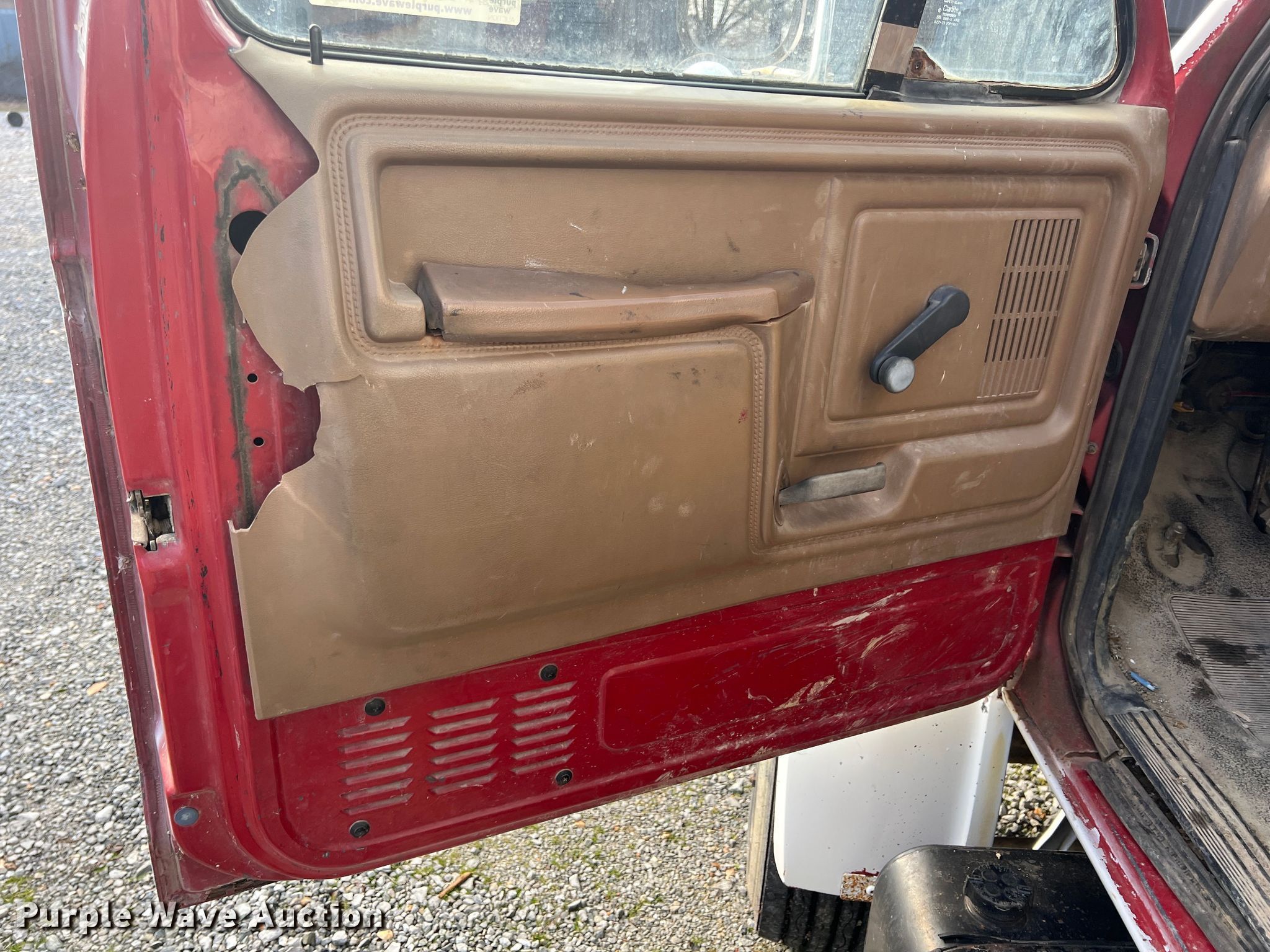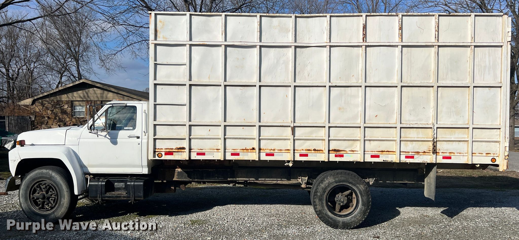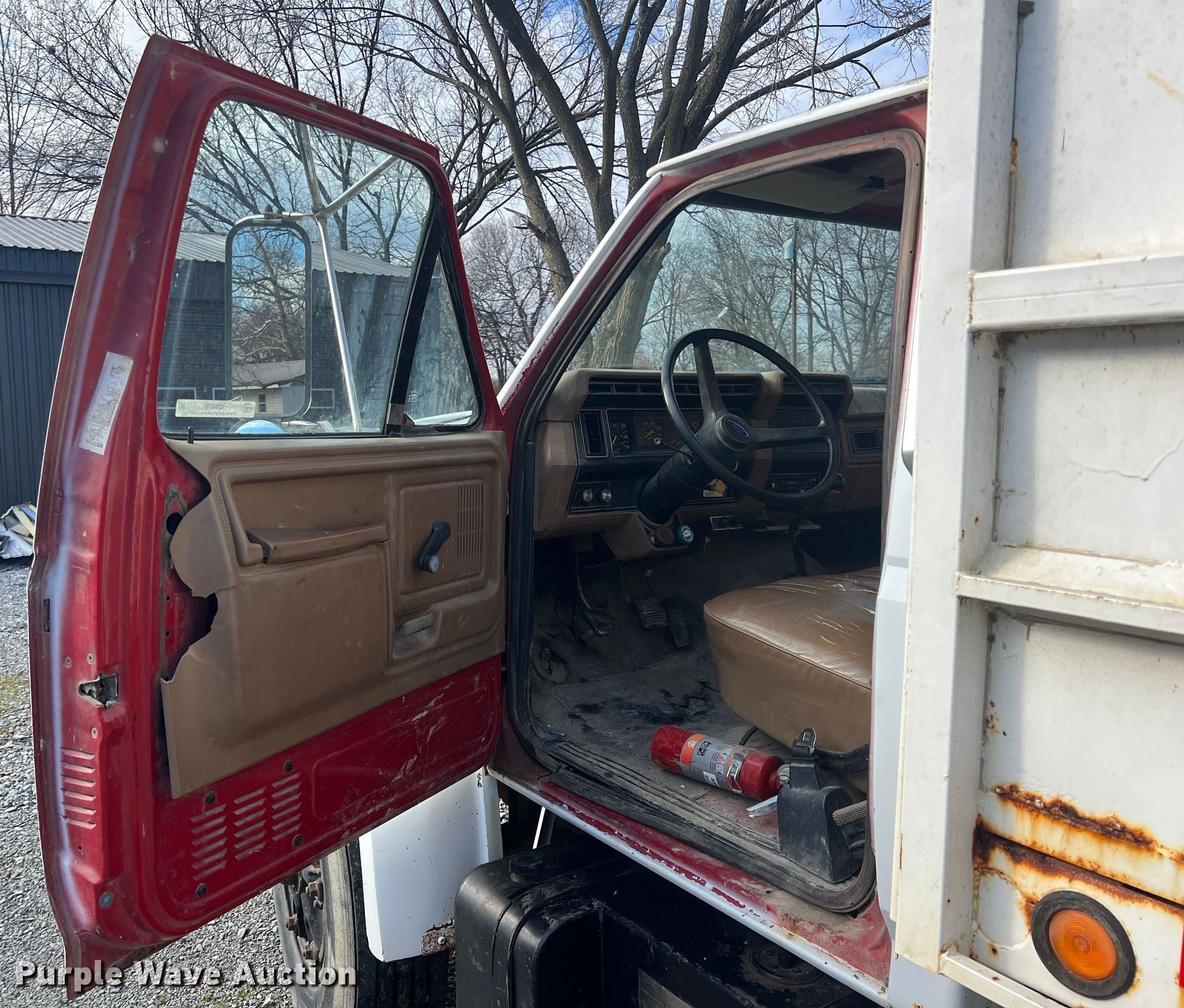 1988 Ford F700 dump truck. Miles: 15,289 on odometer, VIN: 1FDPF82K7JVA29473. Engine Displacement: 7.0L, Cylinders: 8, Fuel type: Gas. Transmission Manual, Speed: 5. Chassis Axles: Single, Suspension: Spring, Brakes: Hydraulic, GVWR: 28,000 lbs, Wheelbase: 207". Interior AC, Heat. Features Dump bed 20' 2" L x 100" W, Side height: 100", Bed type: Steel, Ram: Dual, End gate: Manual. Tires Size: 11R22.5. Kansas title. Title distribution may be delayed up to 14 days from verification of funds. Grove, OK 74344