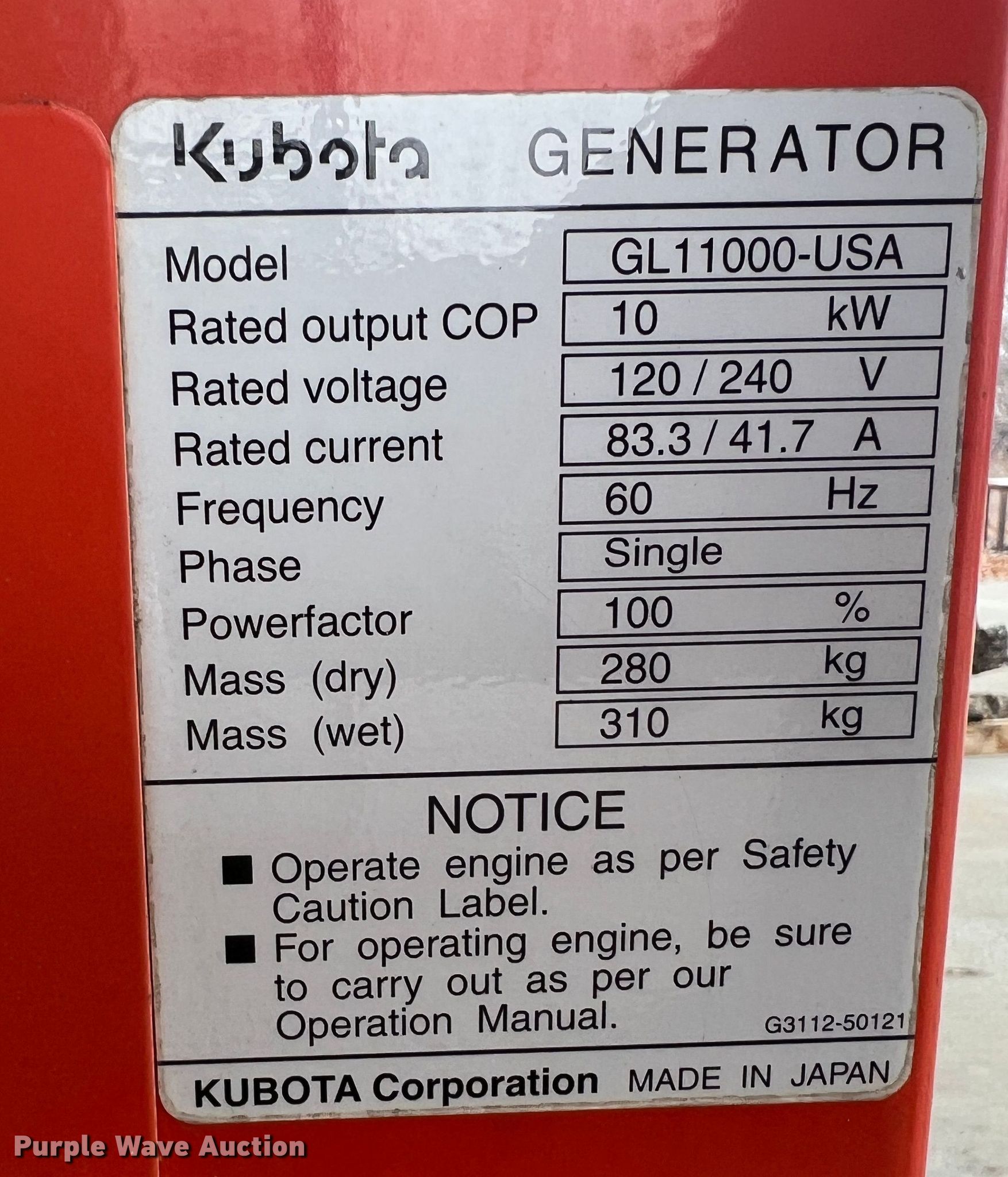 This Kubota Lowboy II generator will sell to the highest bidder regardless of price.