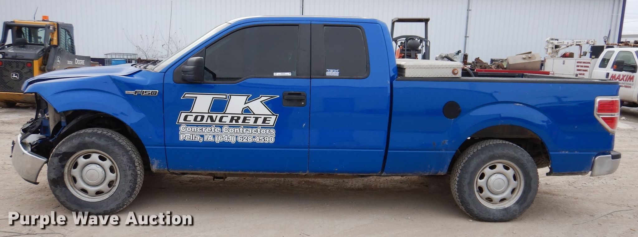 2012 Ford F150 XL Ext. Cab pickup truck. Miles: 210,343 on odometer, VIN: 1FTEX1CMXCKD39167. Engine Displacement: 3.7L V6 DOHC, Cylinders: 6, Fuel type: Gas. Transmission Automatic. Interior AC, Heat, Power windows, Power locks, Cruise control. Tires Size: 245/75R17. Notes Collision damage, Auxiliary fuel tank and toolbox not included, Dead battery. Iowa title. Title distribution may be delayed up to 14 days from verification of funds. TK Concrete Inc. 1608 Fifield Road. Pella, IA 50219