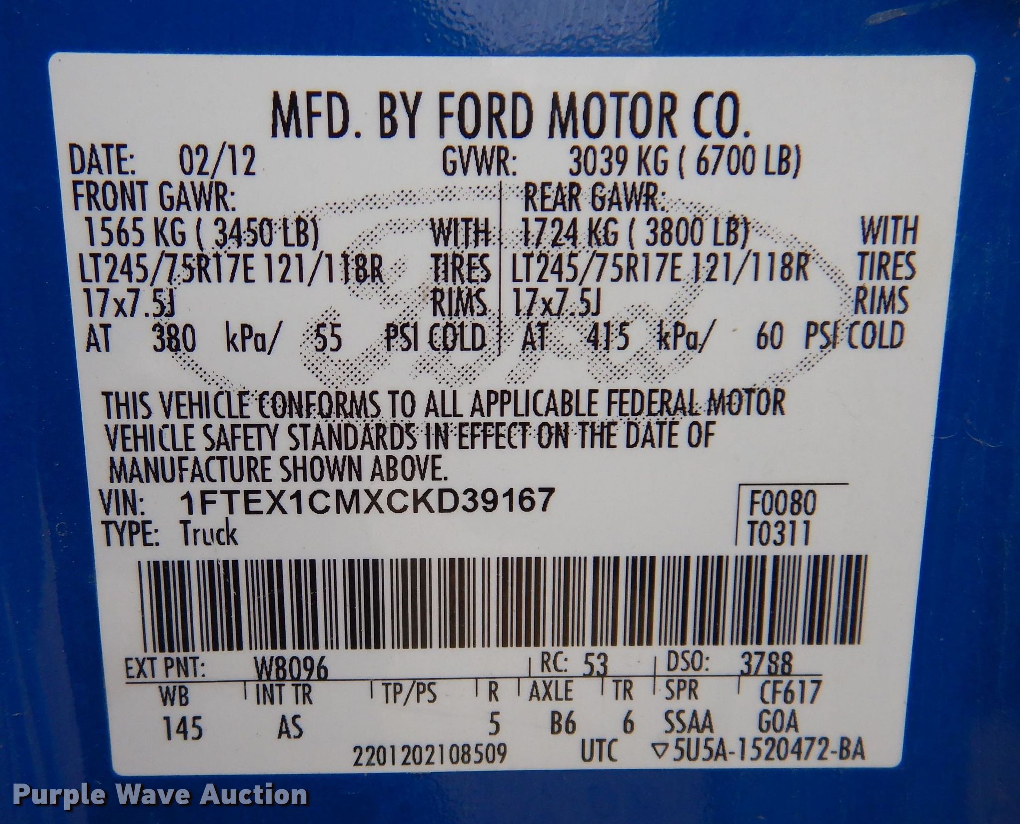 - VIN: 1FTEX1CMXCKD39167