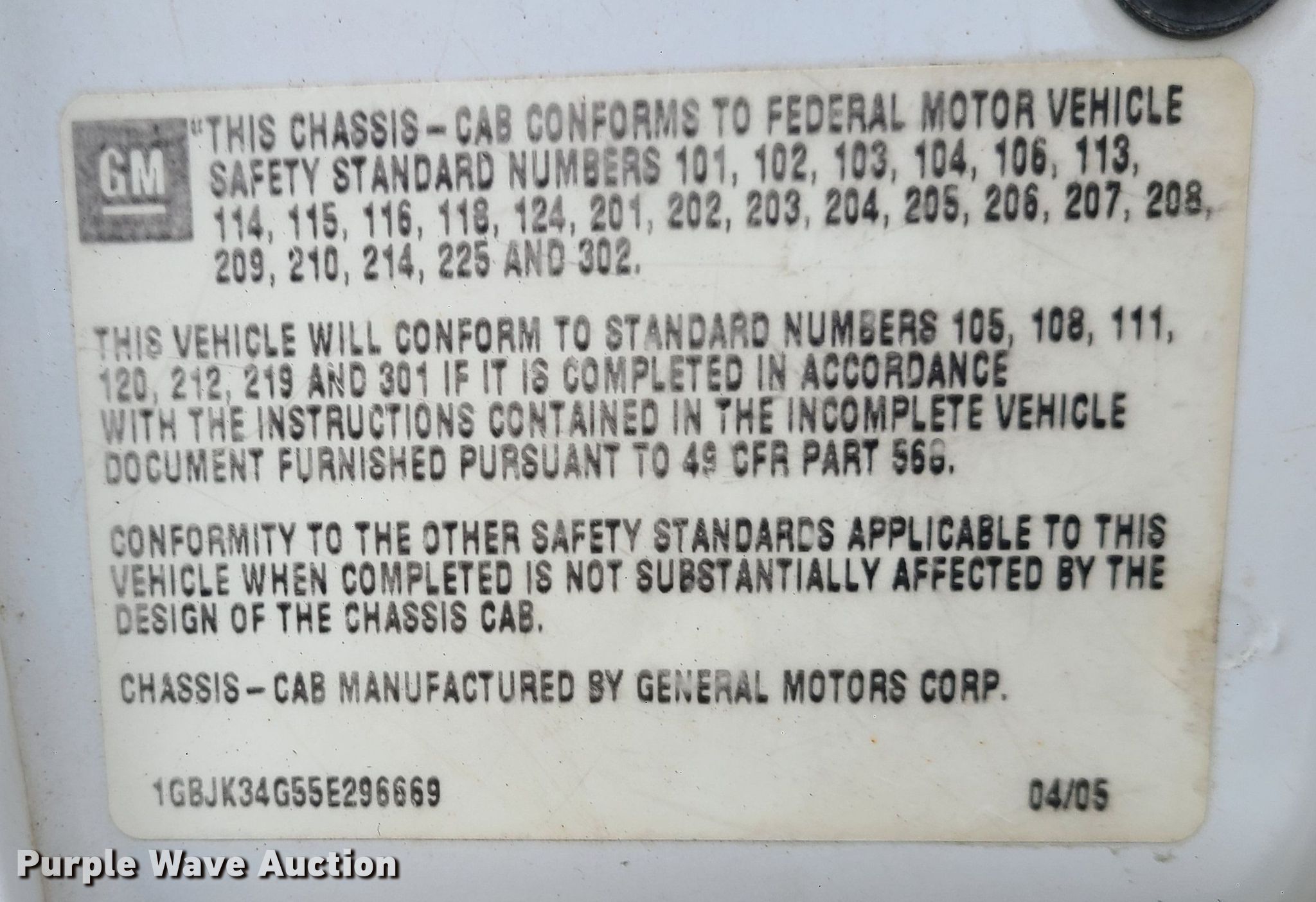 Purple Wave is selling a used 3/4 or 1 Ton Pickup or Van in Missouri. This item is a 2005 Chevrolet Silverado 3500 dump bed pickup truck with the following: Miles: 367,585 on odometer, VIN: 1GBJK34G55E296669