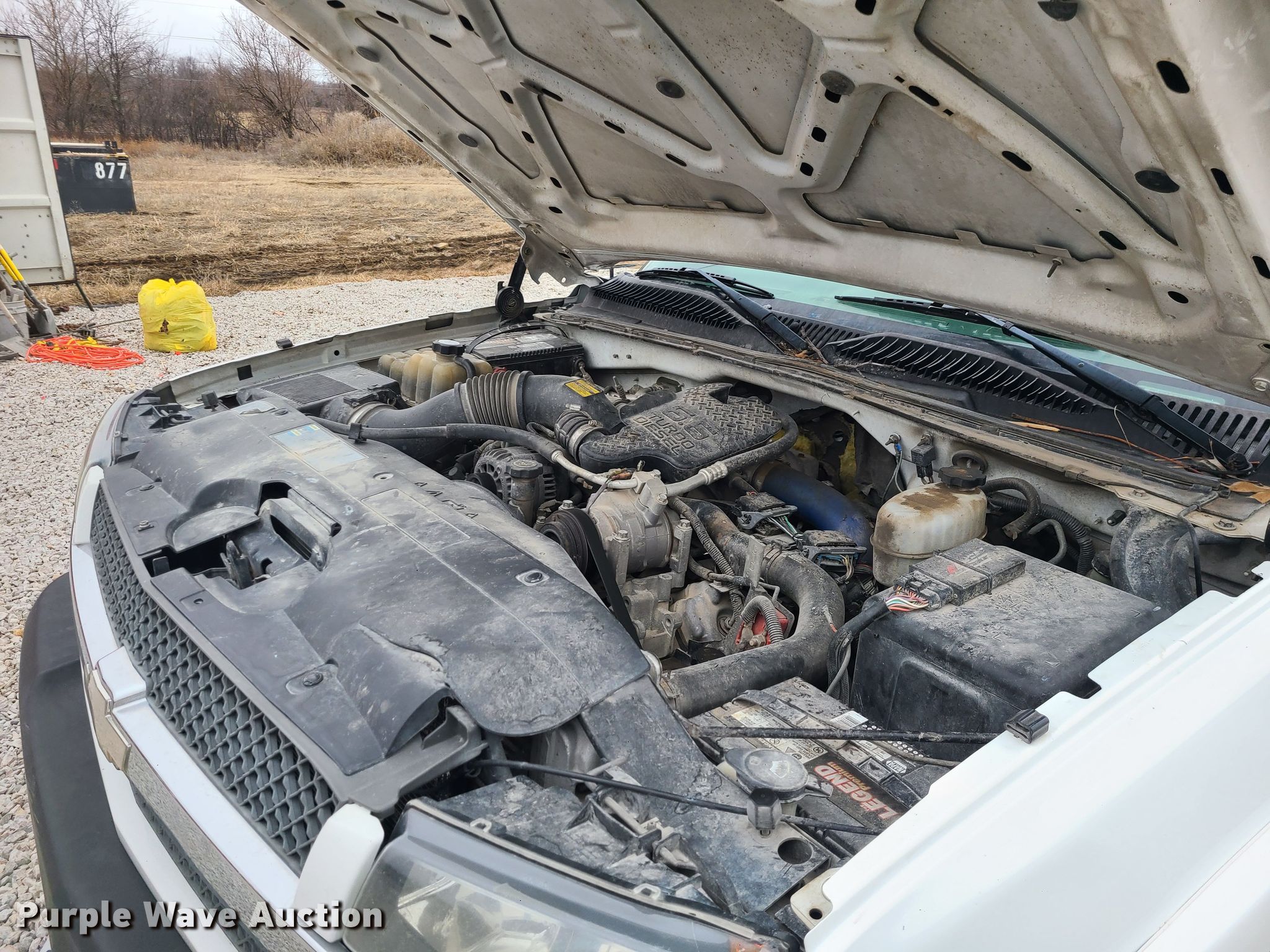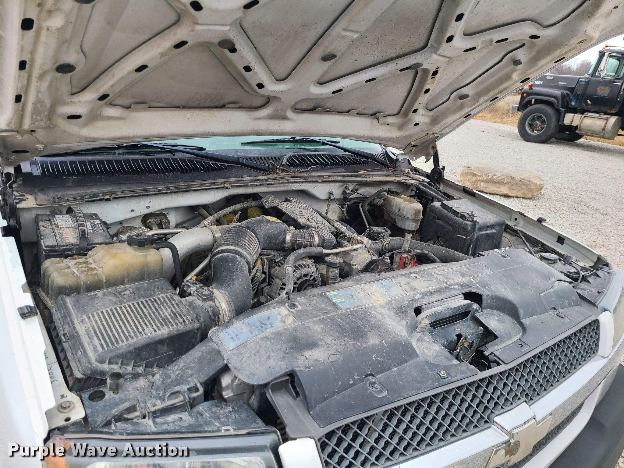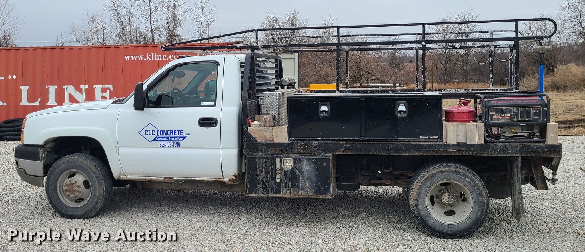 2003 Chevrolet Silverado 3500 flatbed pickup truck. Miles: 319,953 on odometer, VIN: 1GBJK341X3E328640. Engine Displacement: 6.6L V8 OHV, Cylinders: 8, Fuel type: Diesel. Transmission Manual, Speed: 6, Four wheel drive. Interior AC, Heat, Power windows, Power locks, Cruise control. Features Flatbed 10' L x 93" W. Notes Dash warning indicator: ABS, Brake, Windshield chipped or cracked, Contents in boxes, fuel tank, and generator not included. Missouri title. Title distribution may be delayed up to 14 days from verification of funds. CLC Concrete. 1300 Richland Parkway. Pleasant Hill, MO 64080