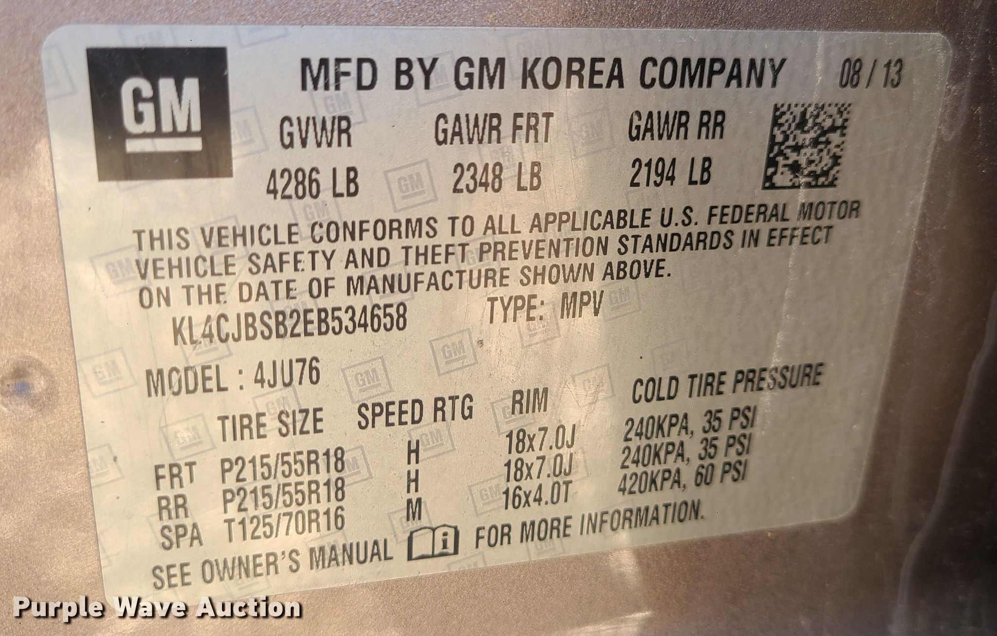 - VIN: KL4CJBSB2EB534658