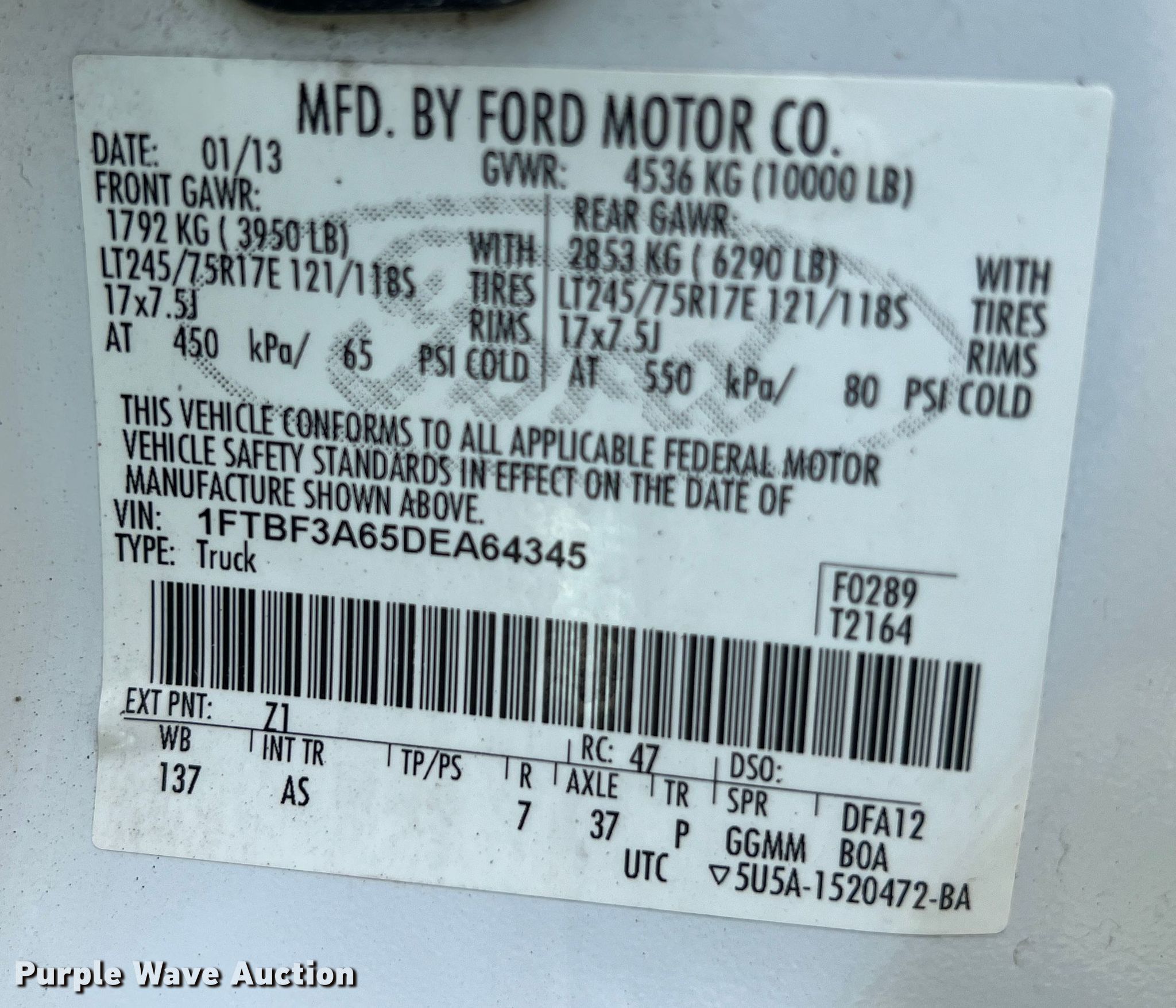Purple Wave is selling a used 3/4 or 1 Ton Pickup or Van in Missouri. This item is a 2013 Ford F350 Super Duty XL pickup truck with the following: Miles: 79,682 on odometer, VIN: 1FTBF3A65DEA64345