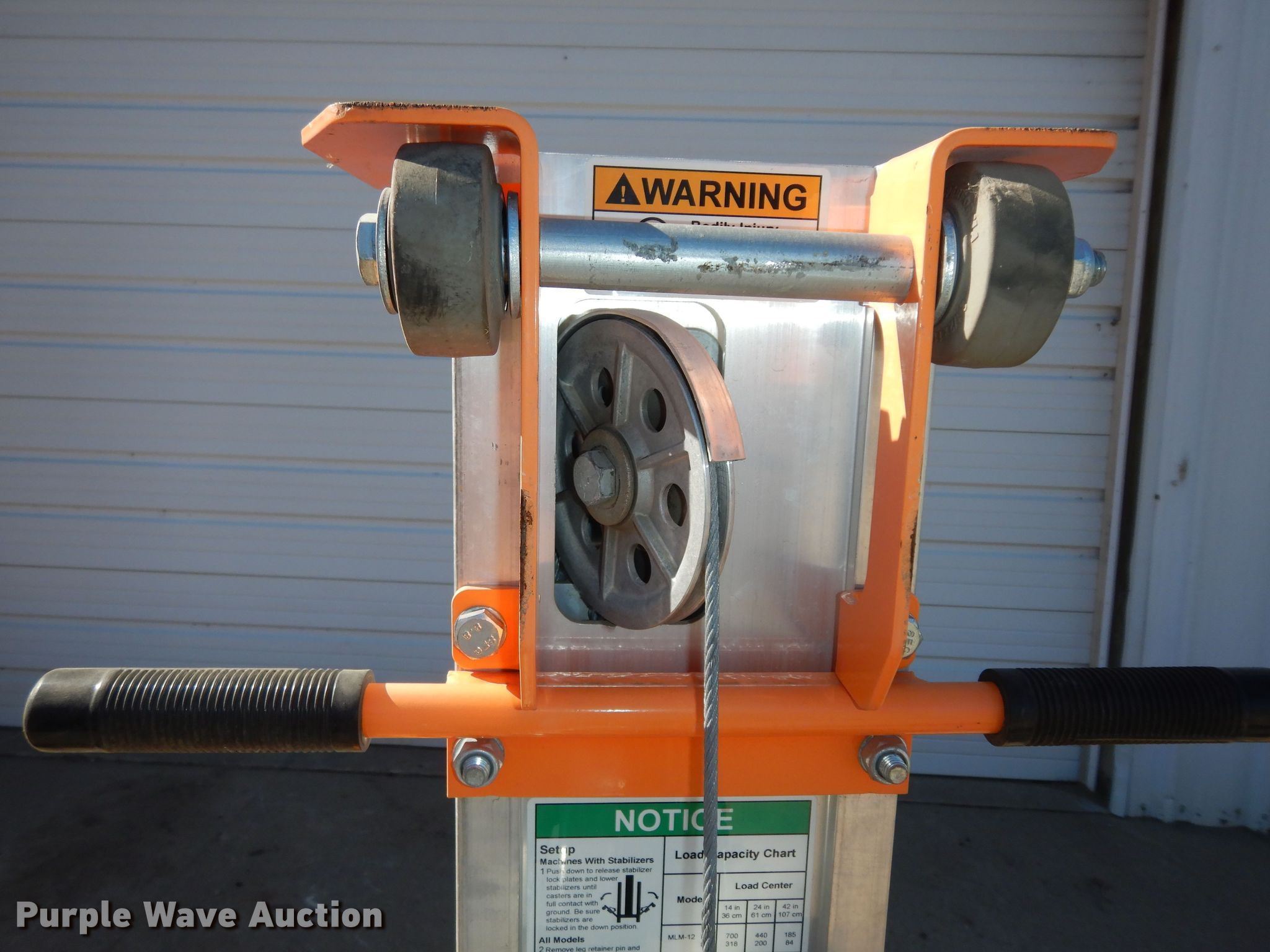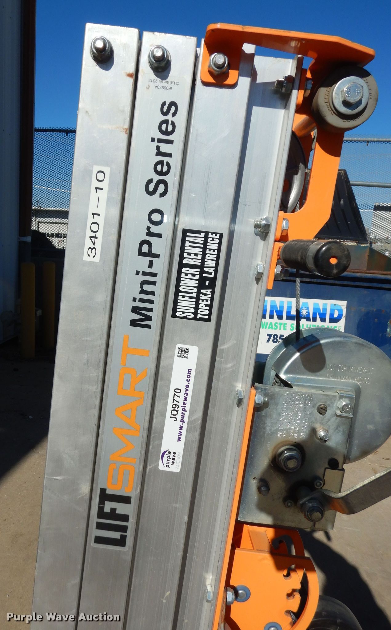 Purple Wave is selling a used Scissor or Vertical Lift in Kansas. This item is a Lift Smart Mini Pro MLM12 vertical lift with the following: 700lb capacity, Manual crank, Unit #: 340110