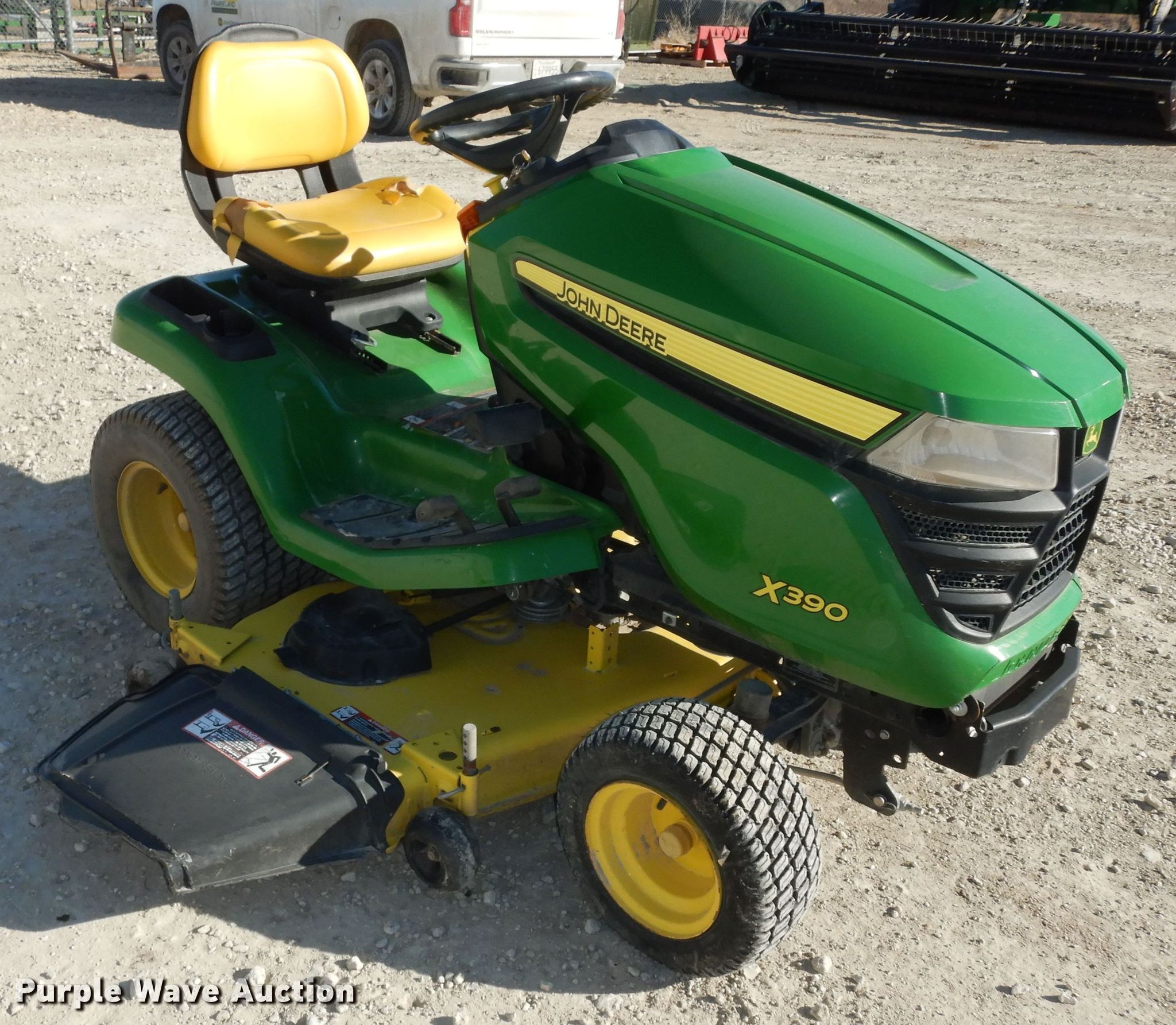 Purple Wave is selling a used Lawn Mower in Kansas. This item is a John Deere X390 lawn mower with the following: Hours: 464 on meter, Cutting width: 54", Serial: 1MOX390BCGM010622, Unit #: 453839