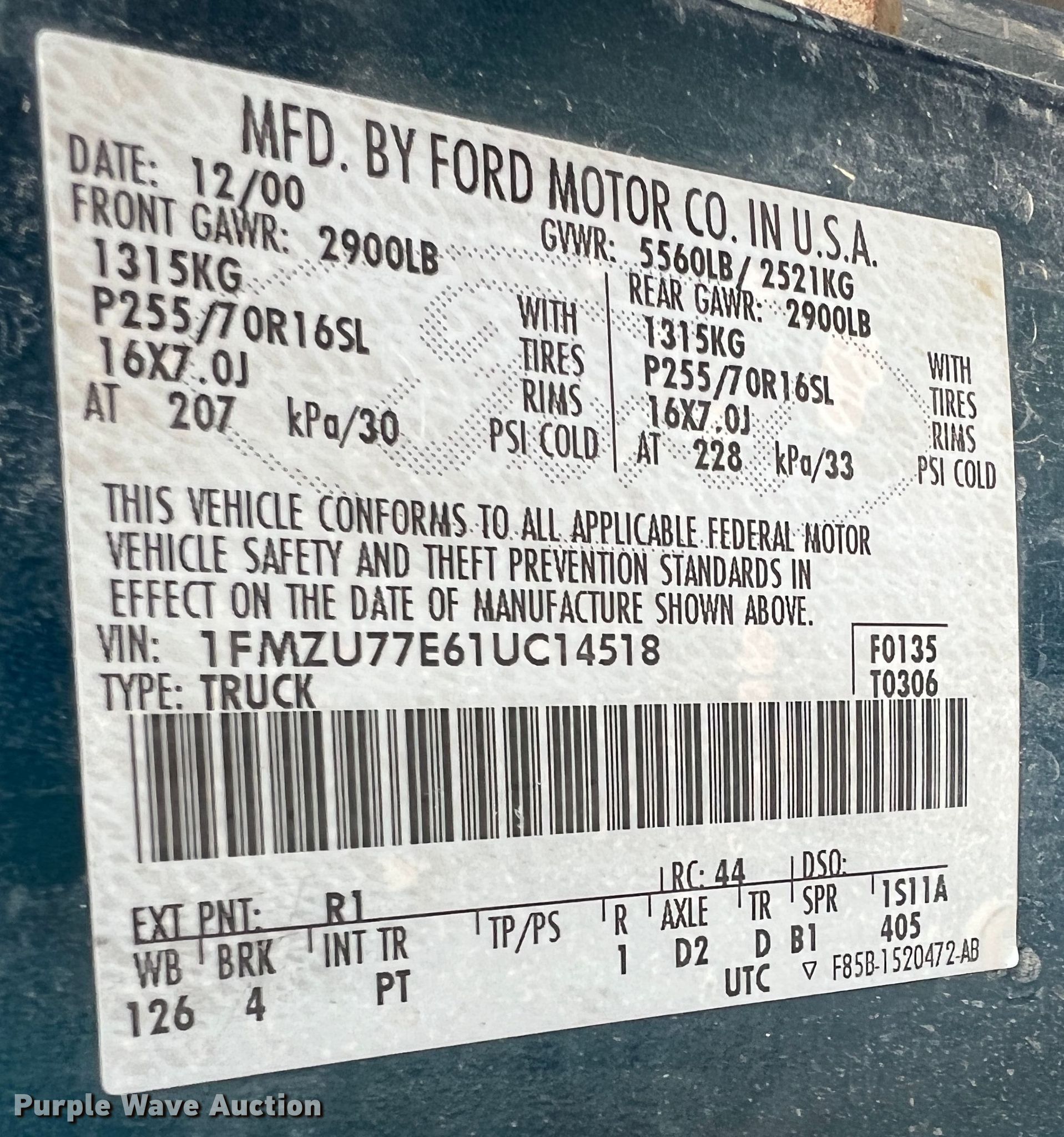 2001 Ford Explorer Sport Trac Crew Cab pickup truck