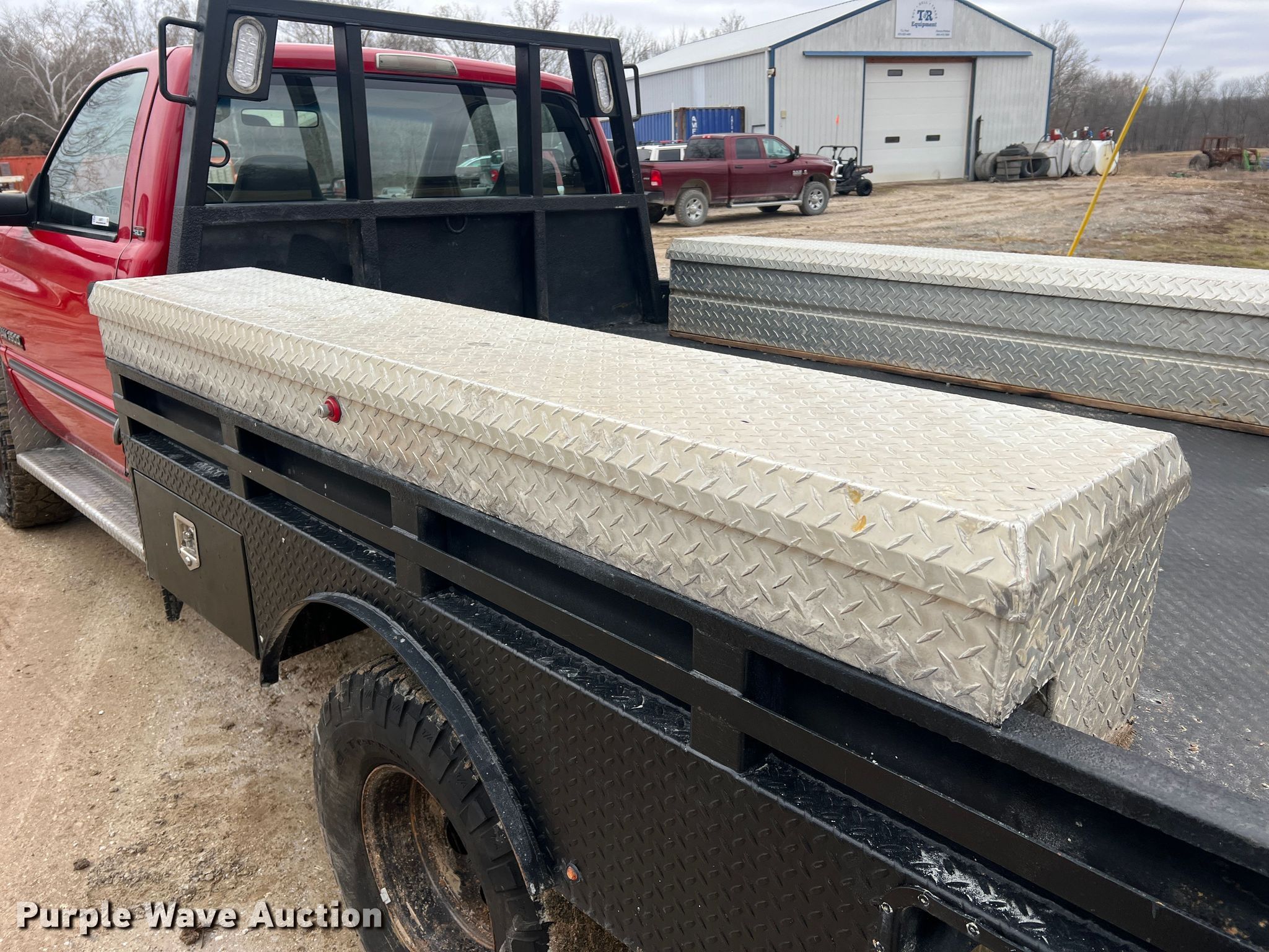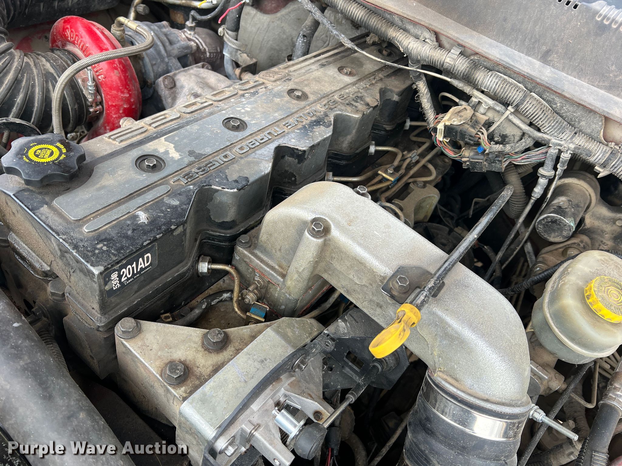 2001 Dodge Ram 3500 SLT Laramie flatbed pickup truck. Miles: 149,976 on odometer, VIN: 3B6MF36651M259504. Engine Displacement: 5.9L L6 OHV, Cylinders: 6, Fuel type: Diesel. Transmission Manual, Speed: 5, Four wheel drive. Interior AC, Heat, Power windows, Power locks, Cruise control. Features Flatbed 9' 4" L x 92" W, Hitch: Gooseneck. Tires Size: LT265/75R16. Notes Dash warning indicator: Check engine, ABS, Brake, Exhaust system modified, parts missing. Missouri title. United Security Bank. 5172 County Road 456. Tebbetts, MO 65080