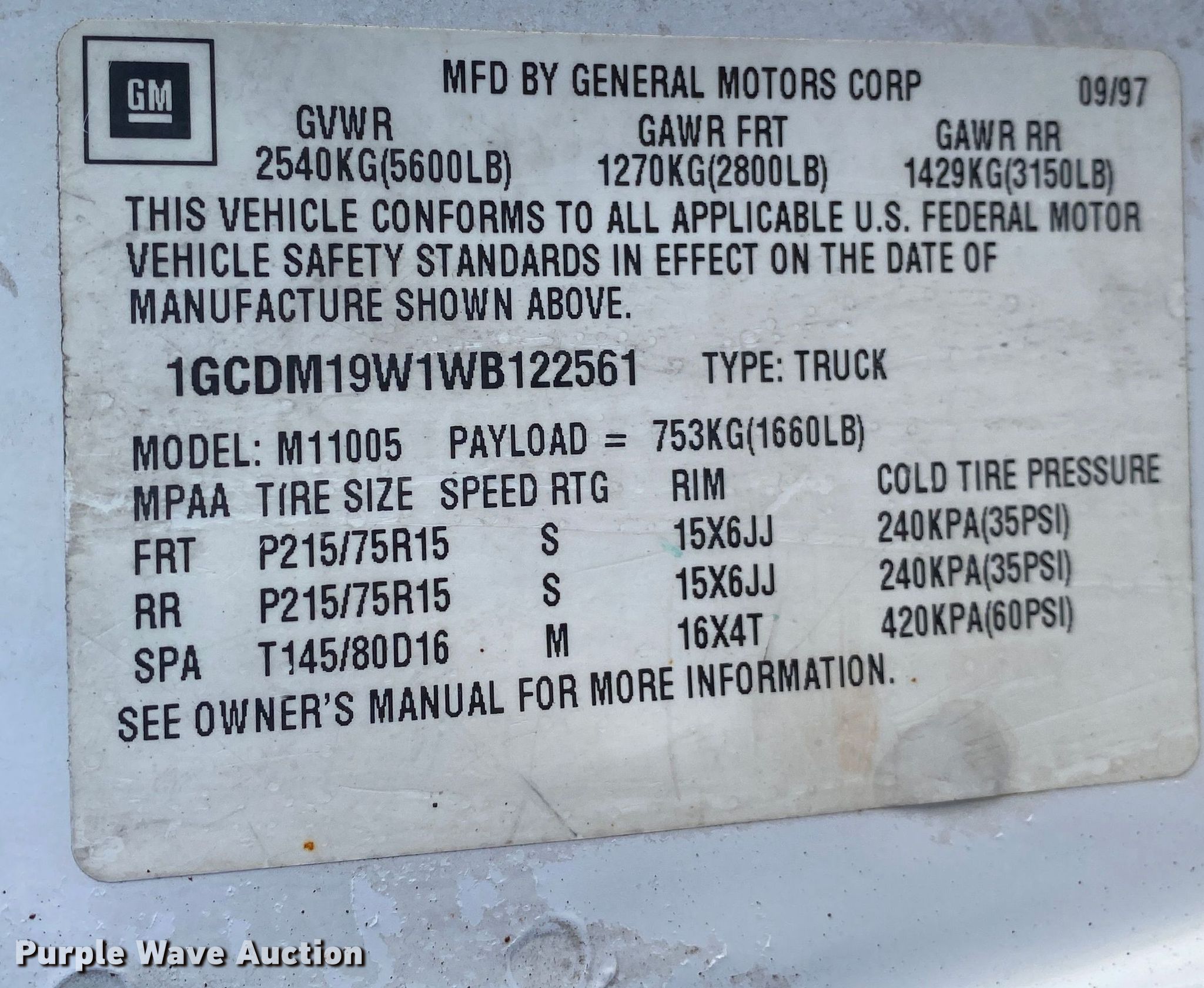 Purple Wave is selling a used 1/2 Ton Pickup or Van in Oklahoma. This item is a 1998 Chevrolet Astro van with the following: Miles: 120,267 on odometer, VIN: 1GCDM19W1WB122561