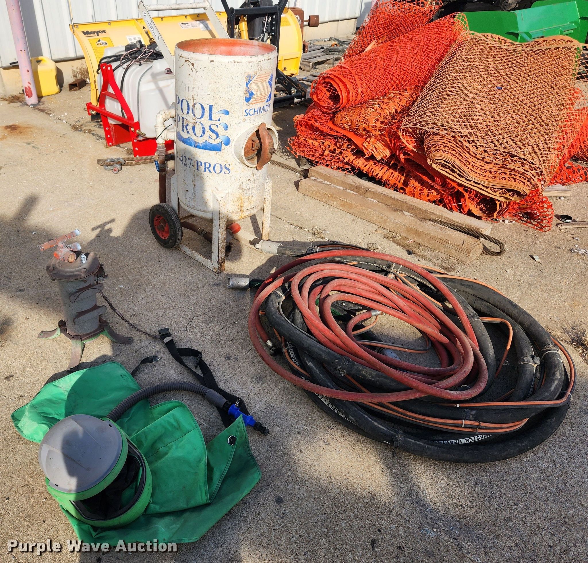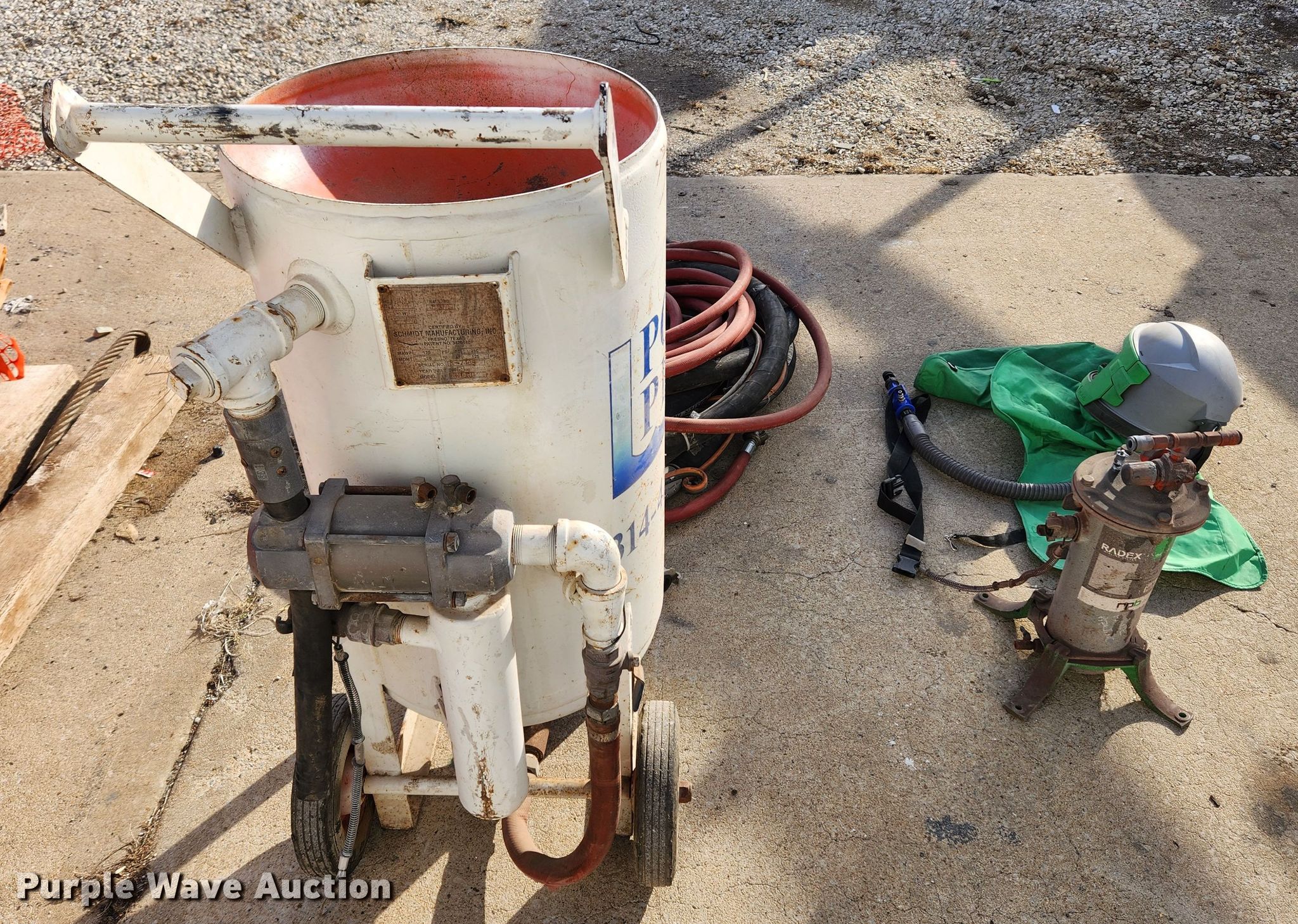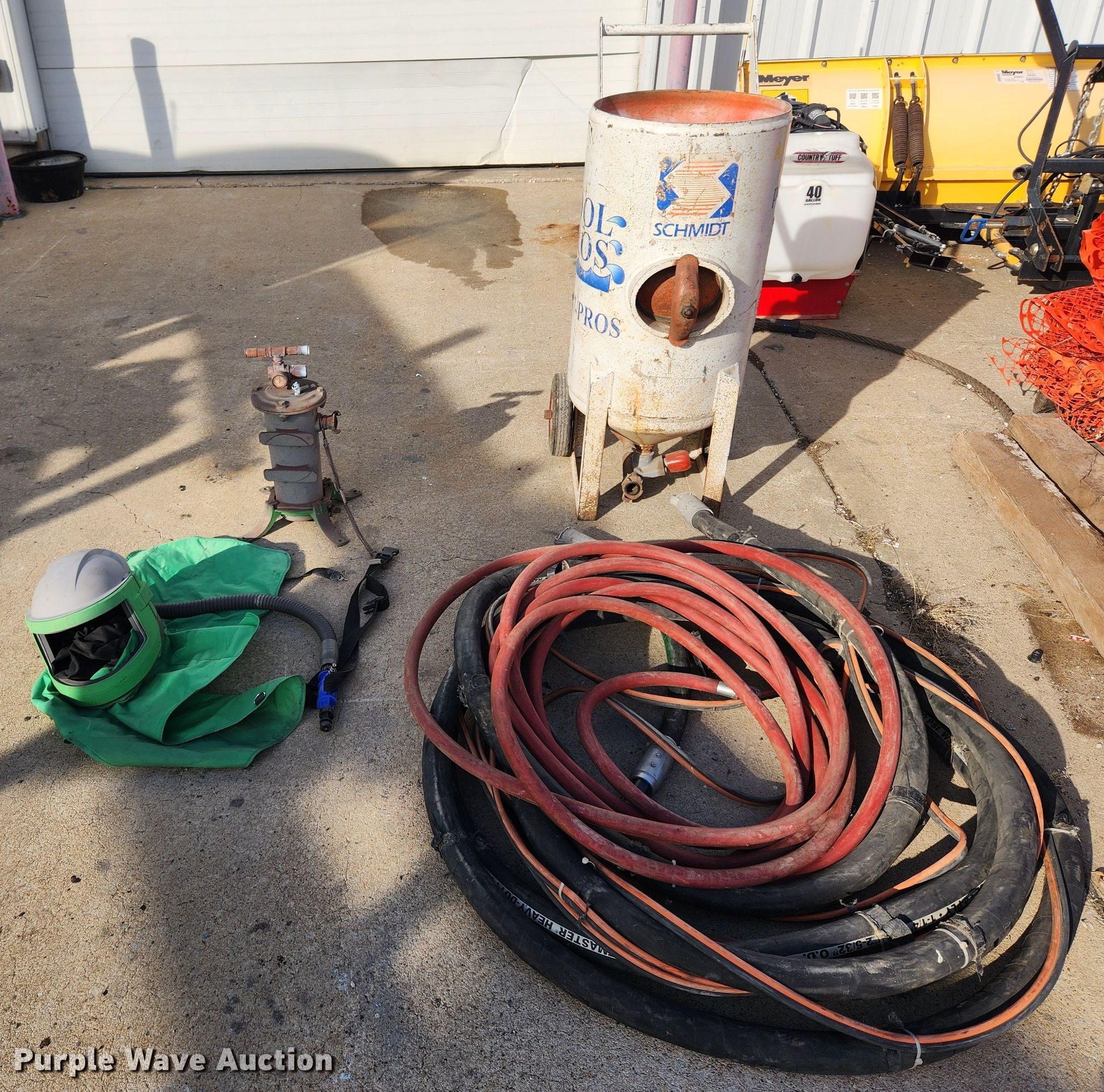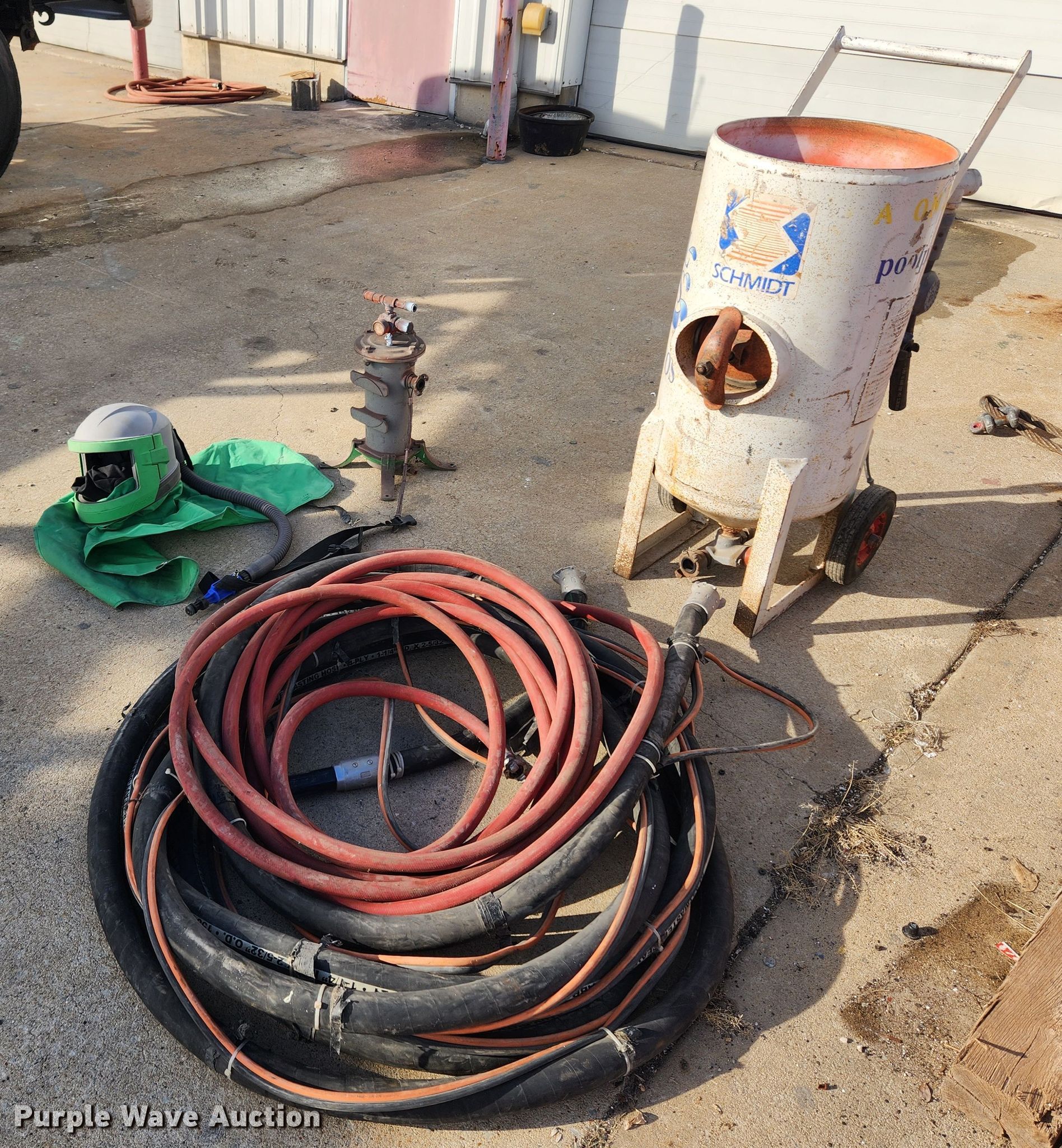 Purple Wave is selling a used Tools in Missouri. This item is a 2002 Schmidt sand blaster with the following: Media capacity: 3.5 cu. ft., Filter, Hoses, Helmet, Serial: L-7469