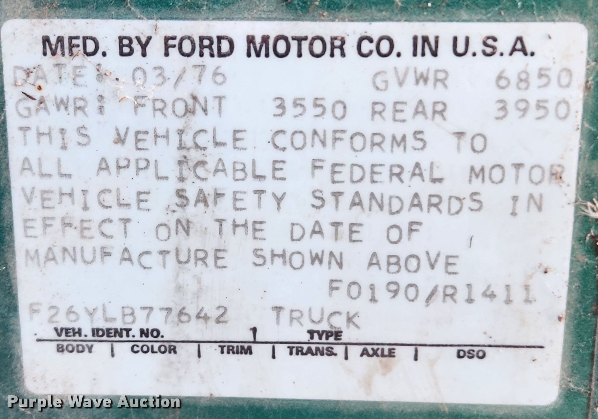 Purple Wave is selling a used 3/4 or 1 Ton Pickup or Van in Missouri. This item is a 1976 Ford F250 pickup truck with the following: Miles: 72,381 on odometer, VIN: F26YLB77642