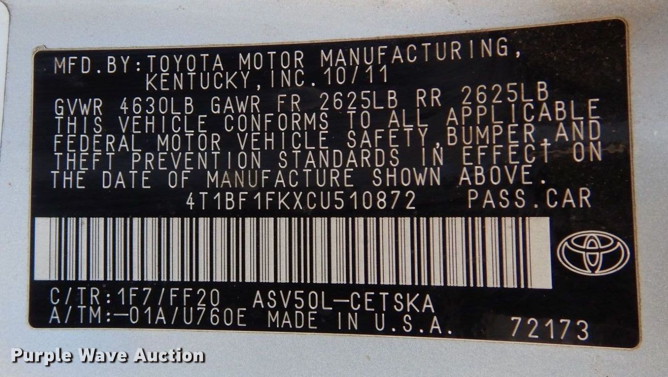 - VIN: 4T1BF1FKXCU510872