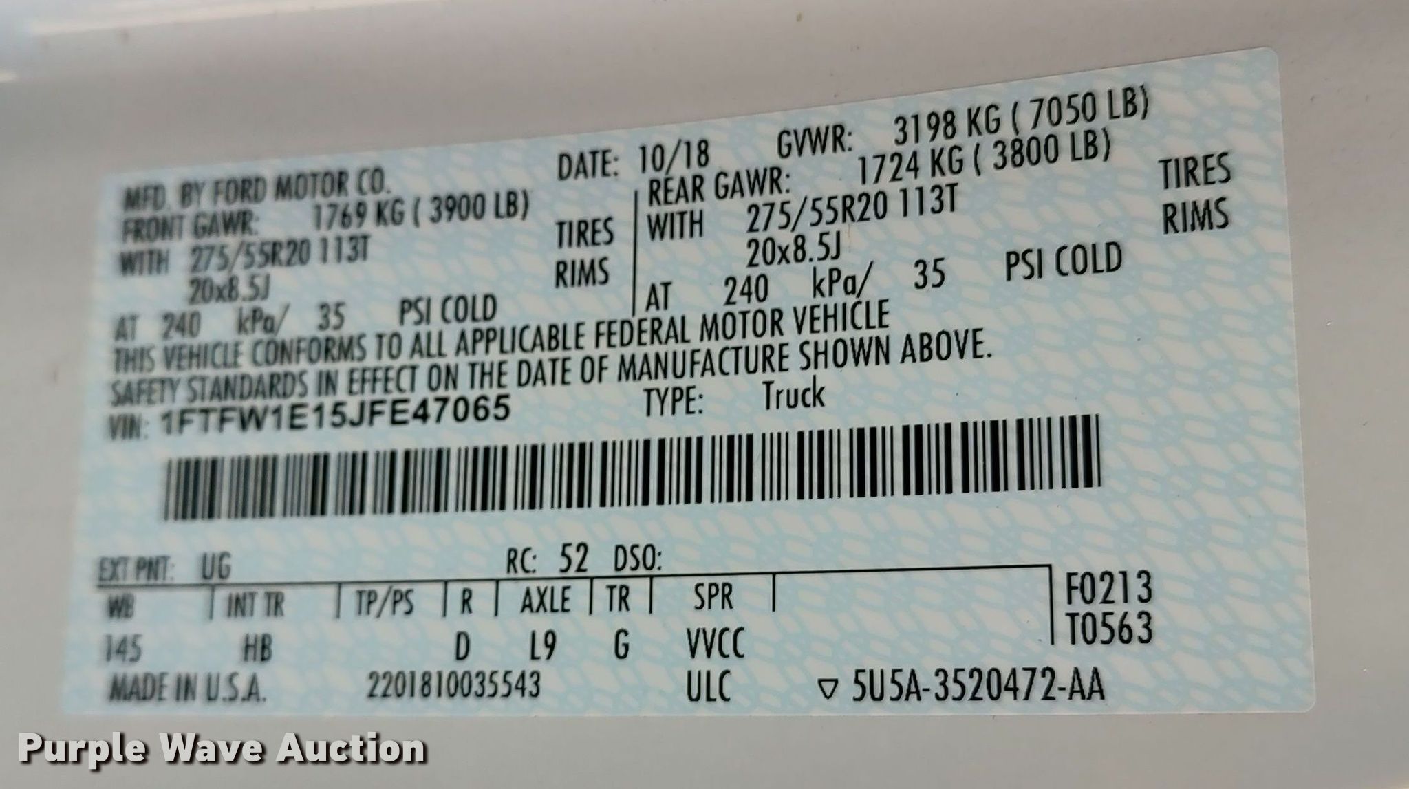 Purple Wave is selling a used 1/2 Ton Pickup or Van in Oklahoma. This item is a 2018 Ford F150 Lariat SuperCrew pickup truck with the following: Miles: 144,873 on odometer, VIN: 1FTFW1E15JFE47065
