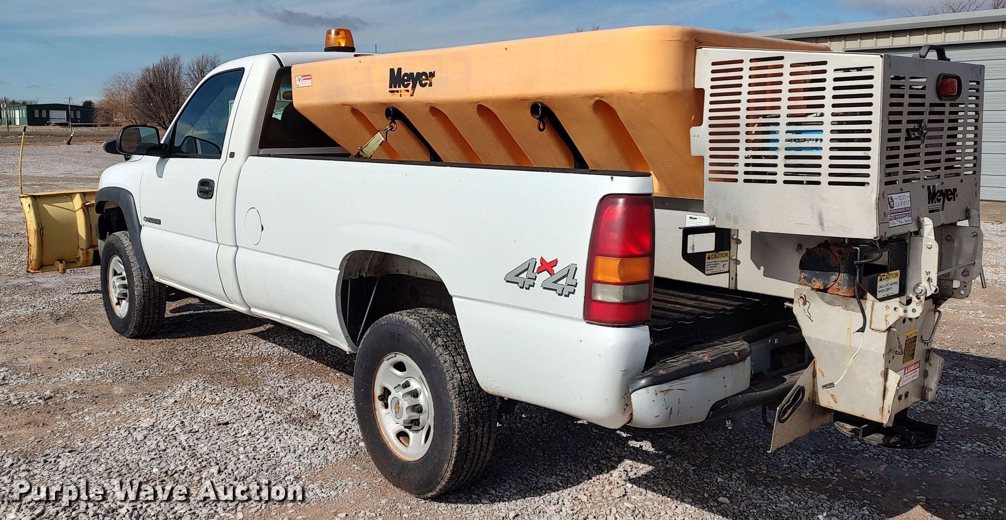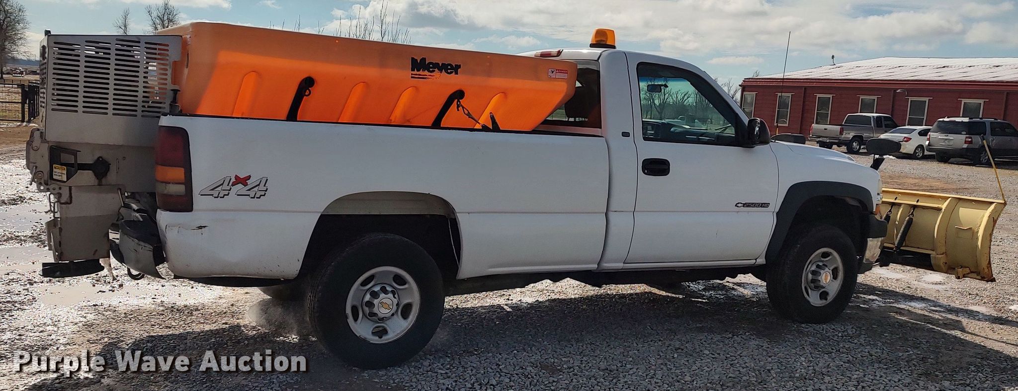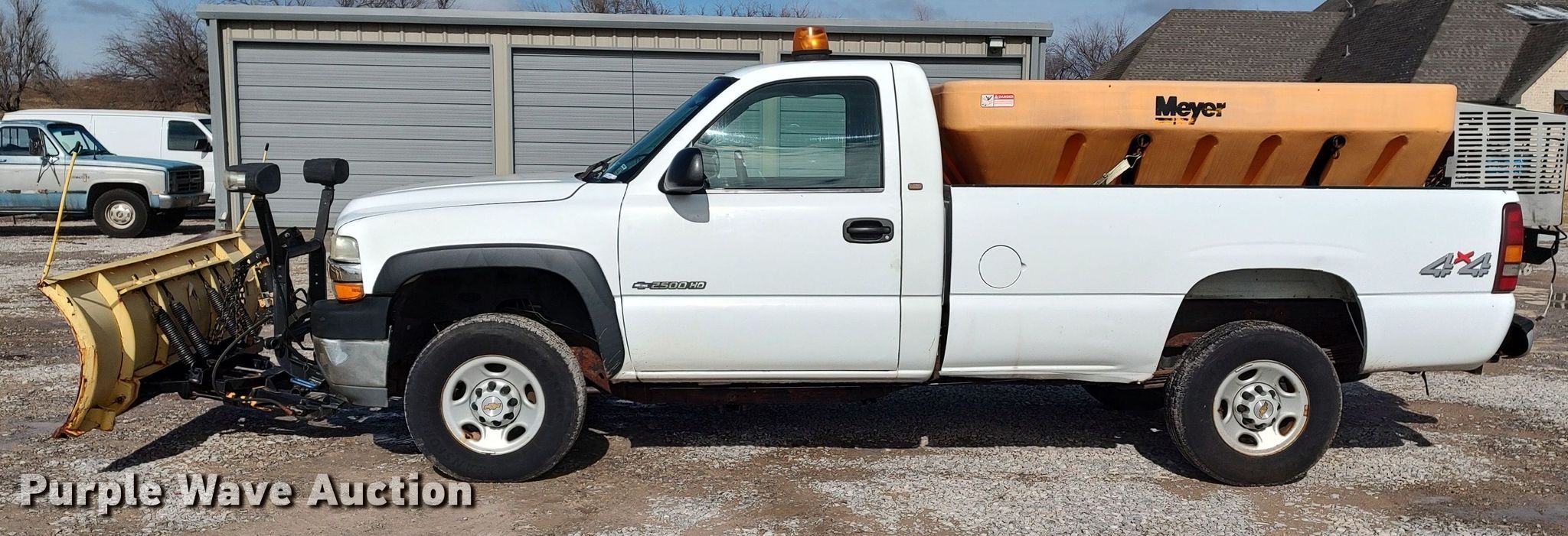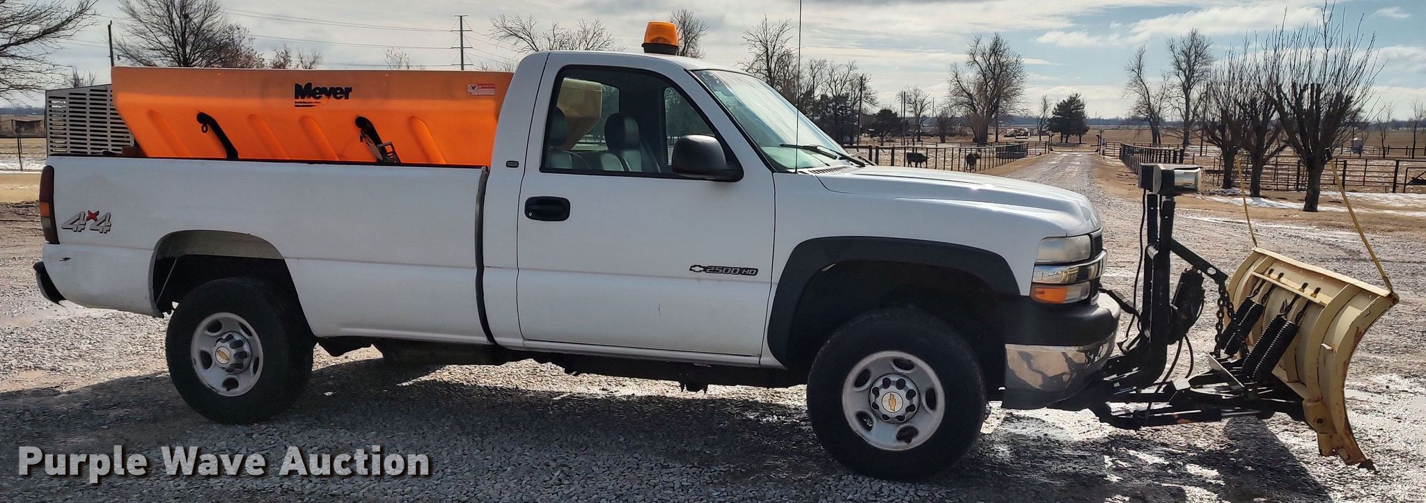 2001 Chevrolet Silverado 2500HD pickup truck. Miles: 25,886 on odometer, VIN: 1GCHK24UX1E226296. Engine Displacement: 6.0L V8 OHV, Cylinders: 8, Fuel type: Gas. Transmission Automatic, Four wheel drive. Interior AC, Heat. Features Snow plow Width: 90", Meyer spreader Briggs & Stratton single cylinder gas engine. Tires Size: 245/75R16. Notes Dash warning indicator: Check engine, ABS, Brake, Unknown operating condition of plow and spreader. New York title. Title distribution may be delayed up to 30 days from verification of funds. L&R Auto Brokers, LLC. 14555 W Frisco Dr. Yukon, OK 73099