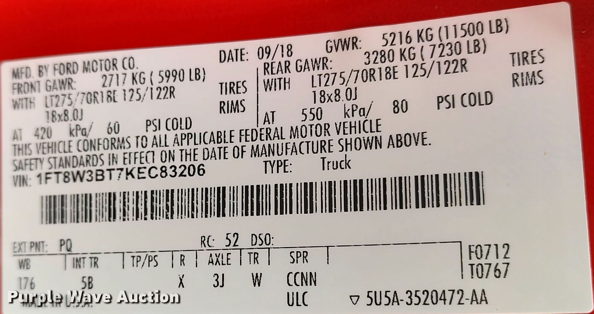 Purple Wave is selling a used 3/4 or 1 Ton Pickup or Van in Oklahoma. This item is a 2019 Ford F350 Lariat Super Duty Crew Cab pickup truck with the following: Miles: 179,265 on odometer, VIN: 1FT8W3BT7KEC83206