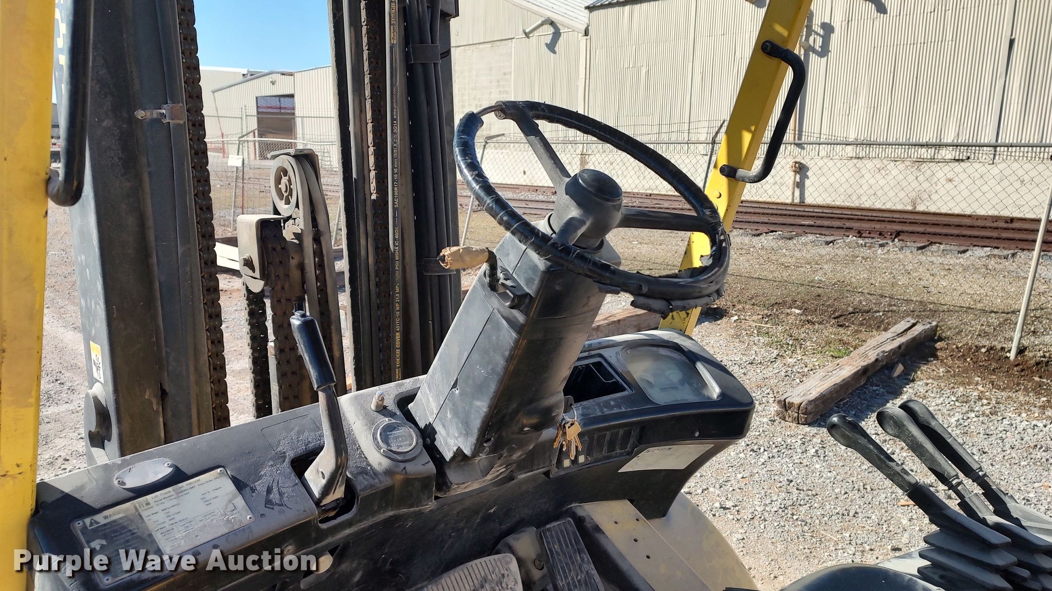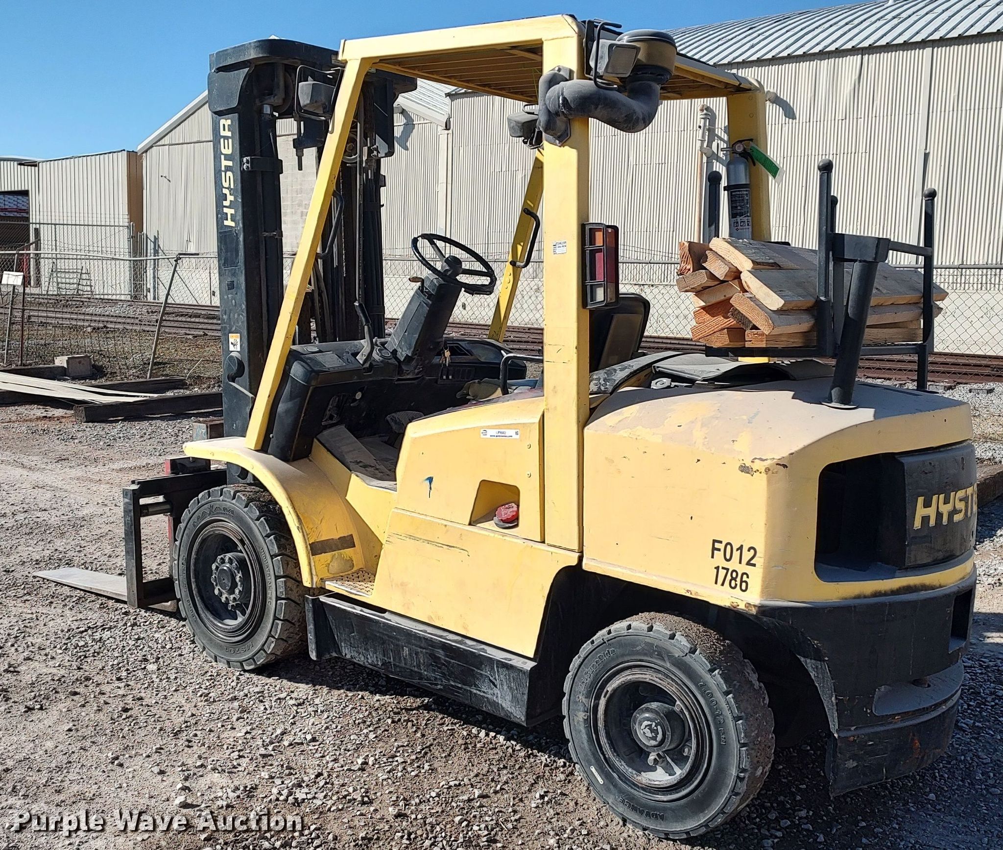 Purple Wave is selling a used Cushion Tire or Pneumatic Forklift in Oklahoma. This item is a Hyster H80XM forklift with the following: Hours: 3,599 on meter, Serial: K005V01786Y