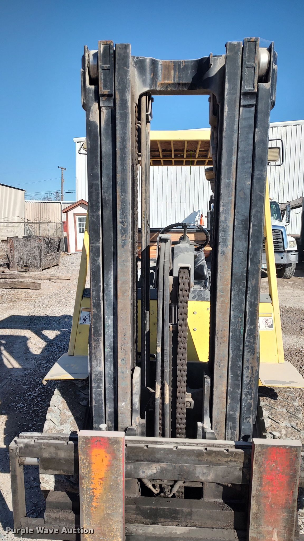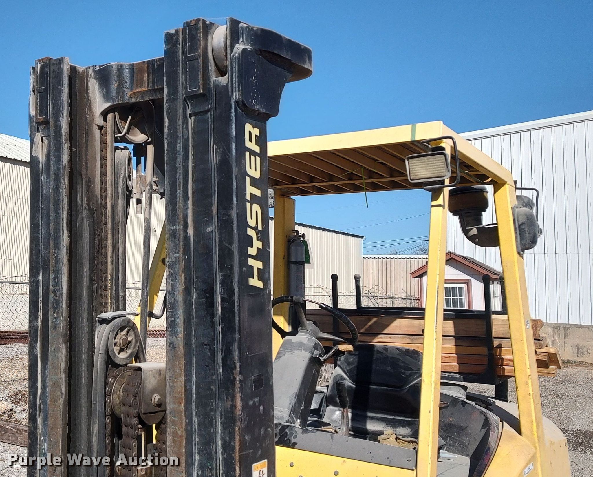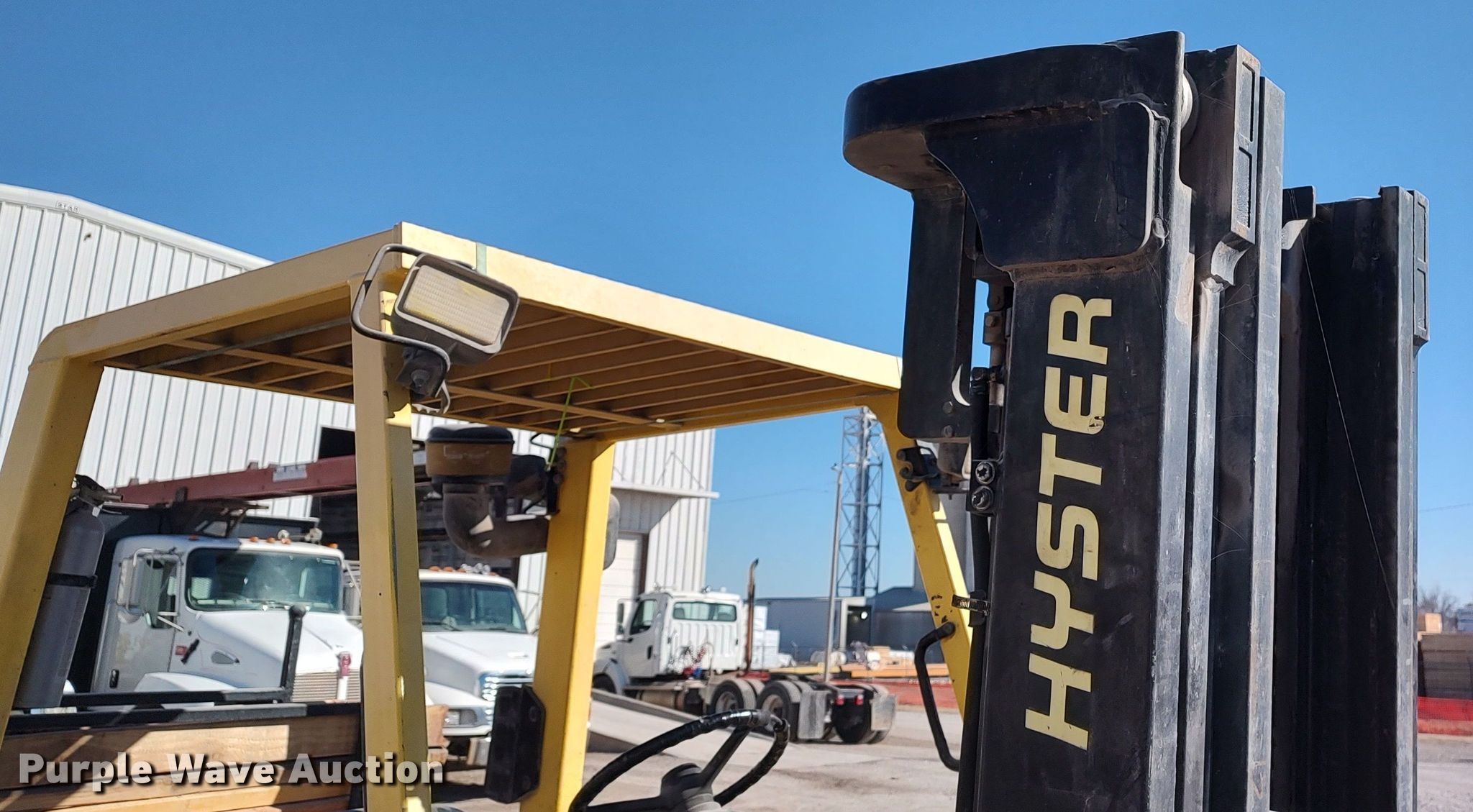 Hyster H80XM forklift. Hours: 3,599 on meter, Serial: K005V01786Y. Engine Perkins, Cylinders: 4, Fuel type: Diesel. Transmission Powershift. Operators station Canopy. Features Maximum lift capacity: 7,500 lbs, Maximum lift height: 194.9", Mast stages: 3, Side shift, Mast tilt, Fork length: 45". Tires Front: 250-15, Rear: 7.00-12, Solid. Notes Non-operational original hour meter, second hour meter has been installed Hour meter replaced at 12,520 hours. Mill Creek Lumber & Supply. 2520 South May Avenue. Oklahoma City, OK 73108